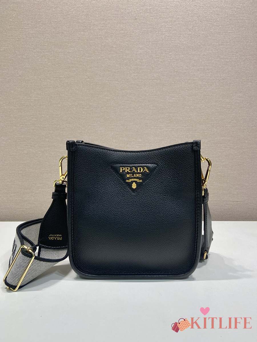 Kitlife Prada Mini Black Leather Shoulder Bag 1BH191 19x20x6cm
