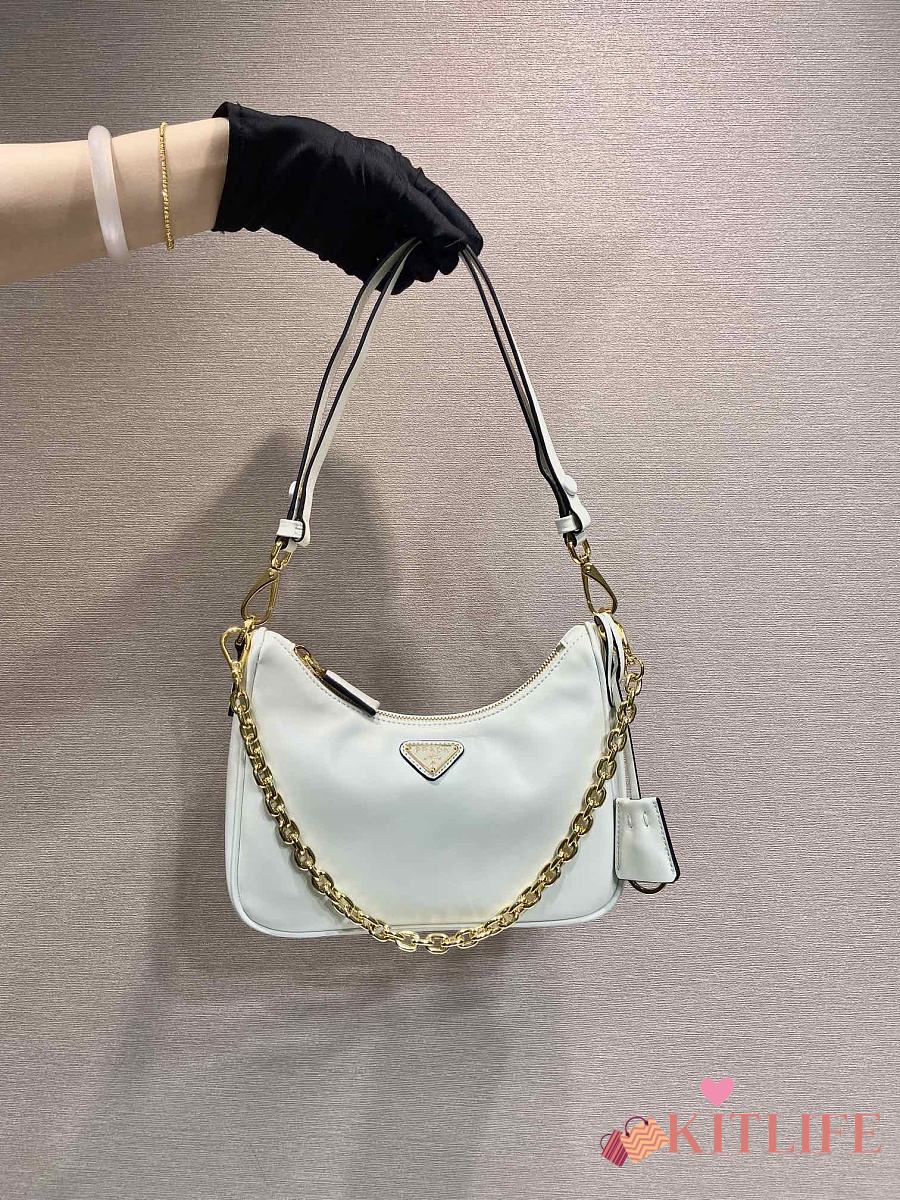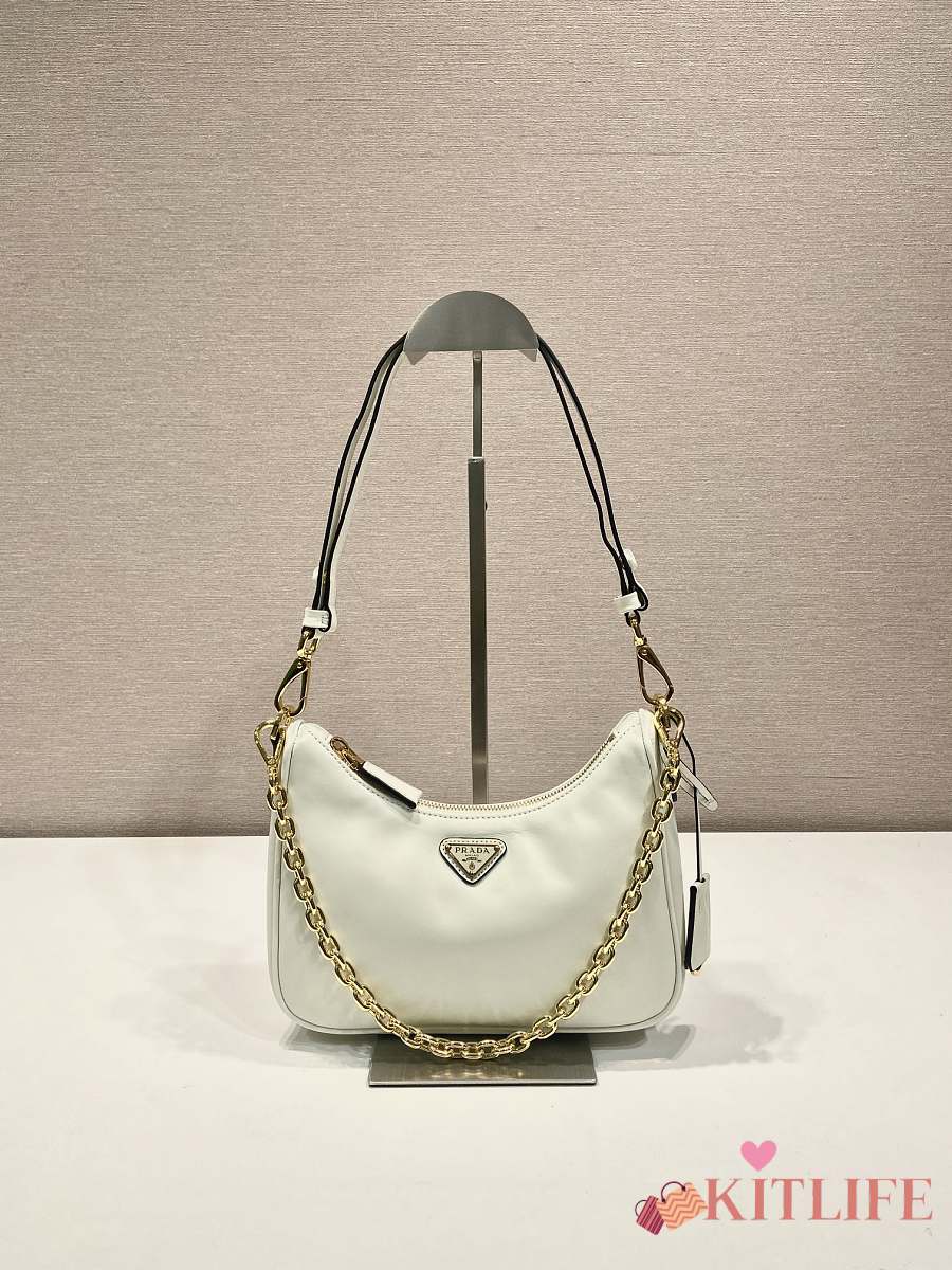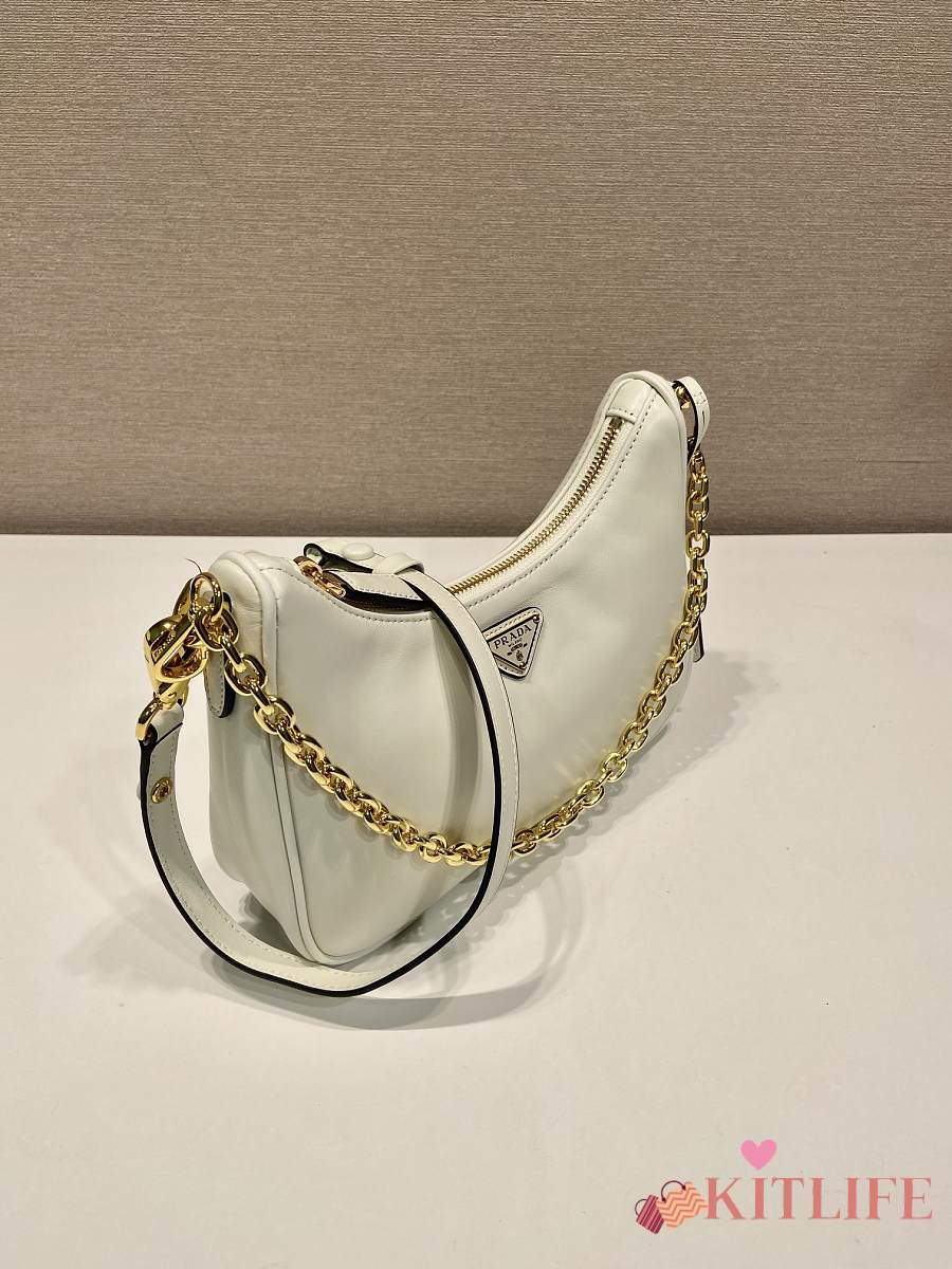 Kitlife Prada Re-Edition White Leather Mini Bag 1BC204 18x22x6cm