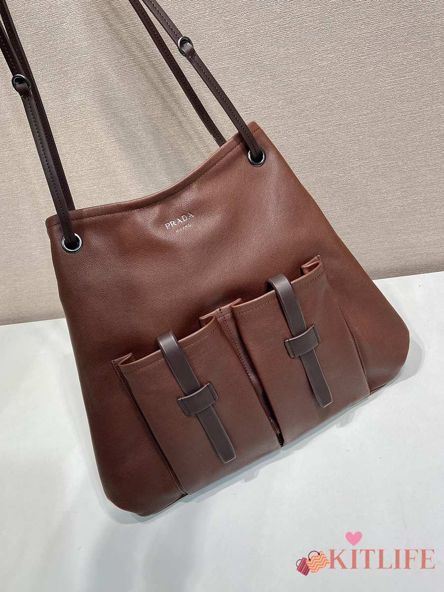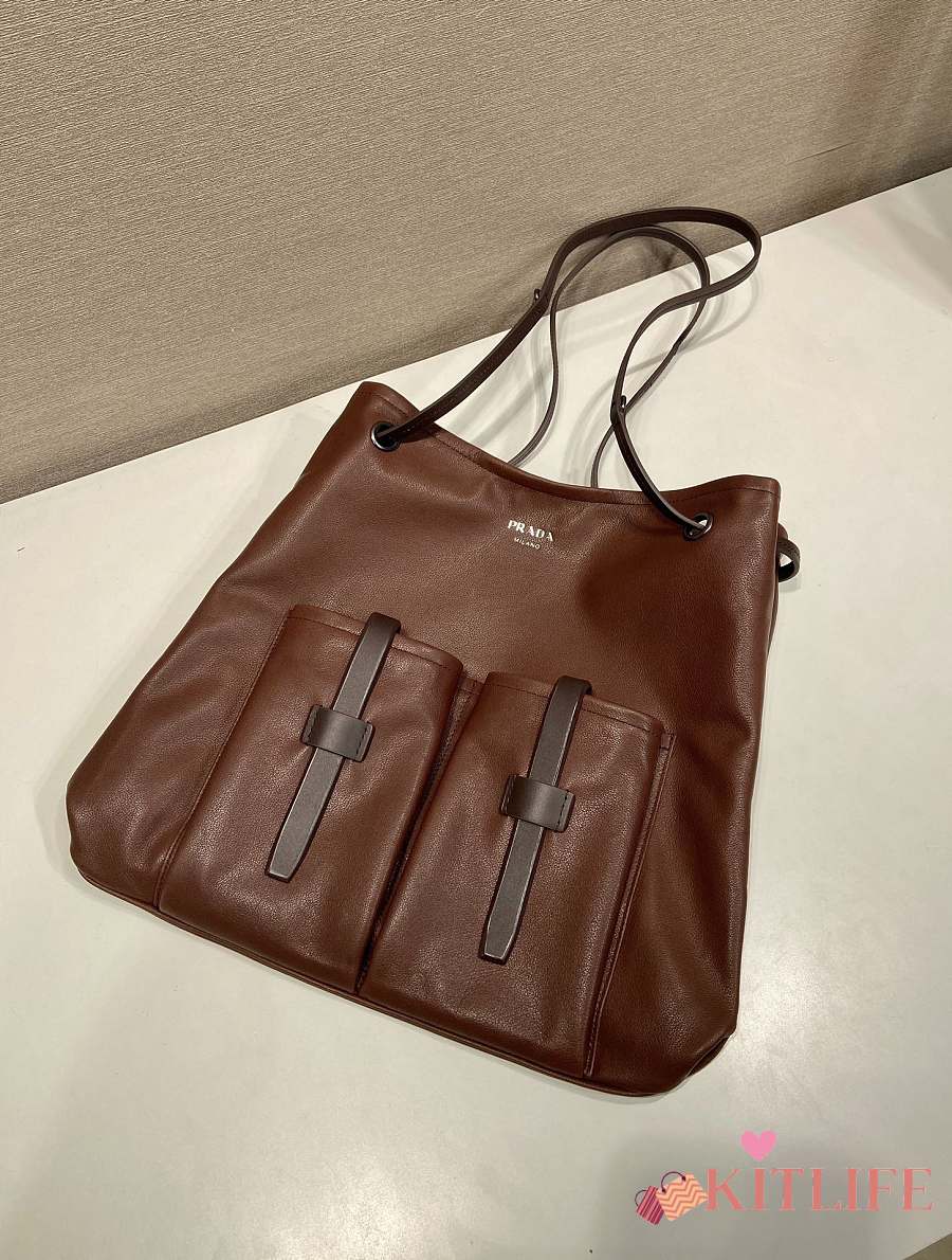 Kitlife Prada Route Large Leather Bag Cocoa Brown 1BC293 39x33cm