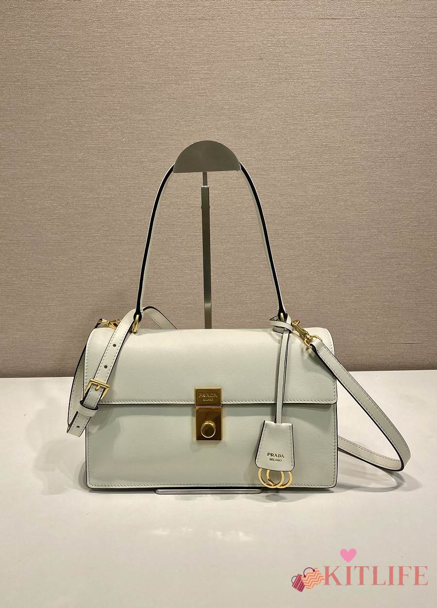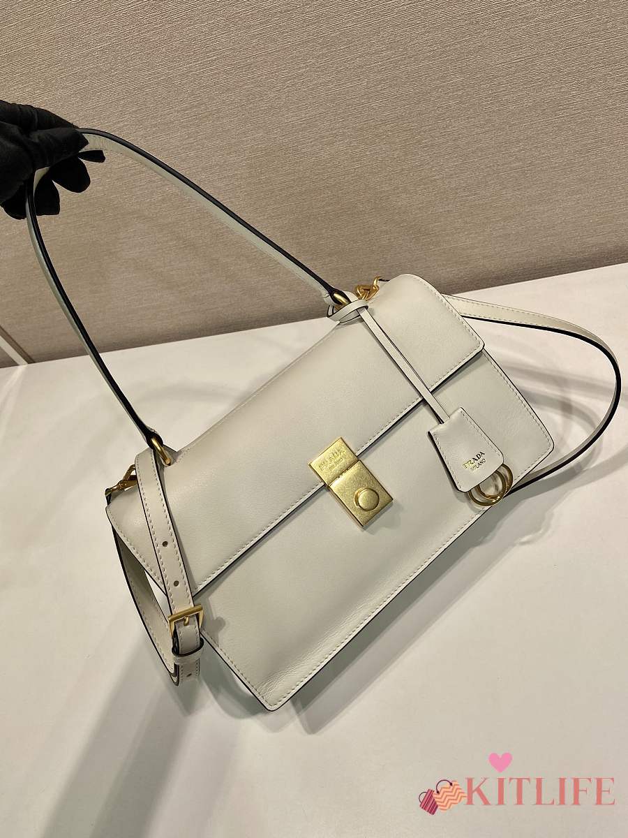 Kitlife Prada Soft Sound Medium White Leather Shoulder Bag 1BN023 28x16x10cm