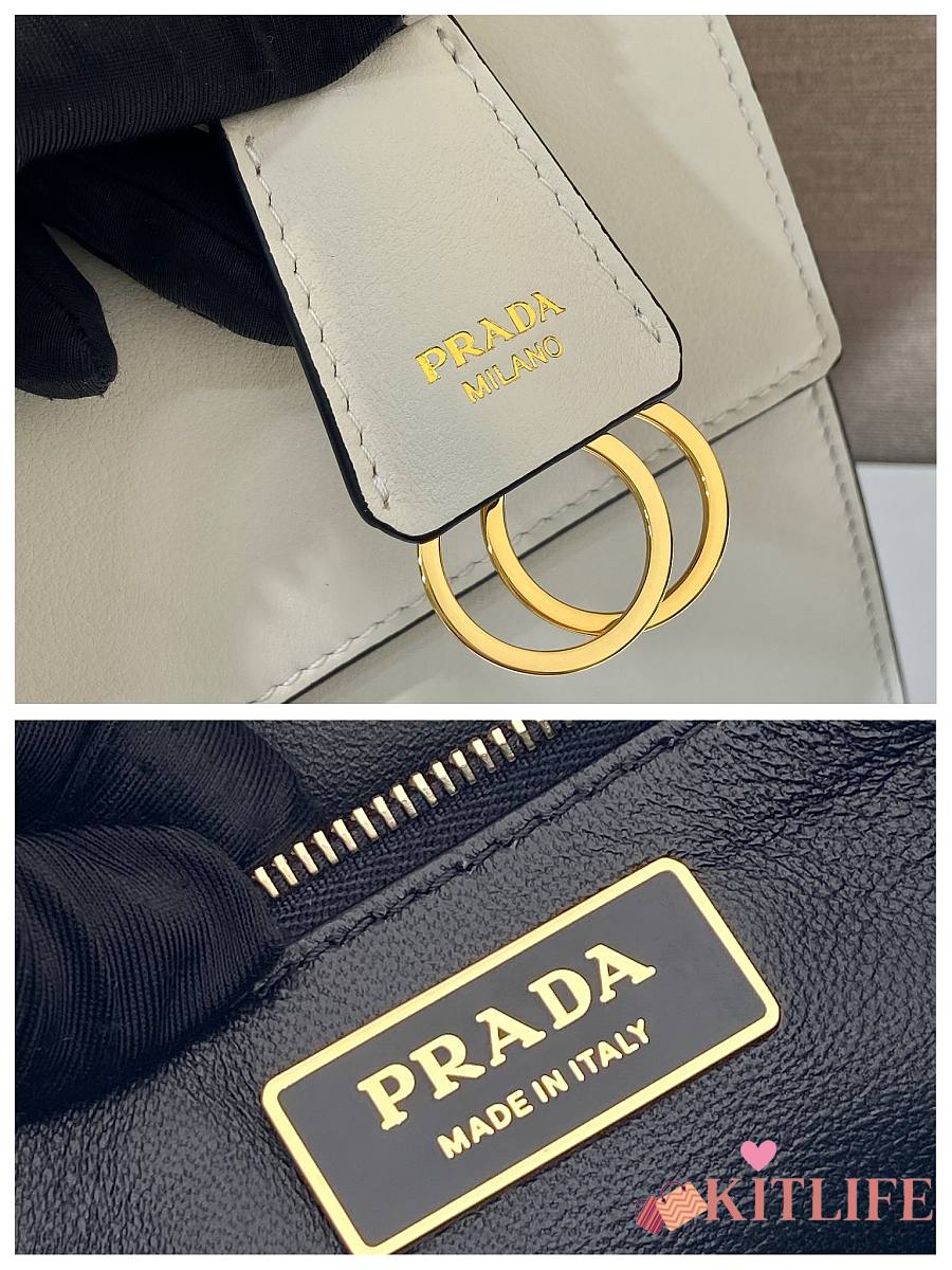 Kitlife Prada Triangle leather shoulder bag white - 1BH190 - 26x14x12 cm