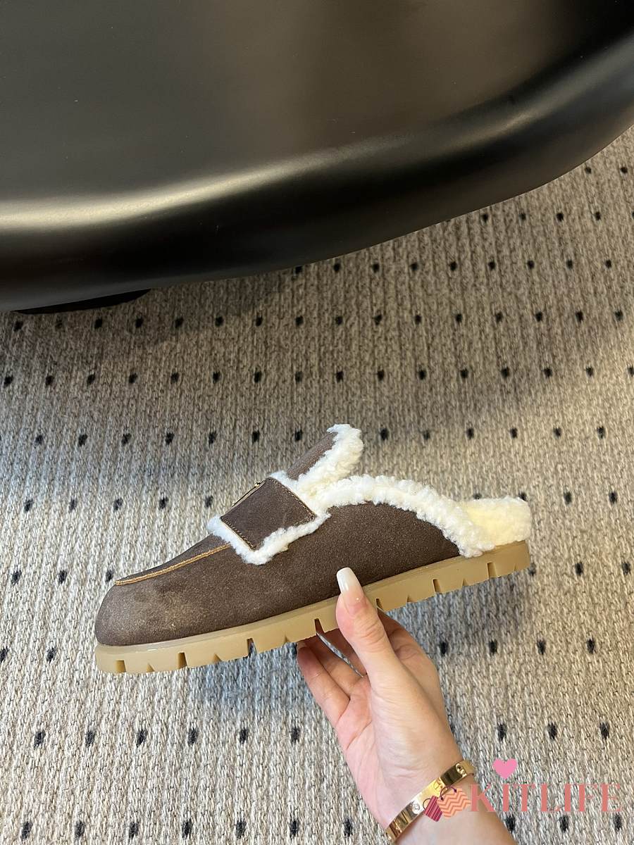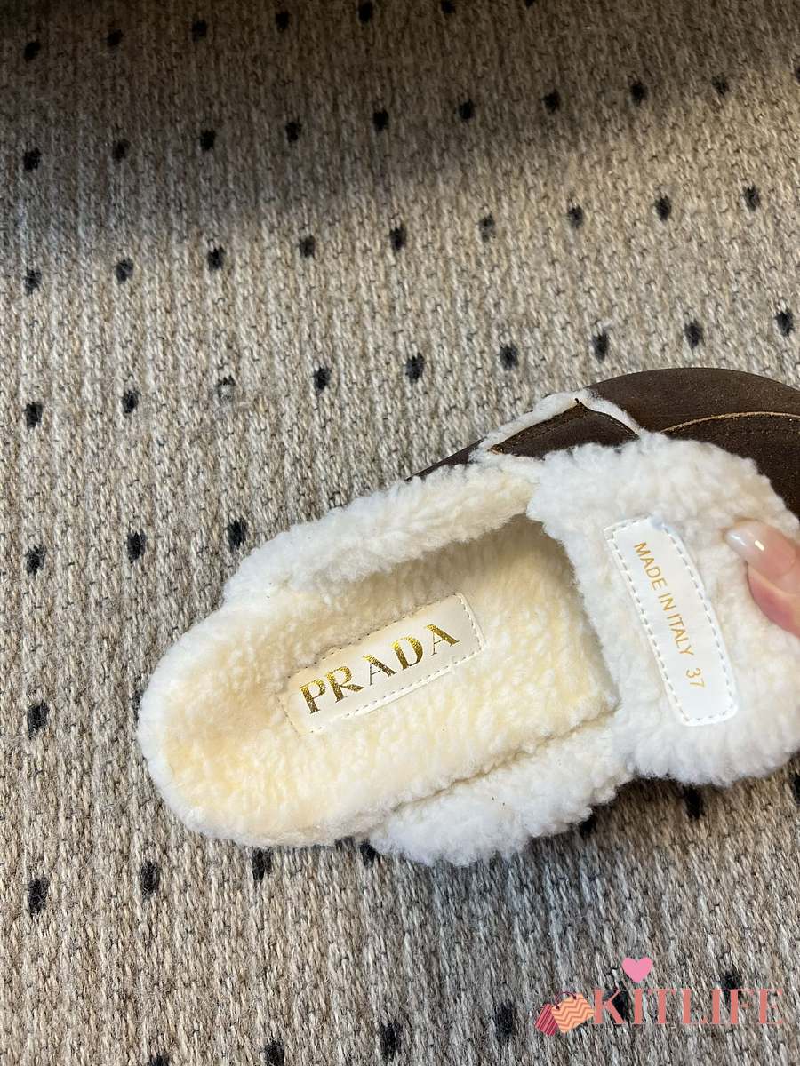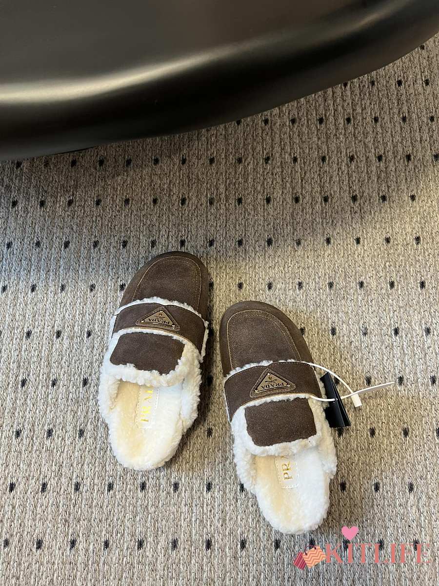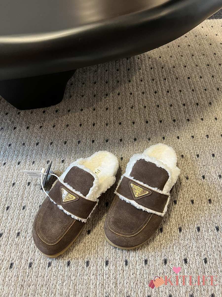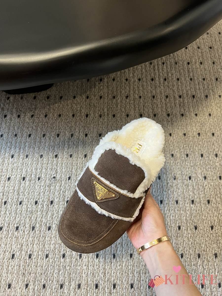 Kitlife Prada Suede and Shearling Slippers Dark Brown