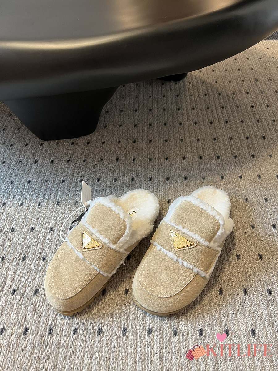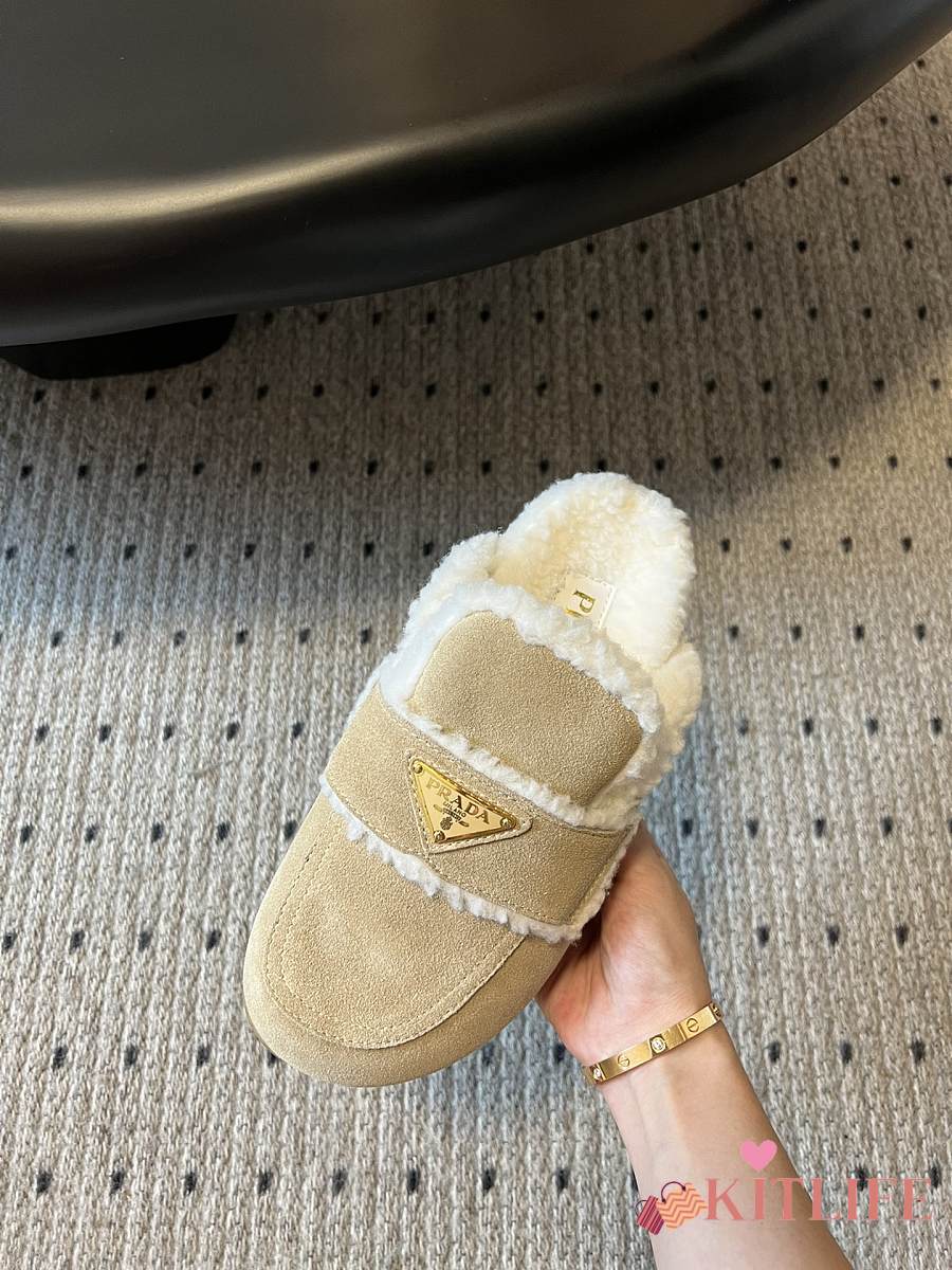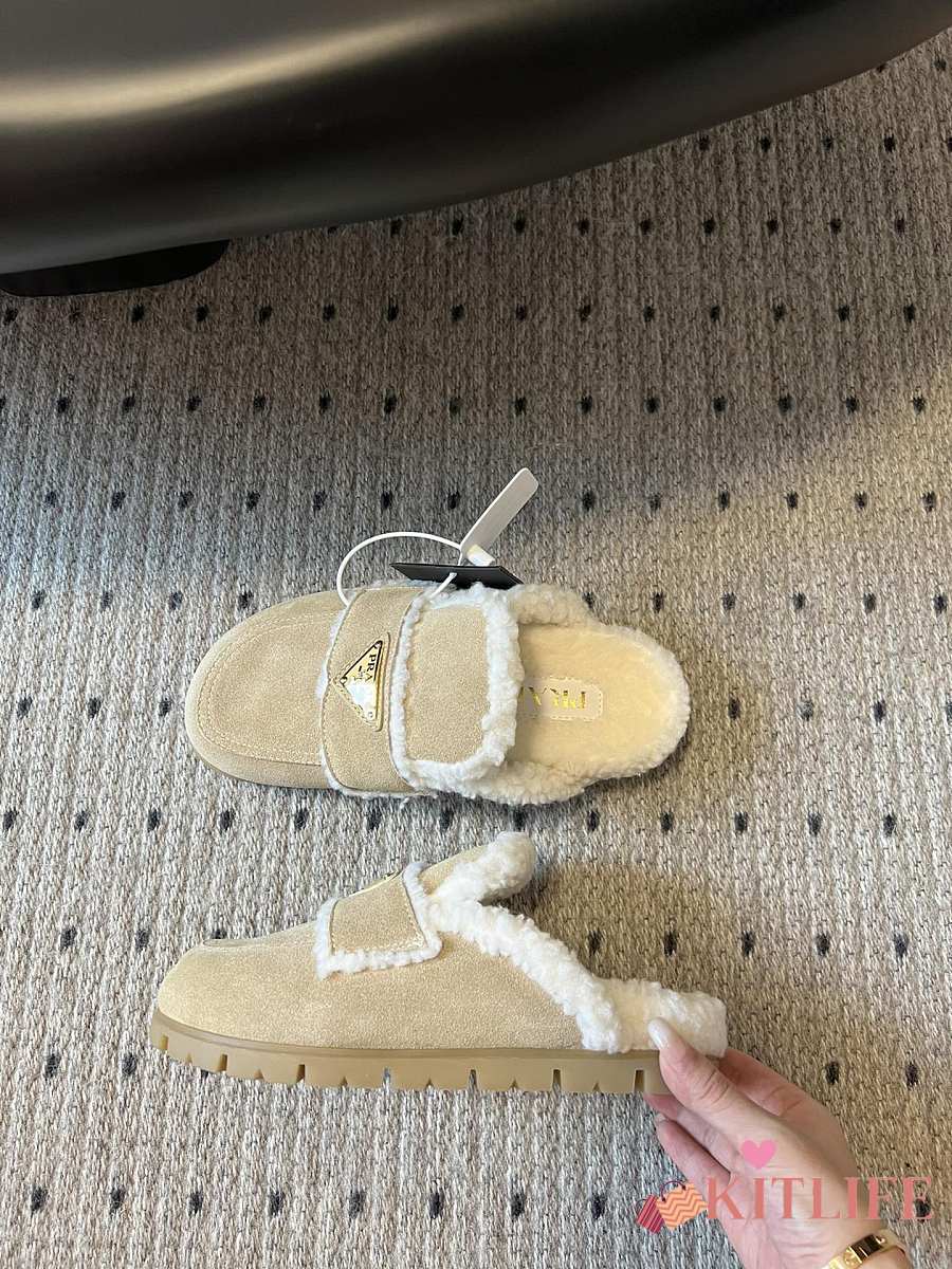 Kitlife Prada Suede and Shearling Slippers Light Beige