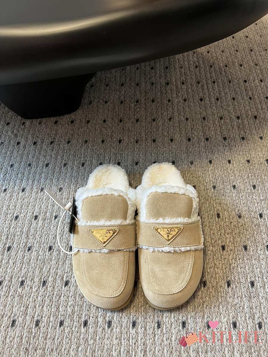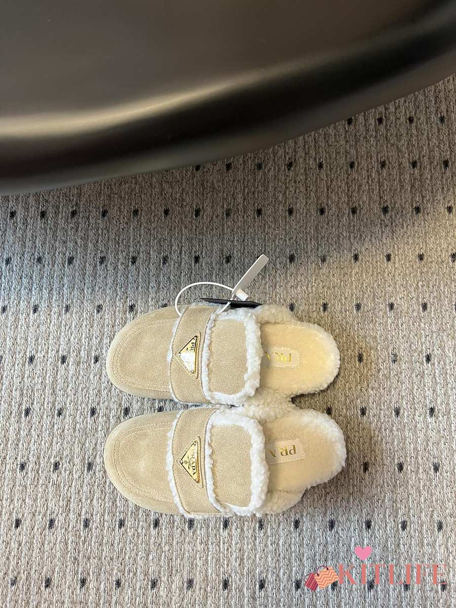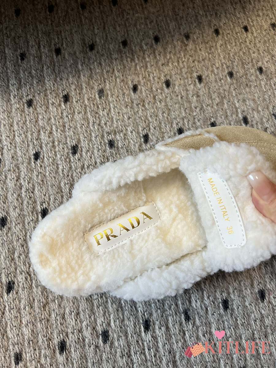 Kitlife Prada Suede and Shearling Slippers Light Beige