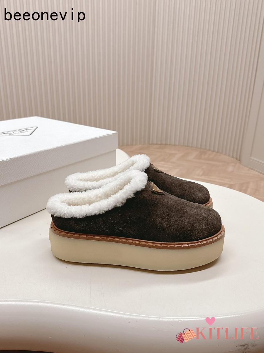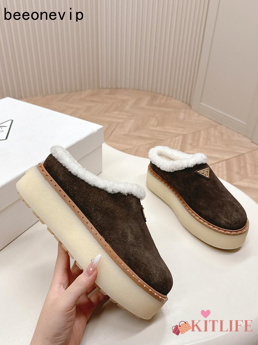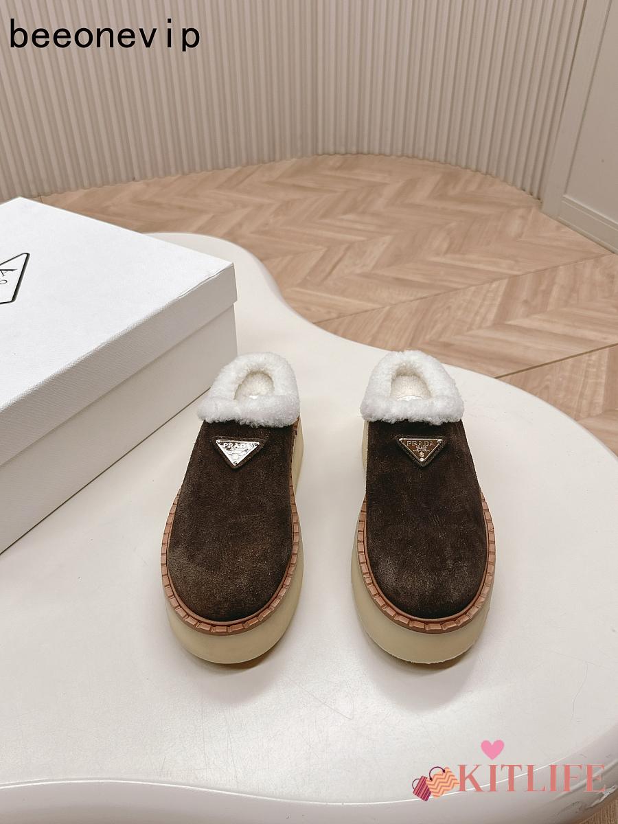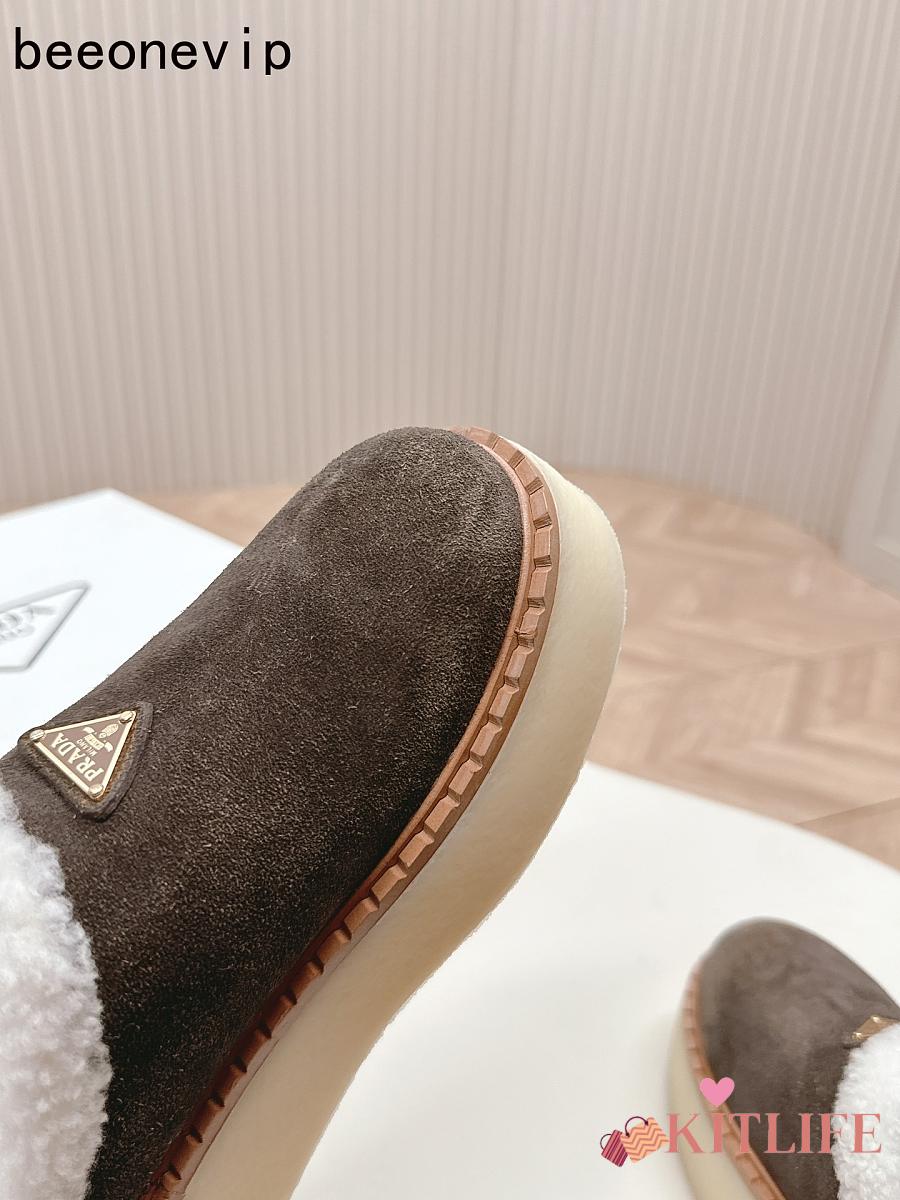 Kitlife Prada Suede Shearling Loafers Dark Brown