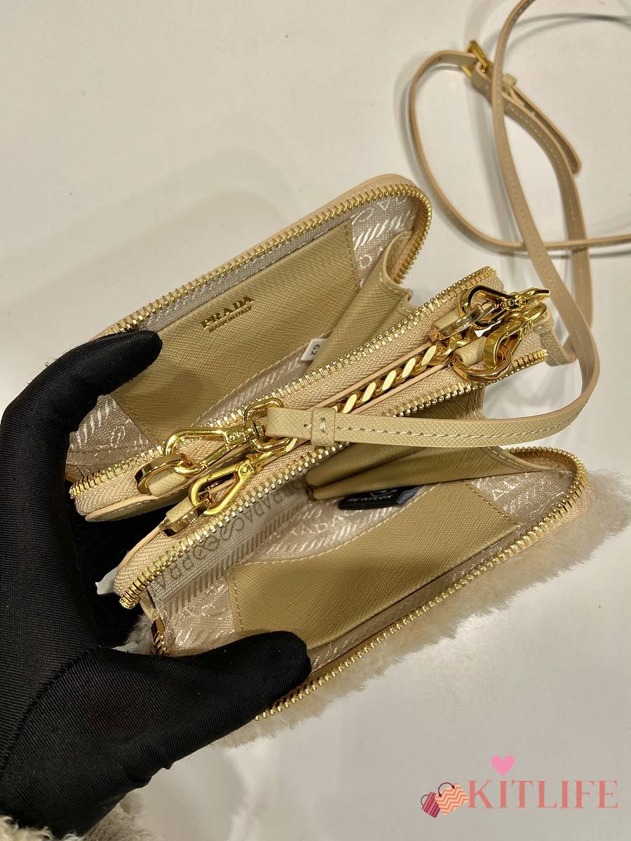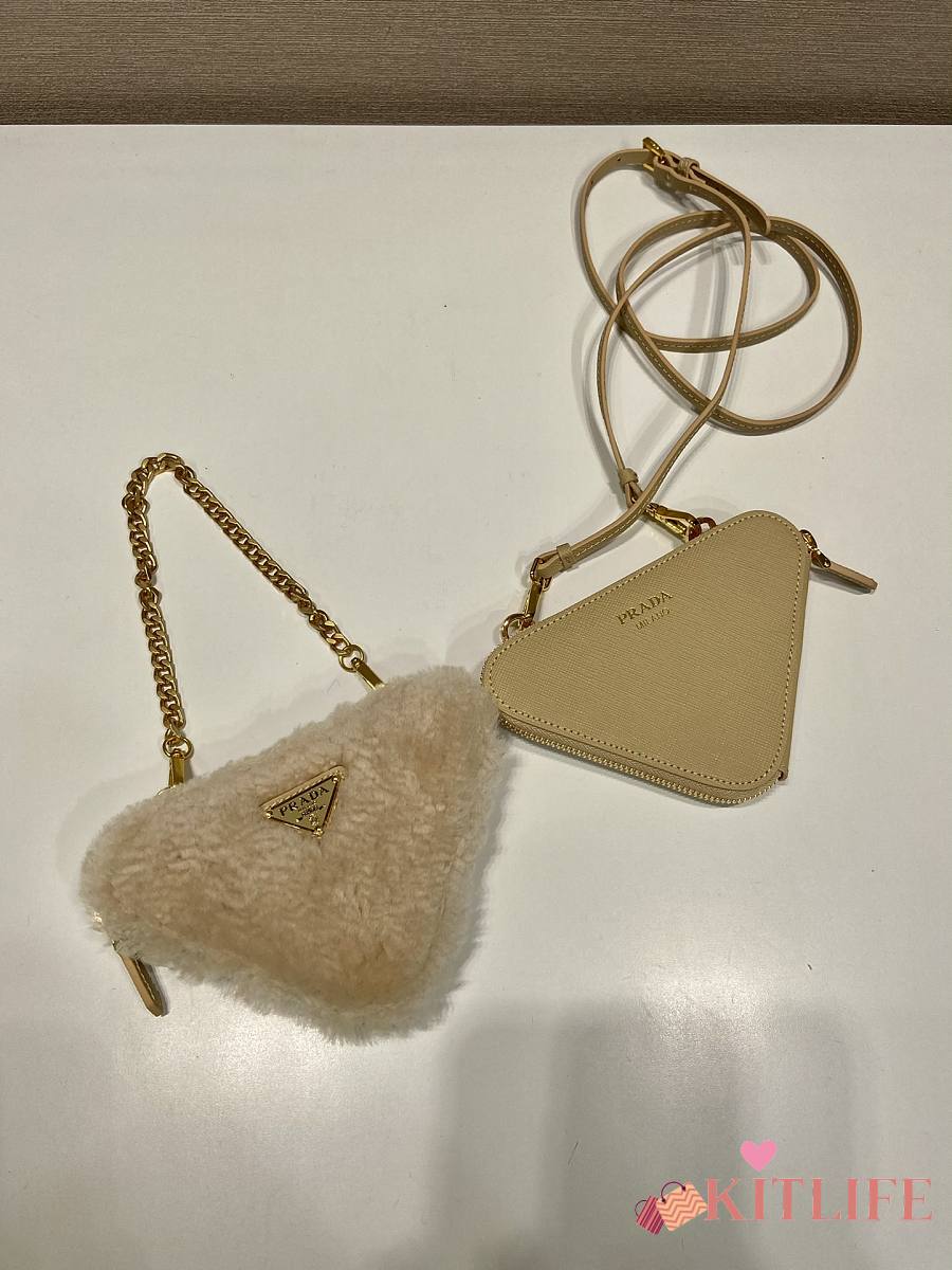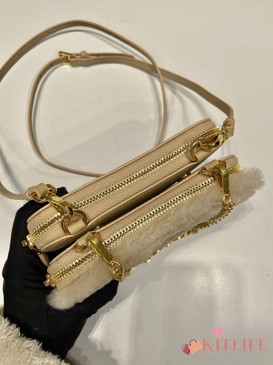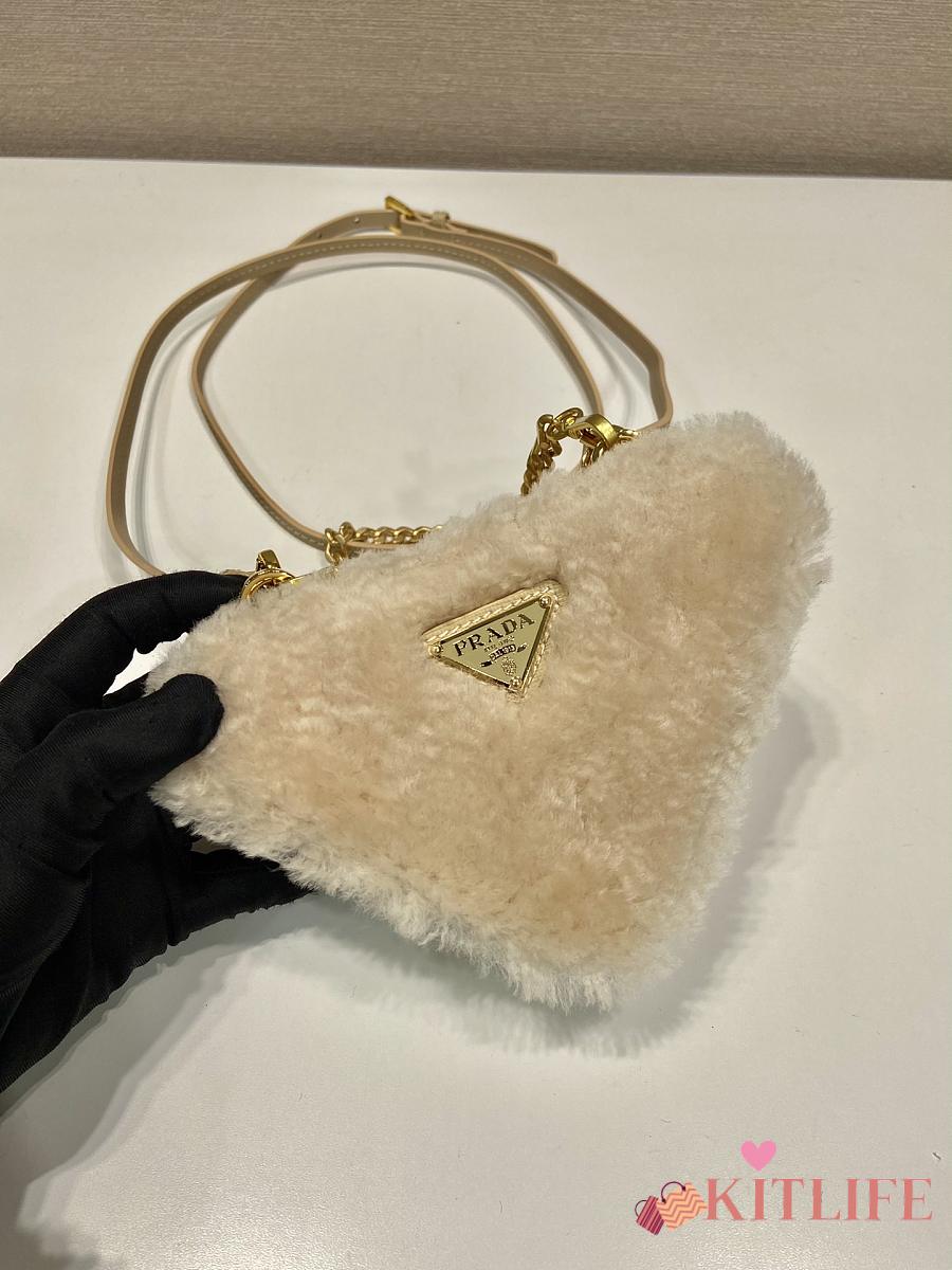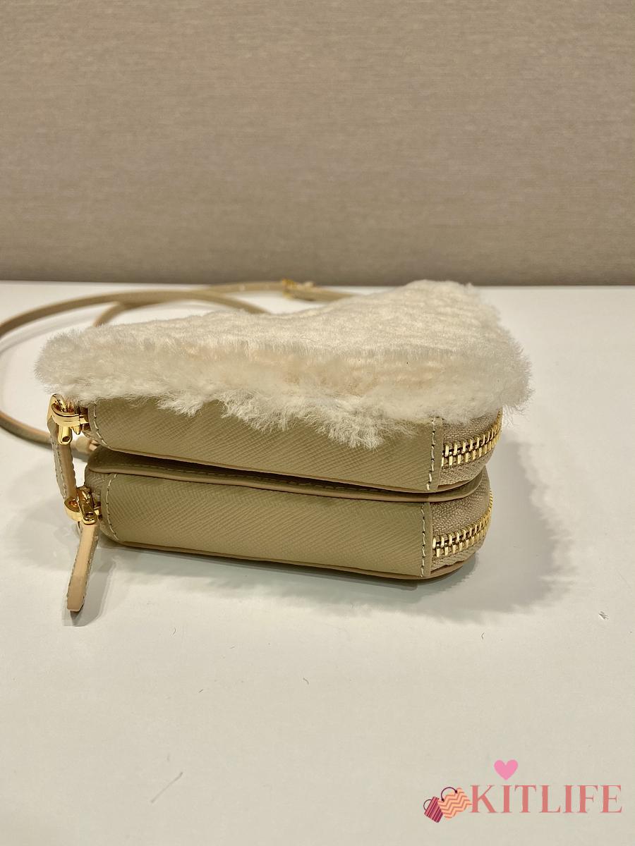 Kitlife Prada Twin Triangle Bag Beige Fur Leather 1NR015 15x10x5cm