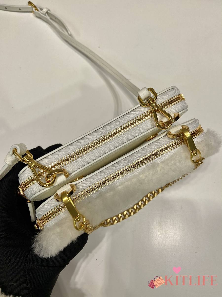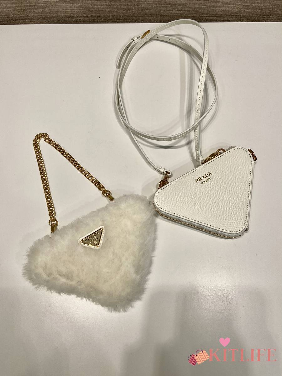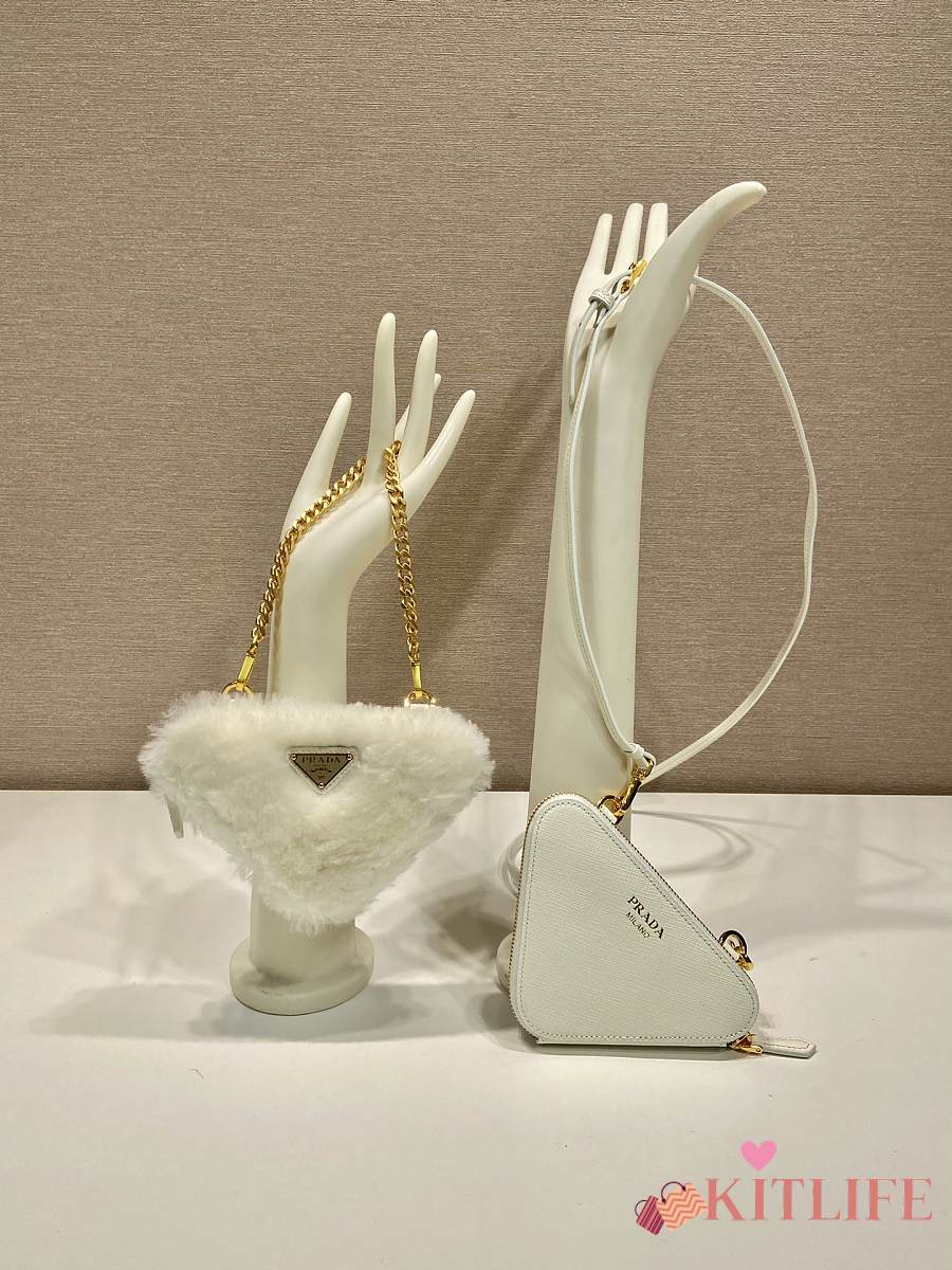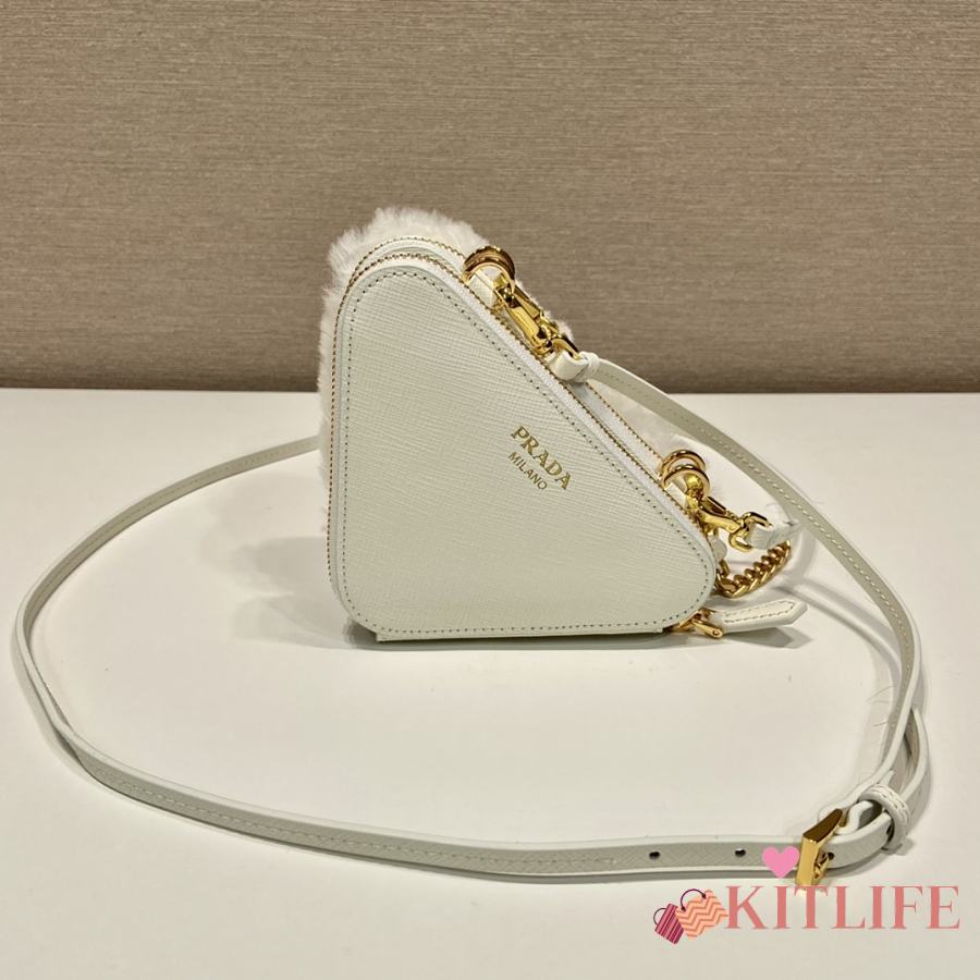 Kitlife Prada Twin Triangle Bag White Fur Leather 1NR015 15x10x5cm