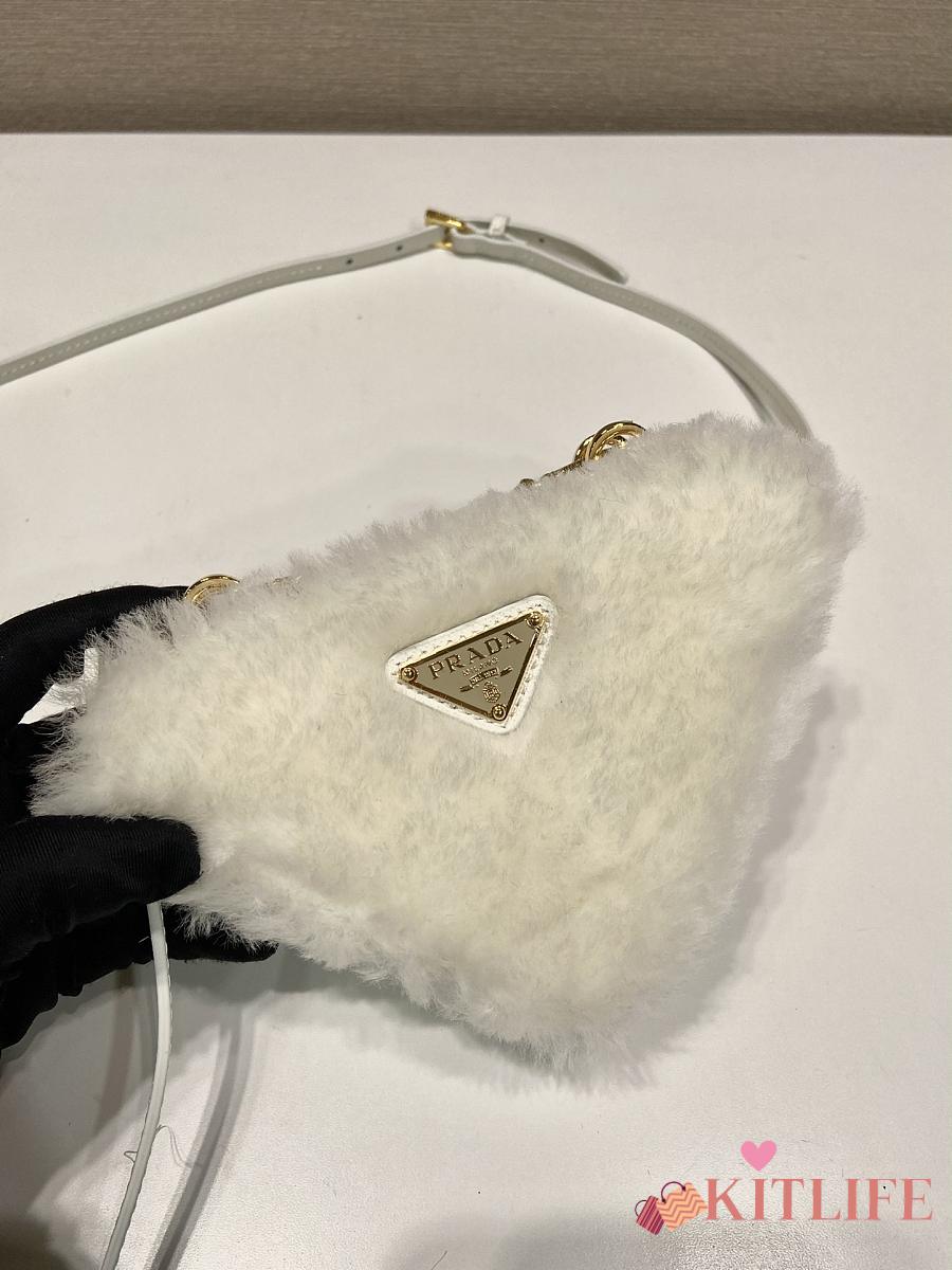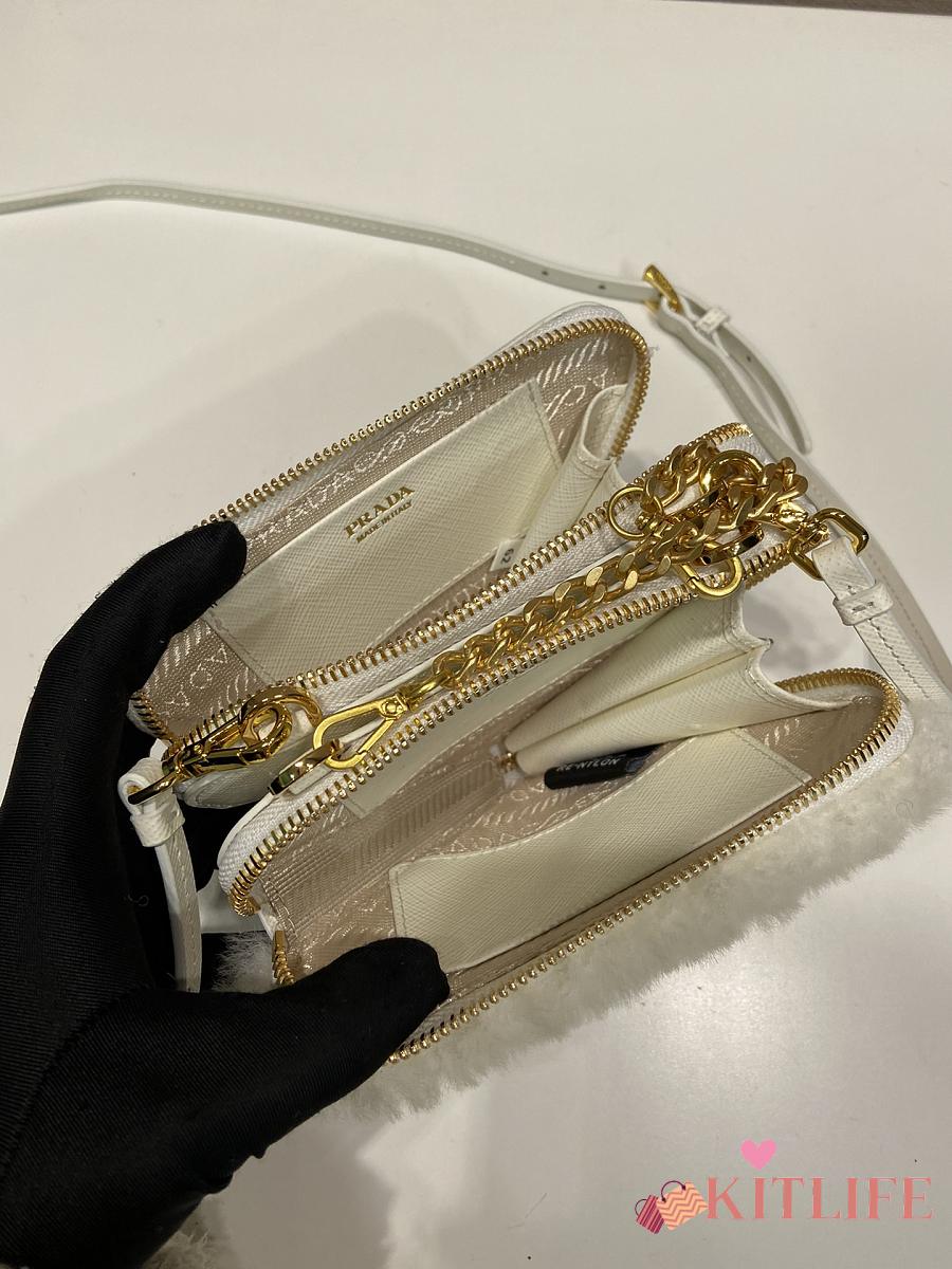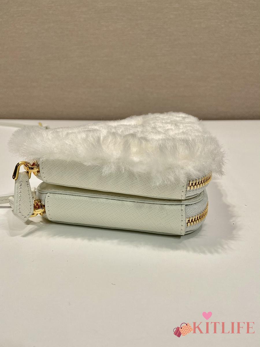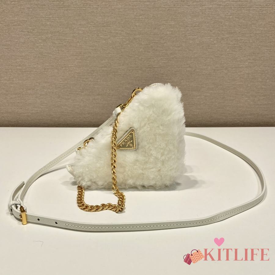 Kitlife Prada Twin Triangle Bag White Fur Leather 1NR015 15x10x5cm