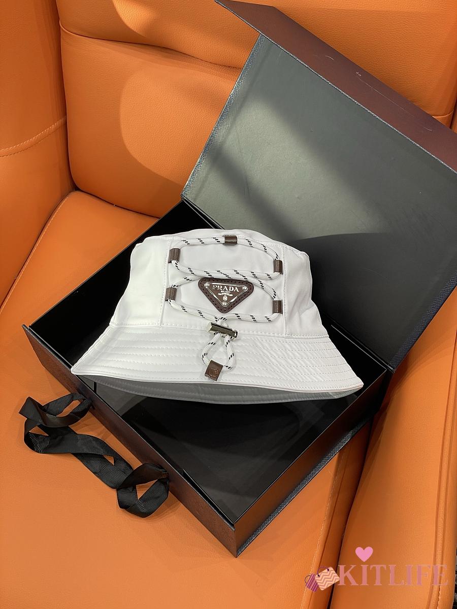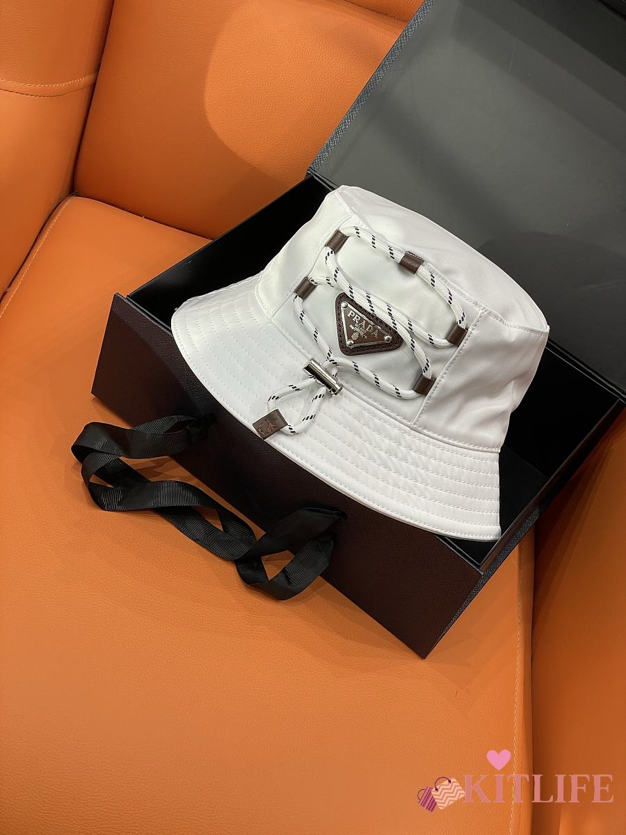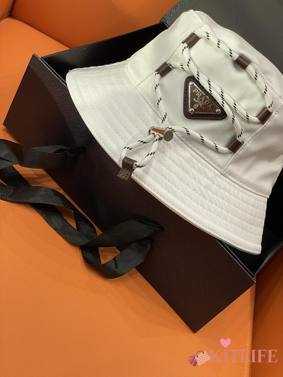 Kitlife Prada White Drawstring Bucket Hat