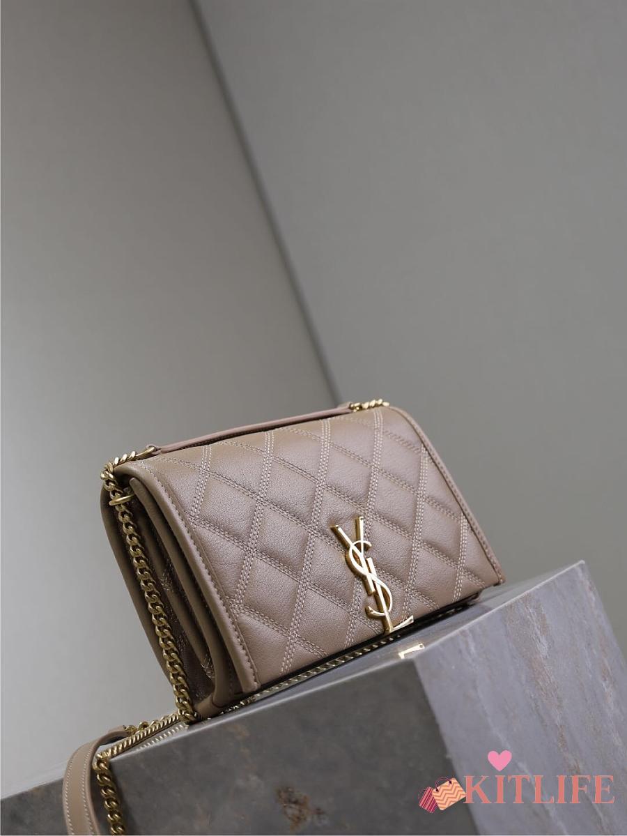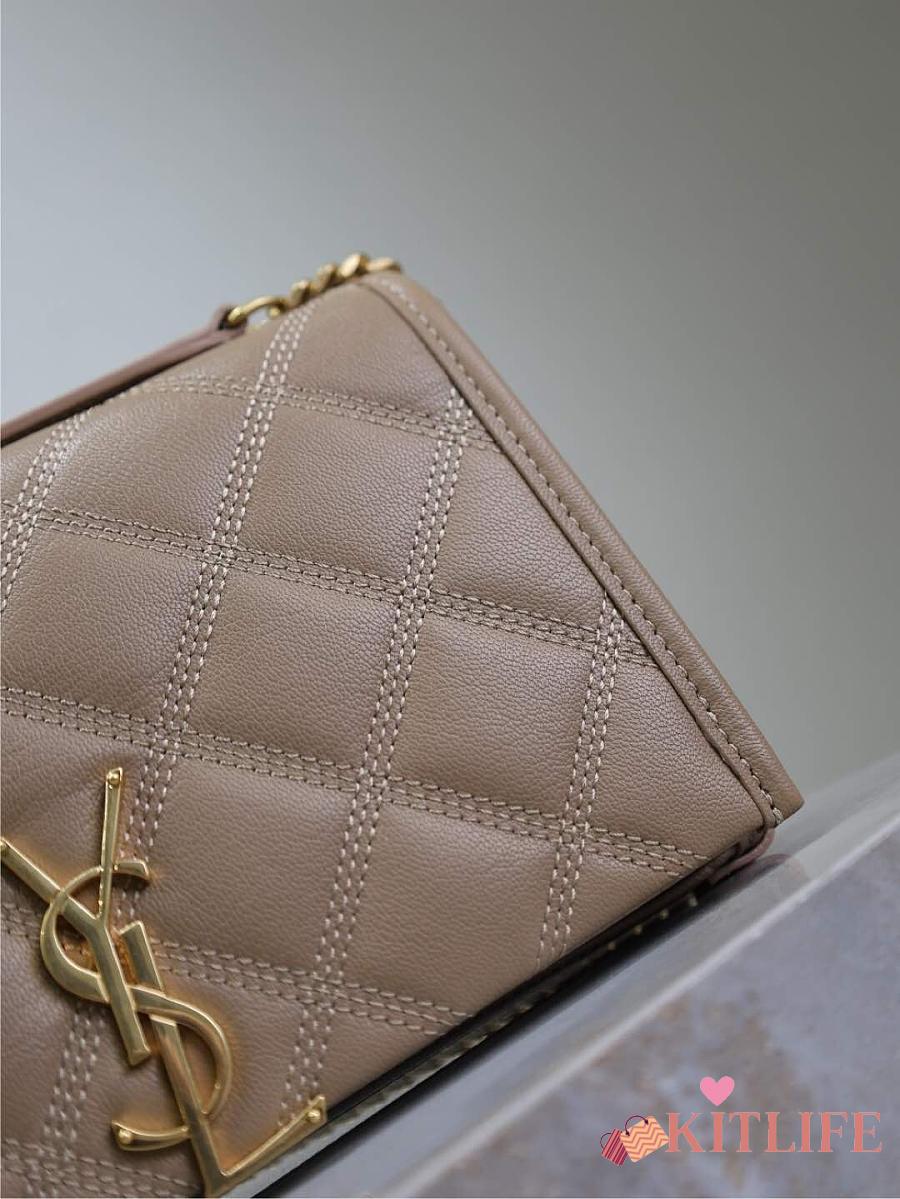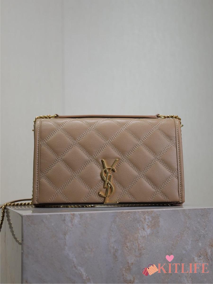Kitlife Saint Laurent Becky Diamond Quilted Lambskin Chain Bag Beige 585031 22.5×14.5×5cm