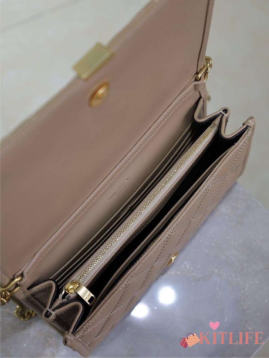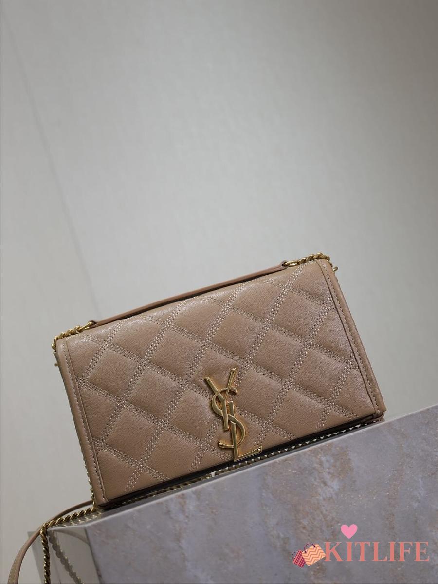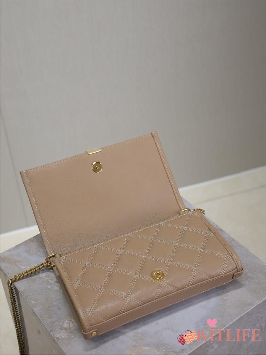 Kitlife Saint Laurent Becky Diamond Quilted Lambskin Chain Bag Beige 585031 22.5×14.5×5cm