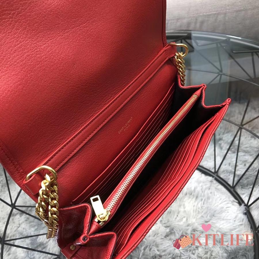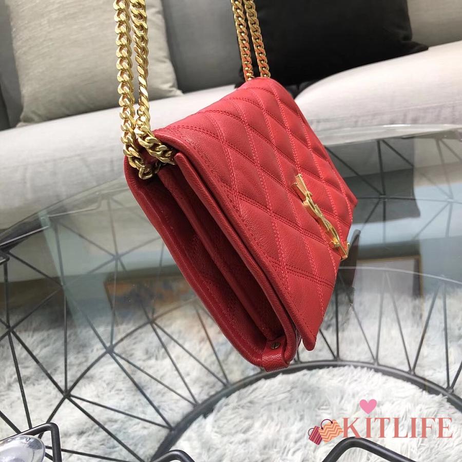 Kitlife Saint Laurent Becky Diamond Quilted Lambskin Chain Bag Red 585031 22.5×14.5×5cm