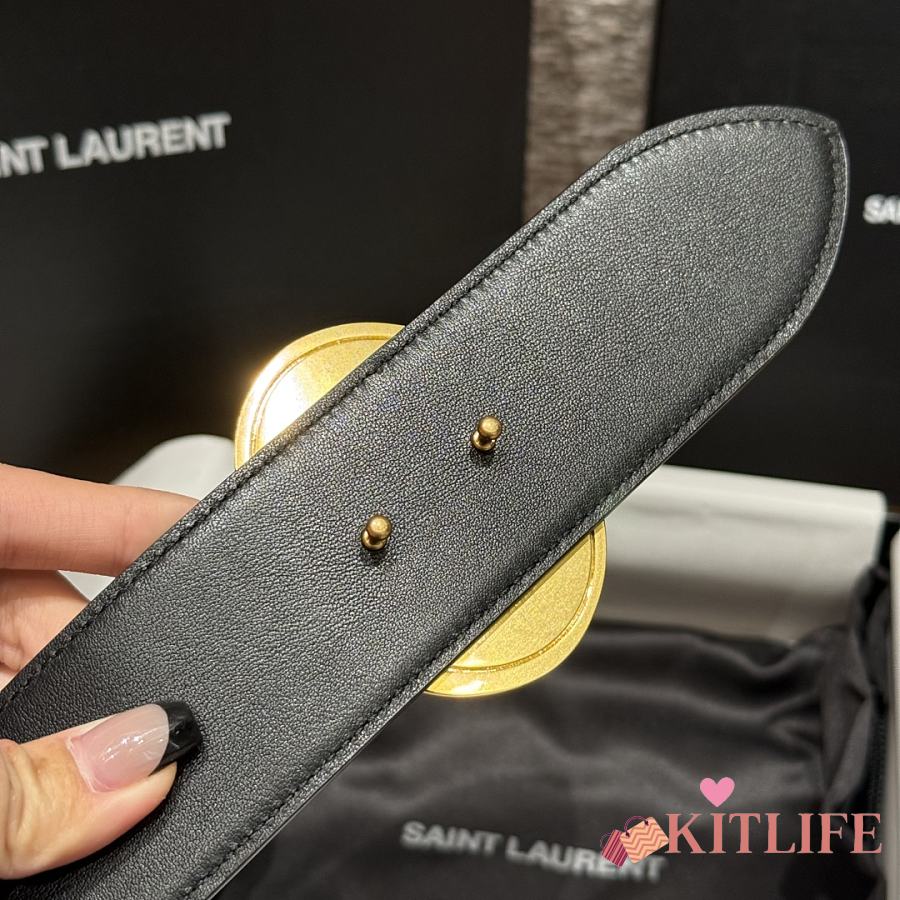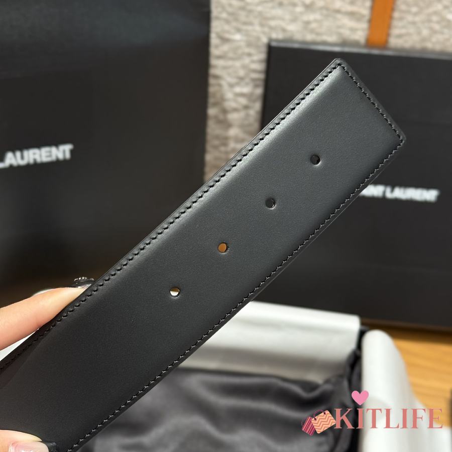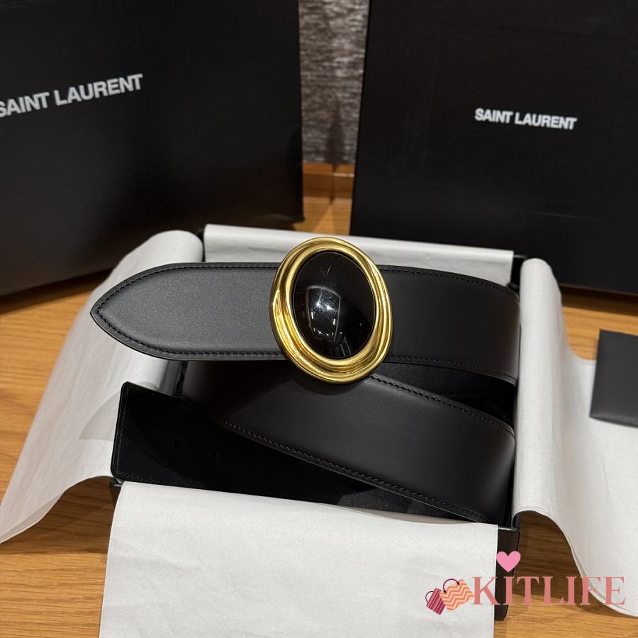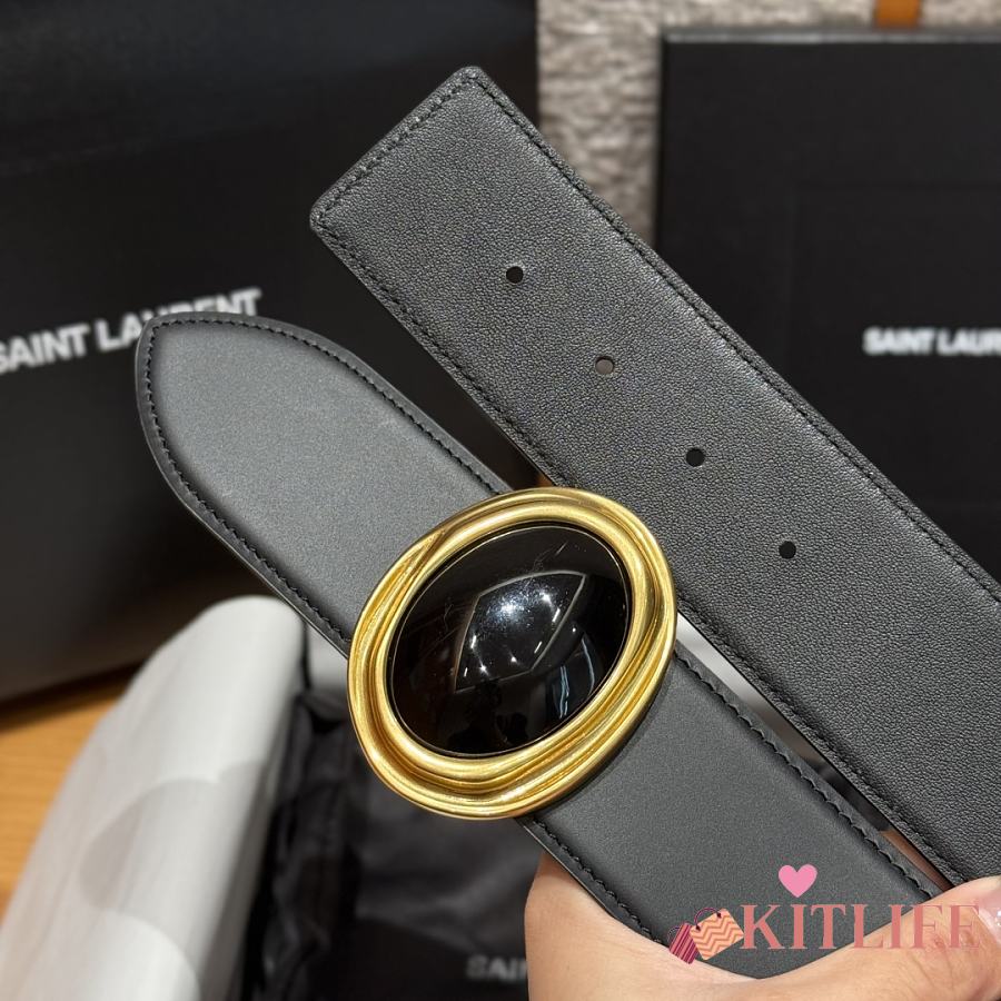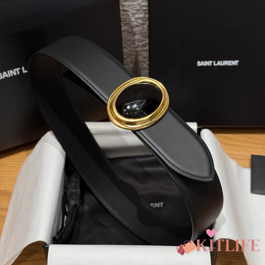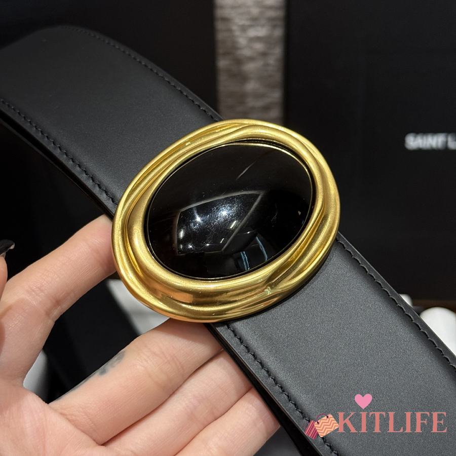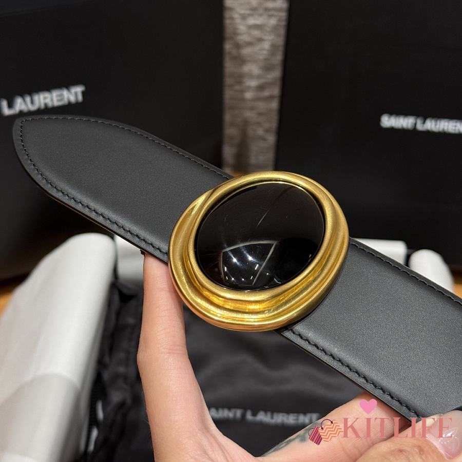 Kitlife Saint Laurent Black Leather Belt With Cabochon 45mm
