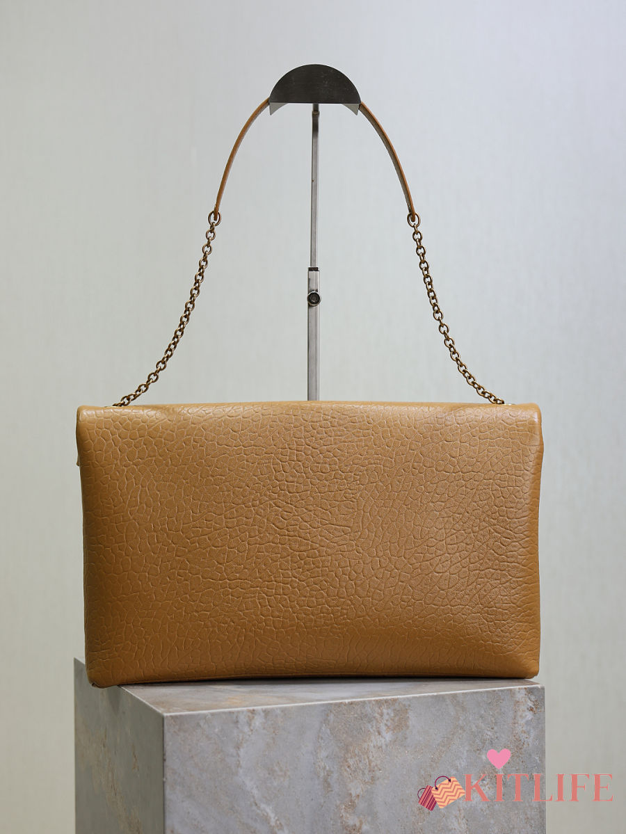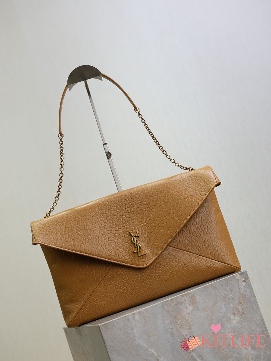 Kitlife Saint Laurent Cassandre Envelope Pouch On Chain In Brown Lambskin 841702 35x22x3cm