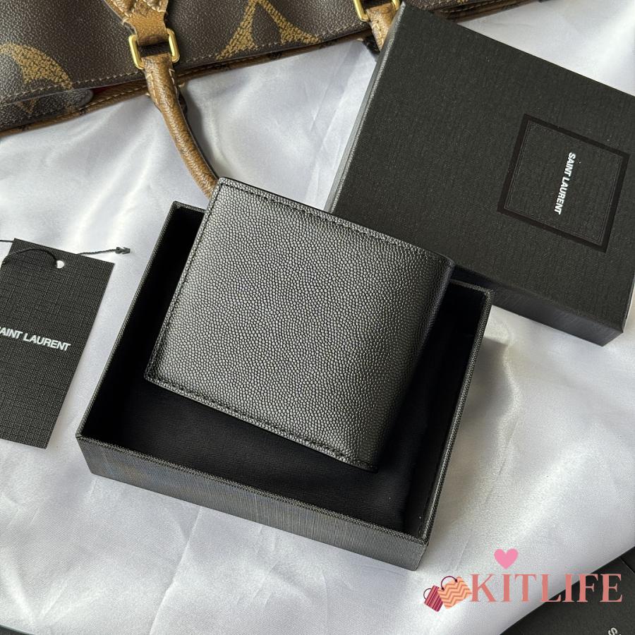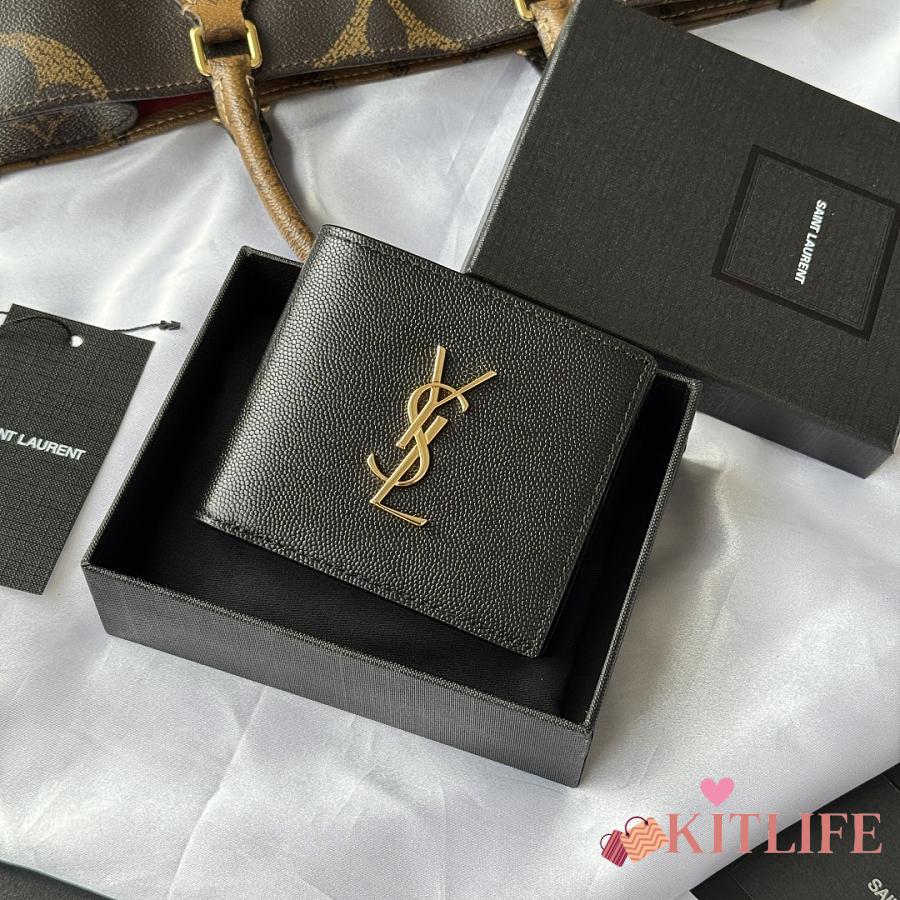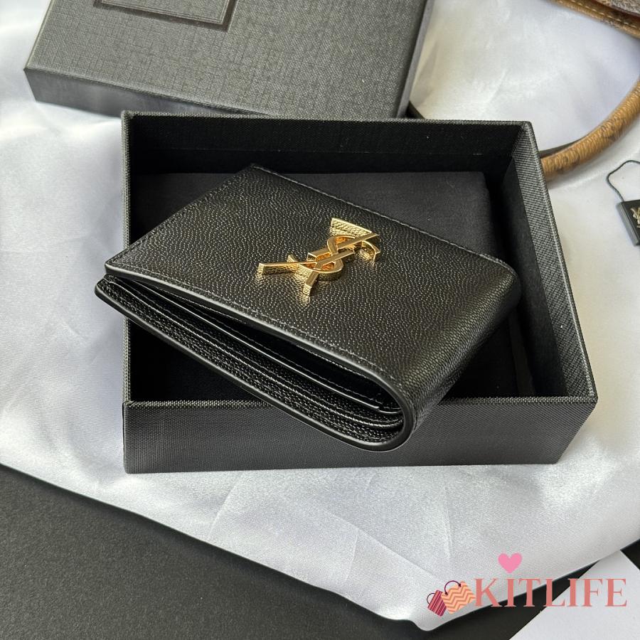 Kitlife Saint Laurent Cassandre Wllet In BLack Smooth Leather Gold Hardware 453276 11x9.5x2.5cm