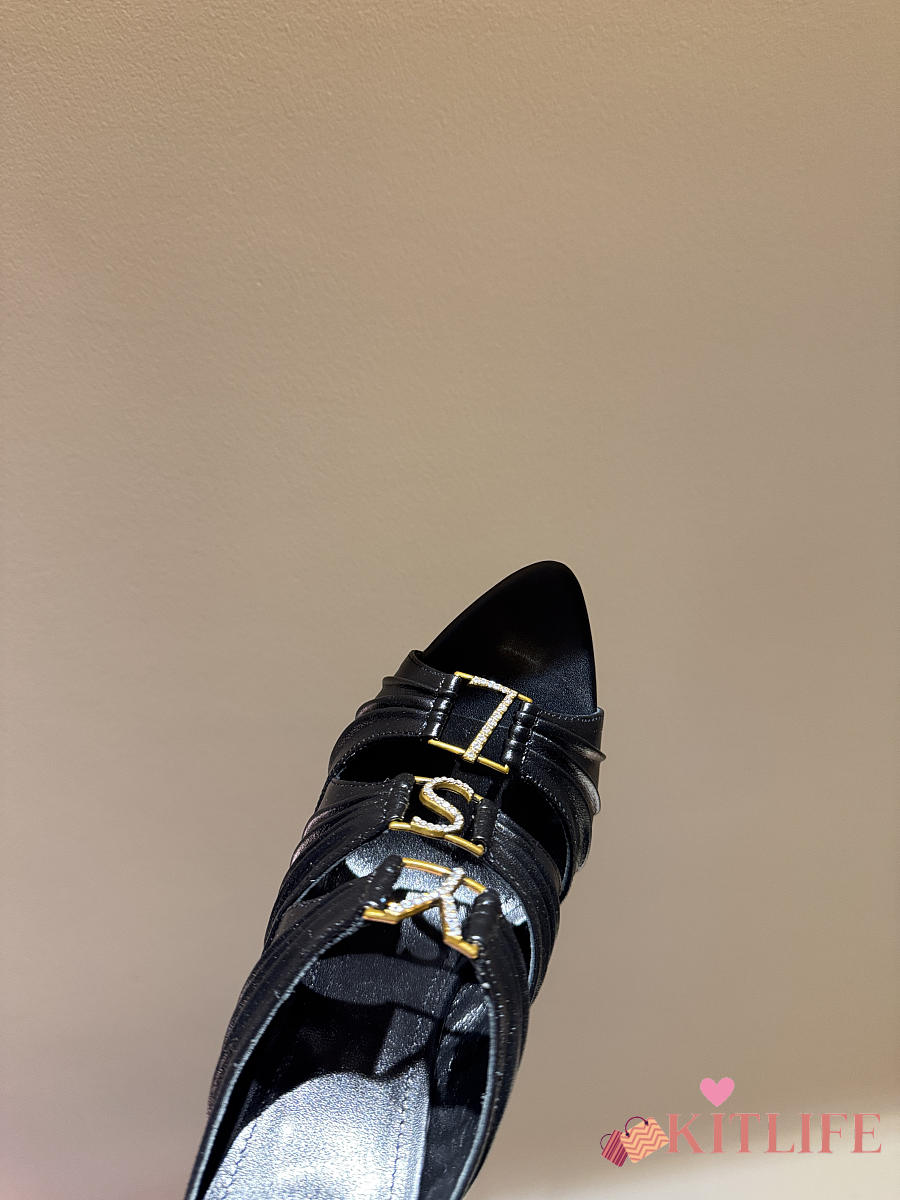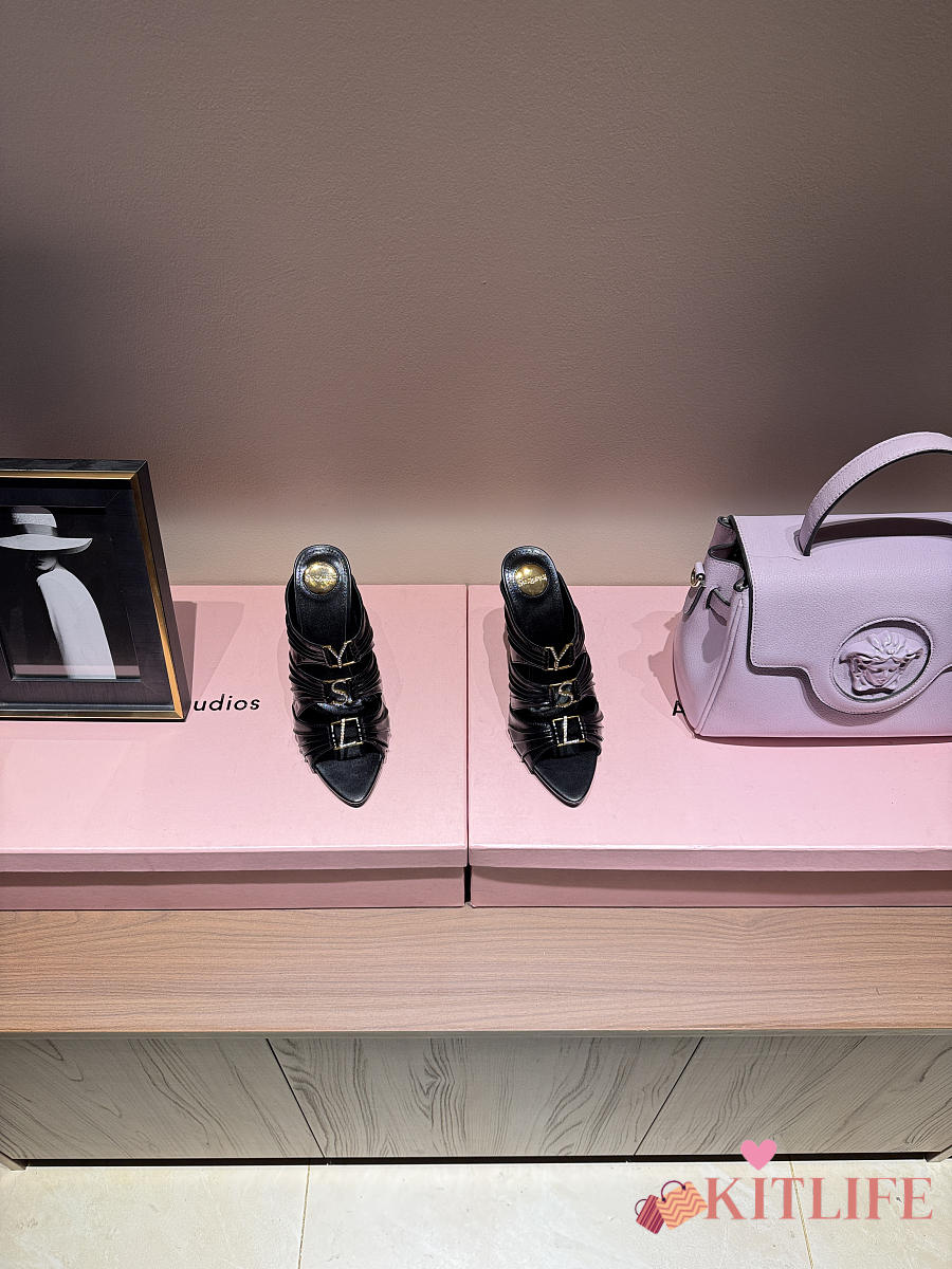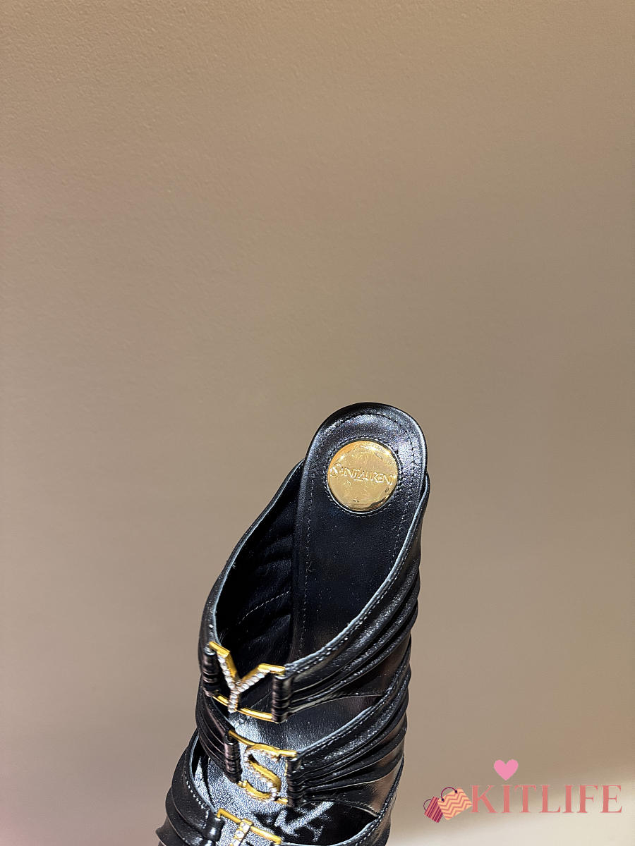 Kitlife Saint Laurent Emilie Black Leather Crepe Mules