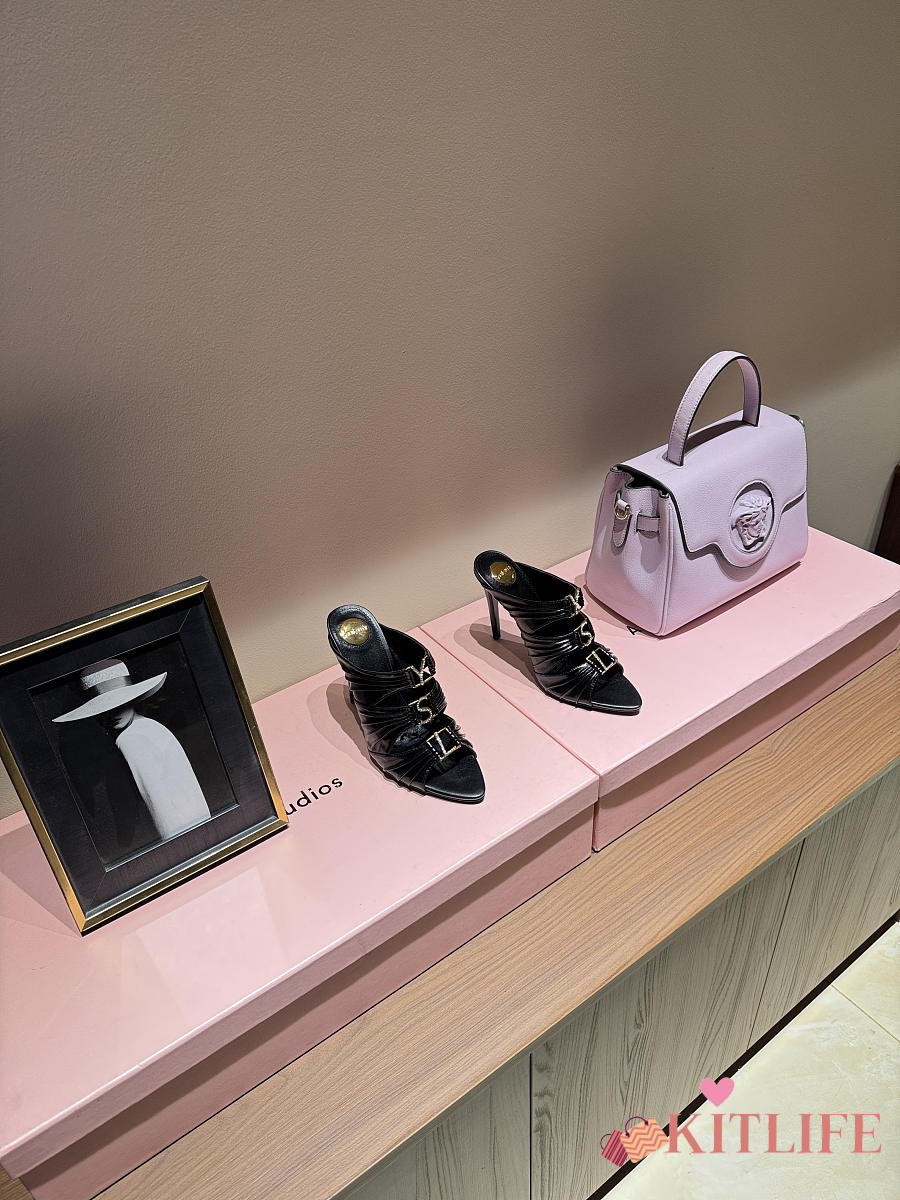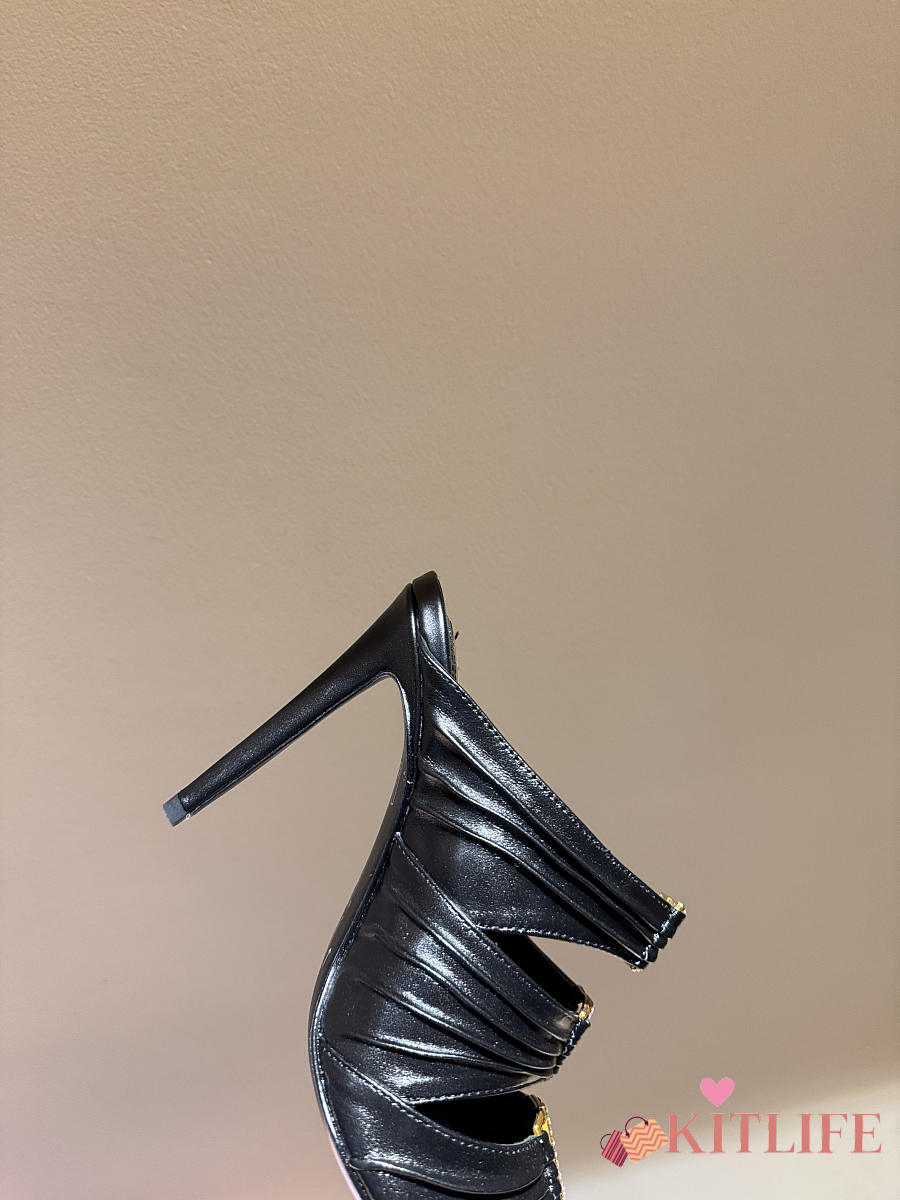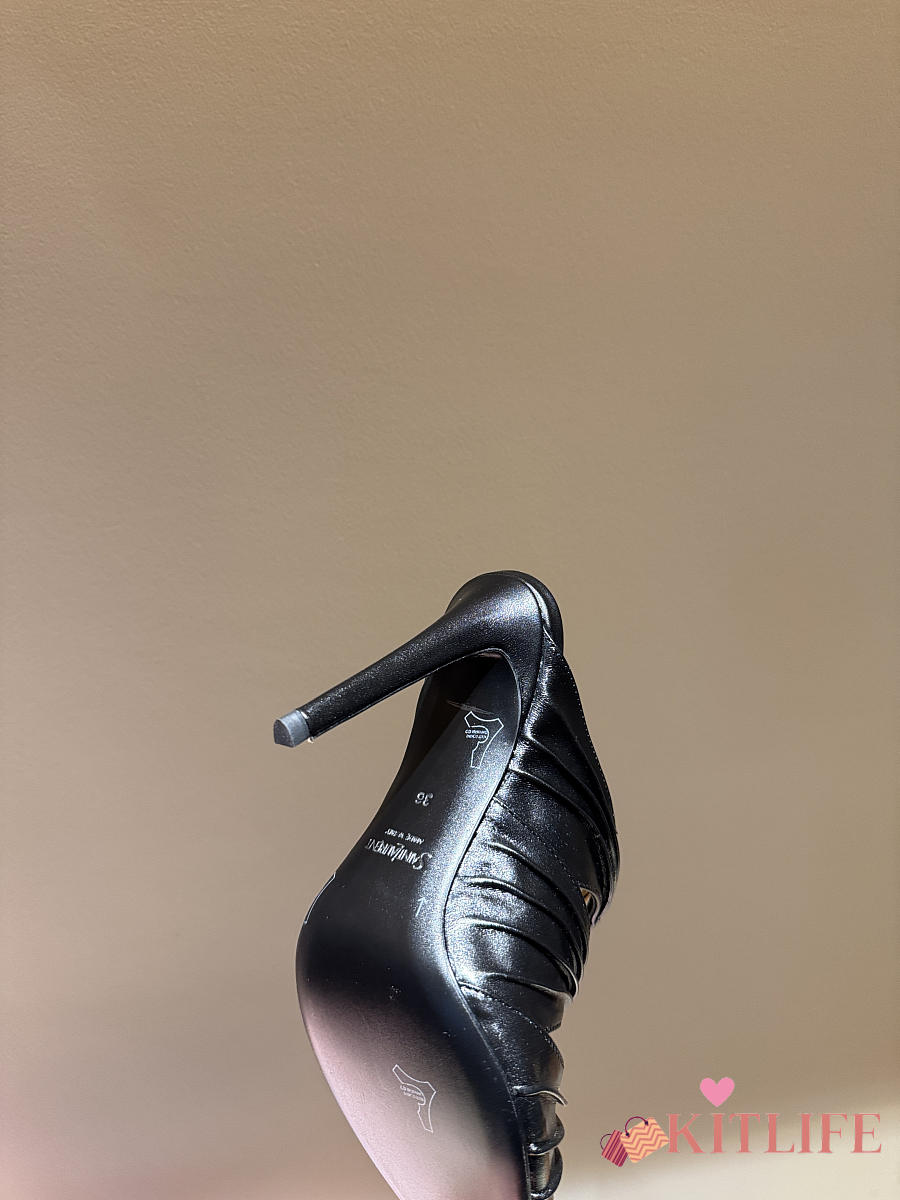 Kitlife Saint Laurent Emilie Black Leather Crepe Mules