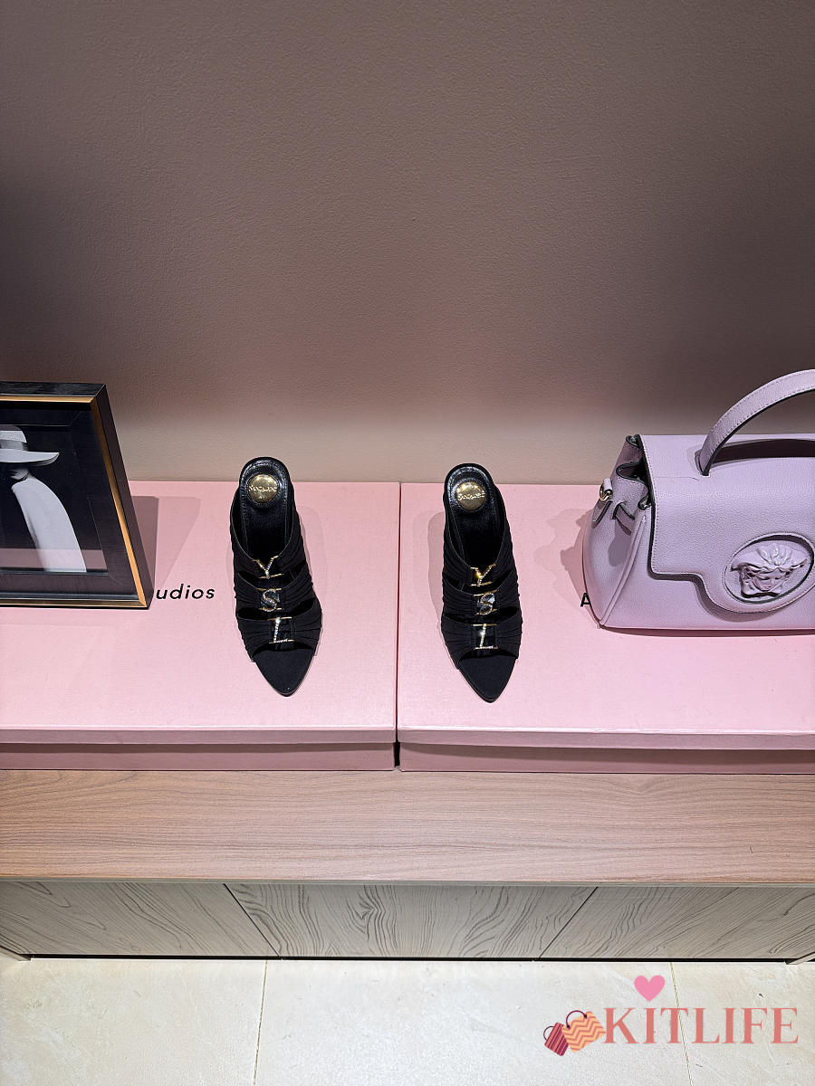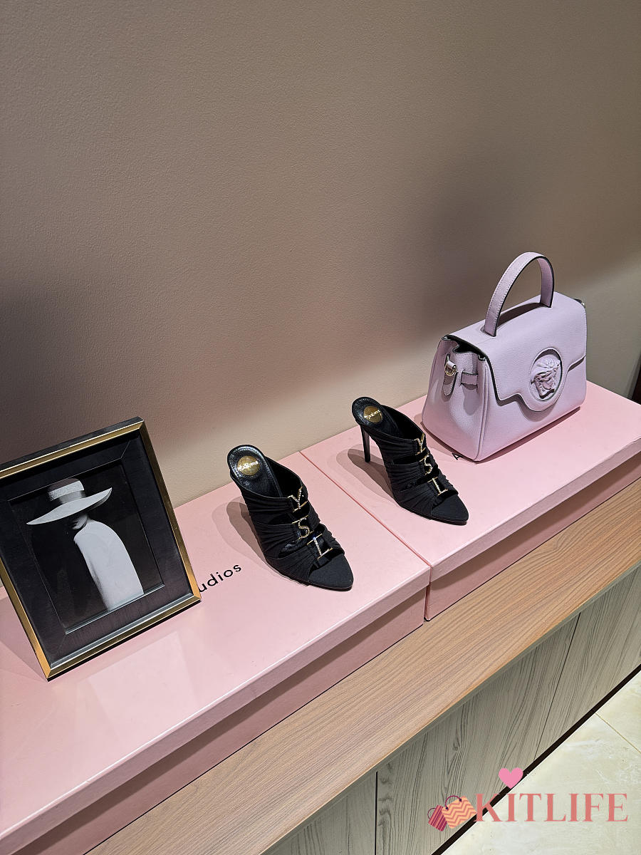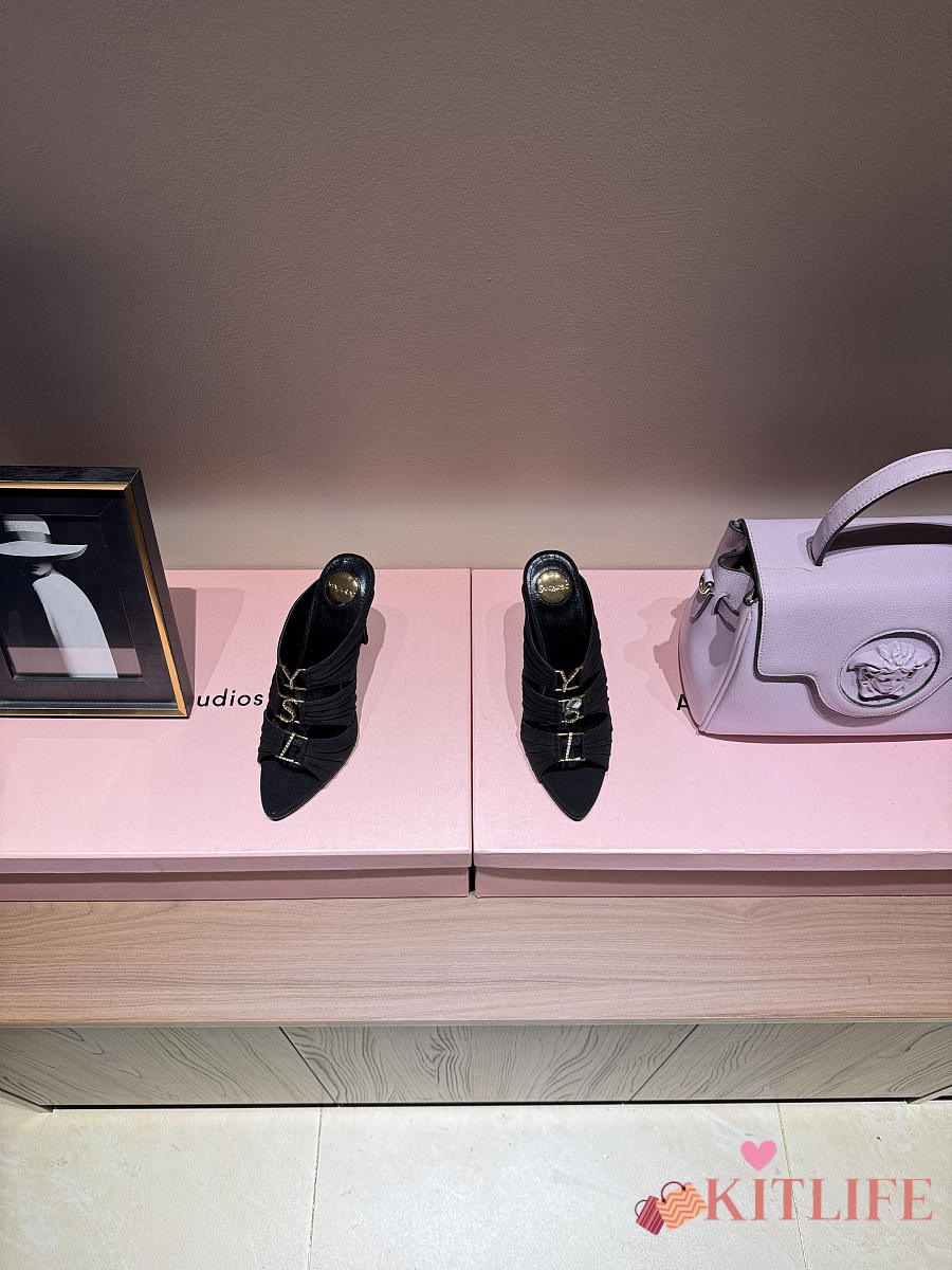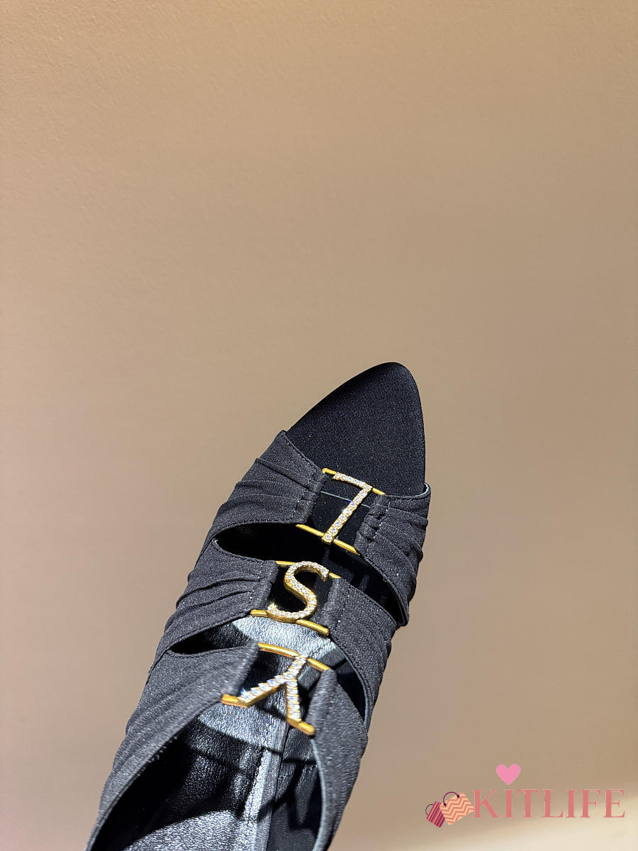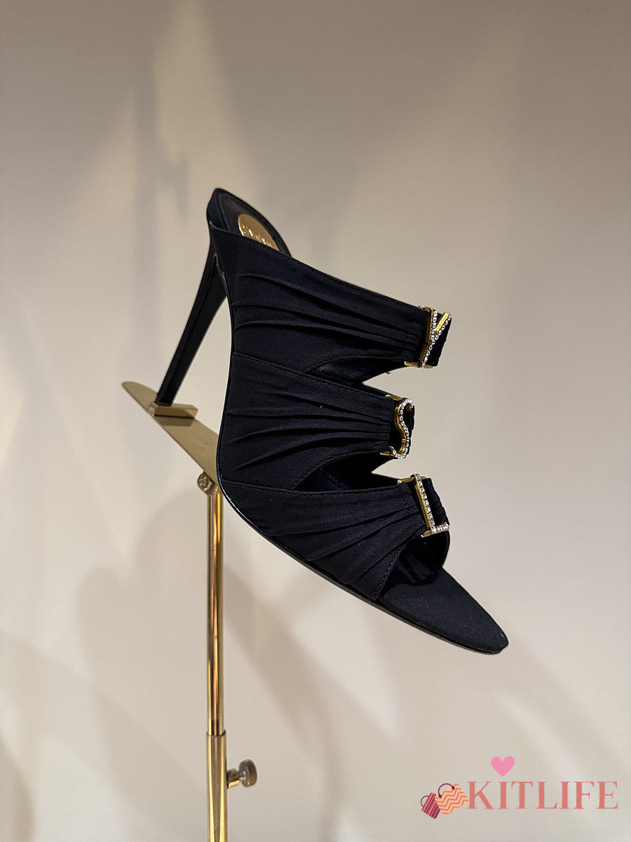 Kitlife Saint Laurent Emilie Black Satin Crepe Mules