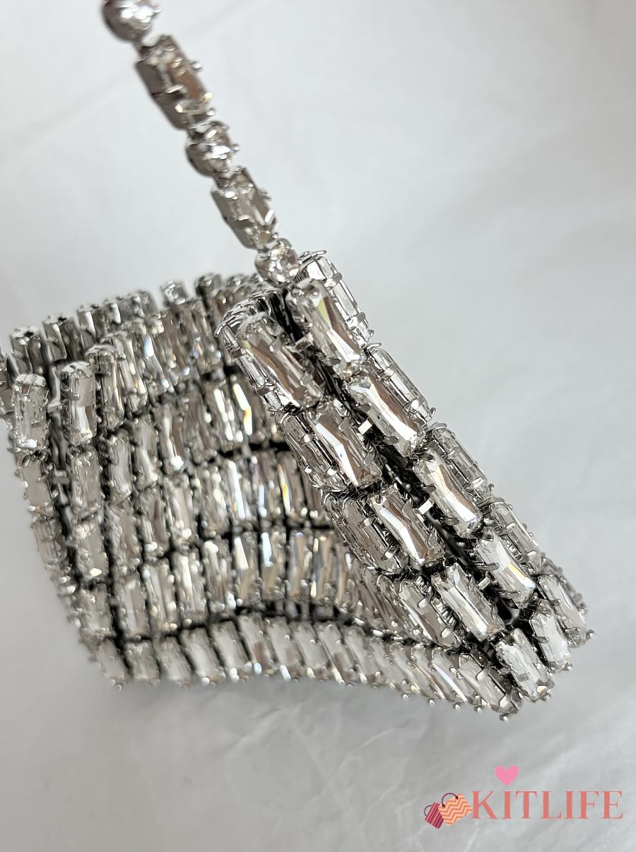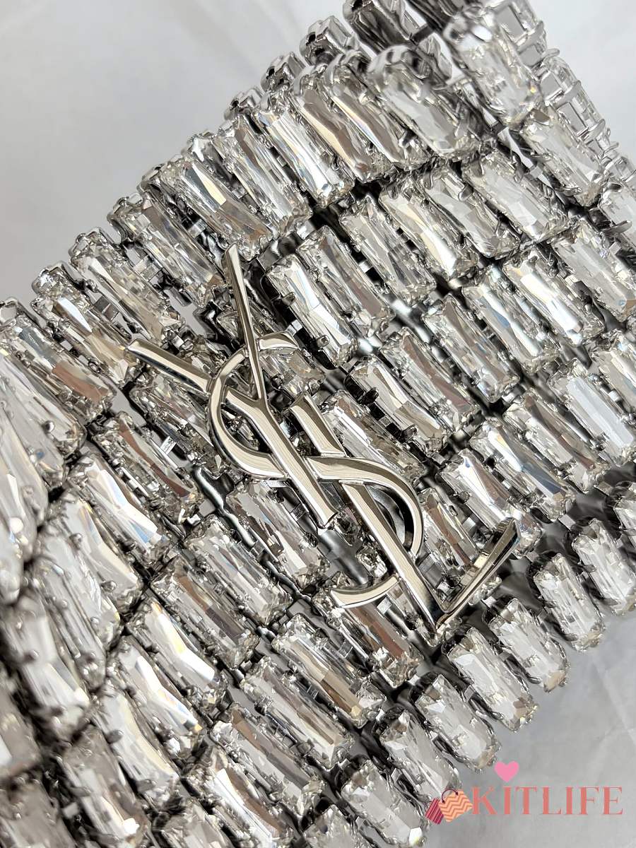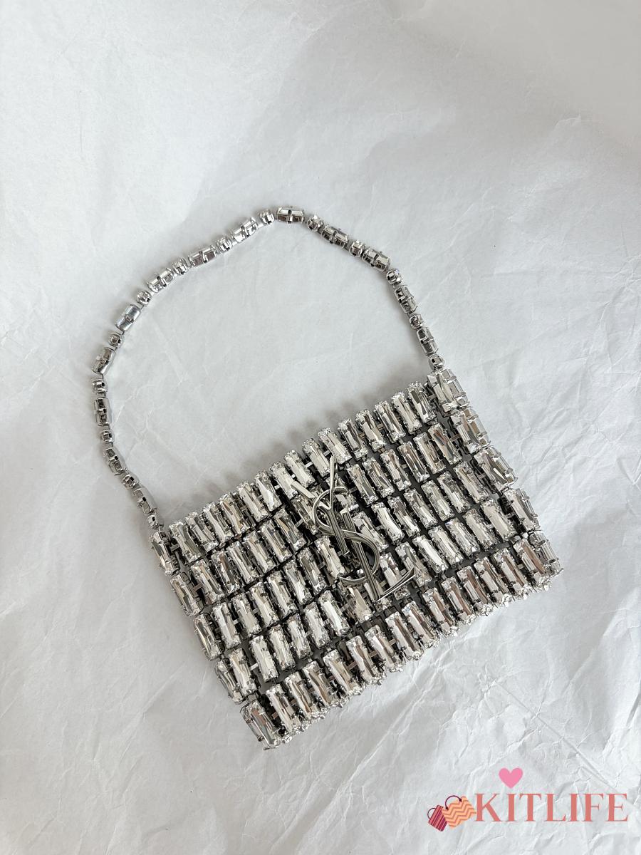 Kitlife Saint Laurent Evening Bag In Crystals Silver 11.5x8.5x2.5cm