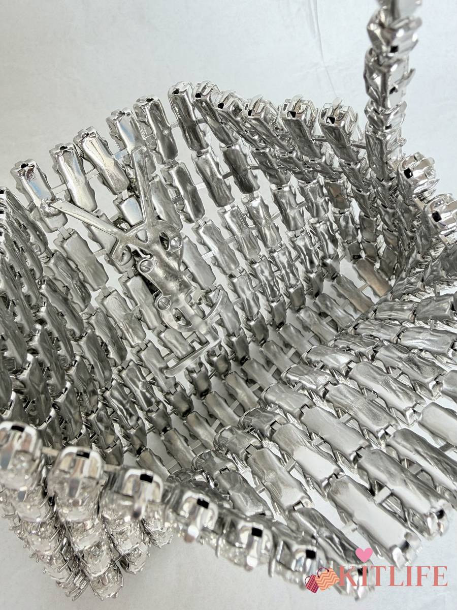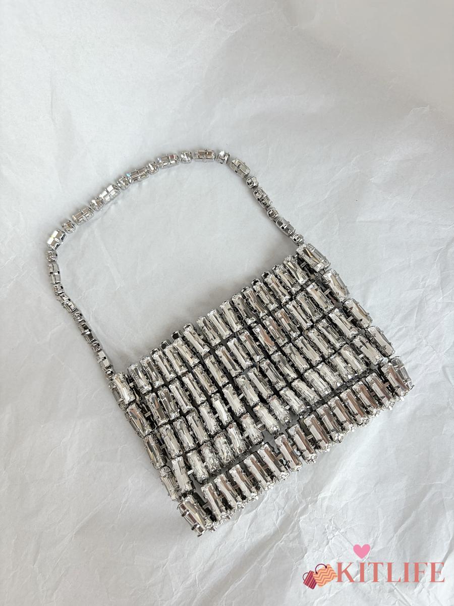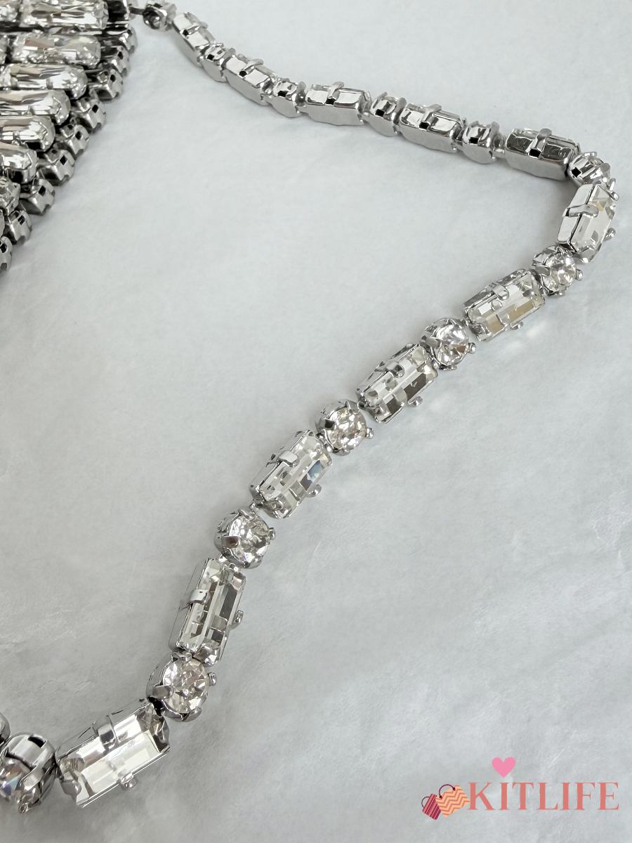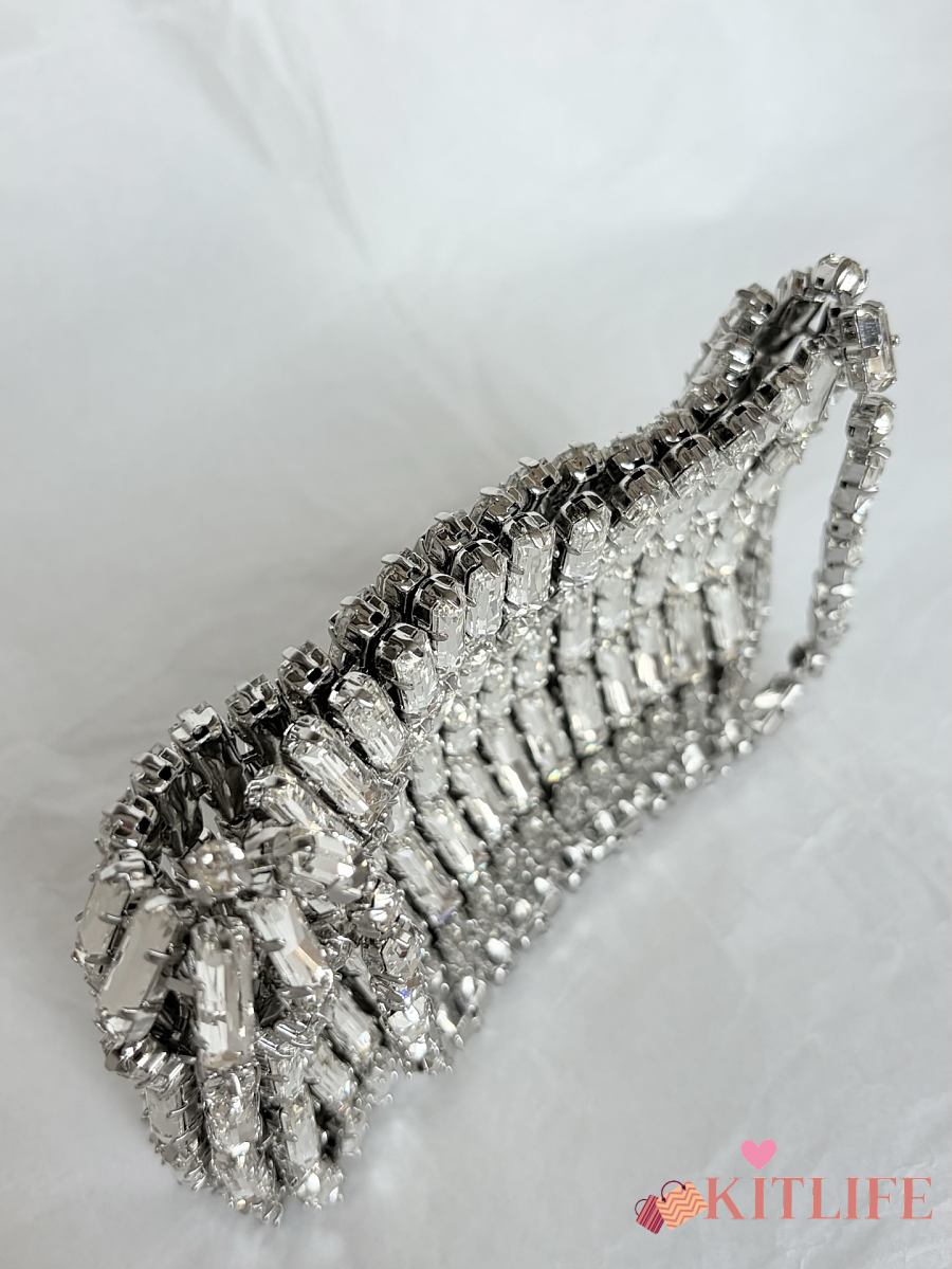 Kitlife Saint Laurent Evening Bag In Crystals Silver 11.5x8.5x2.5cm