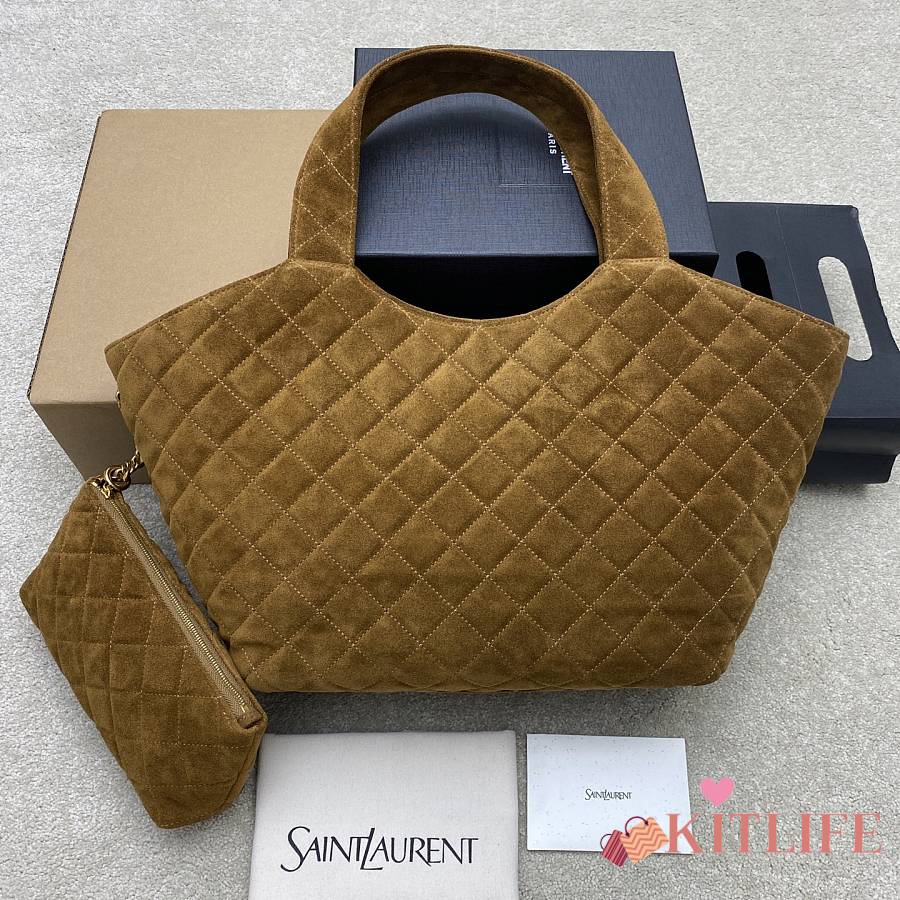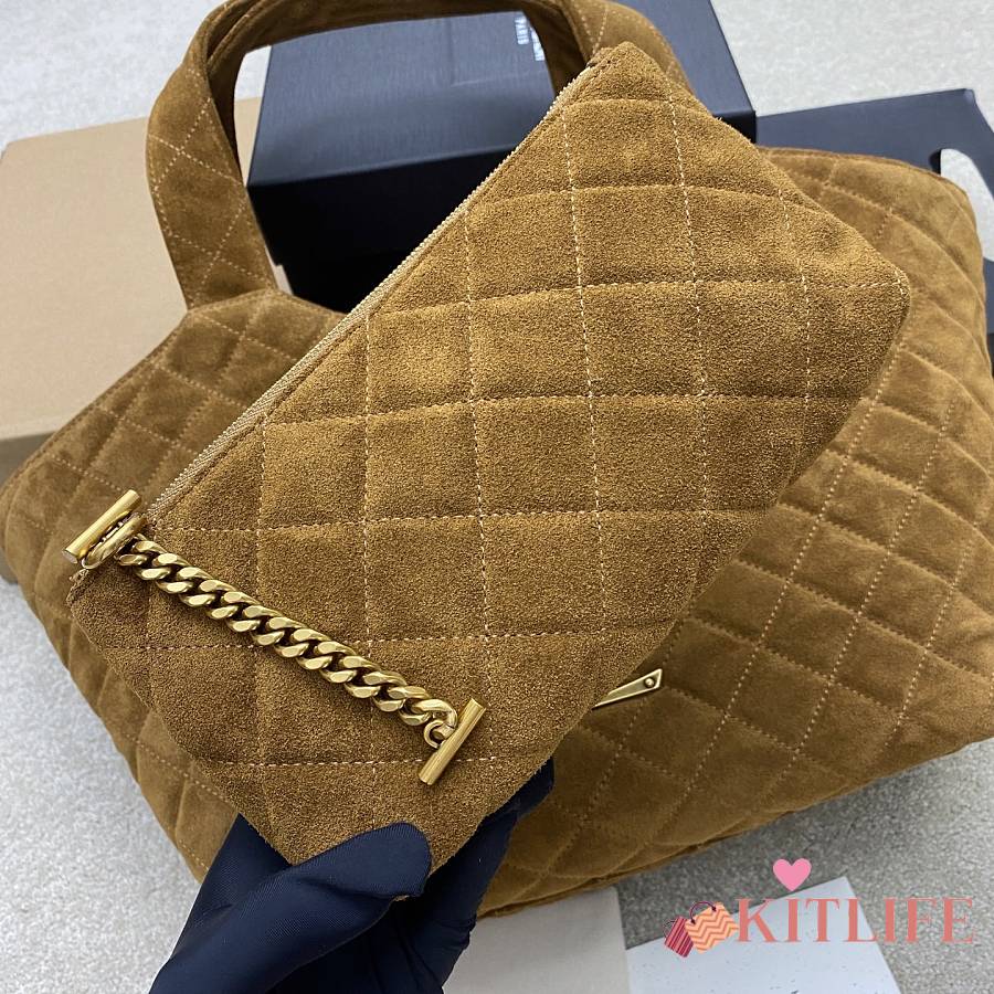 Kitlife Saint Laurent Icare Medium In Brown Suede Quilted Bag 858191 31/46x28x15/5cm
