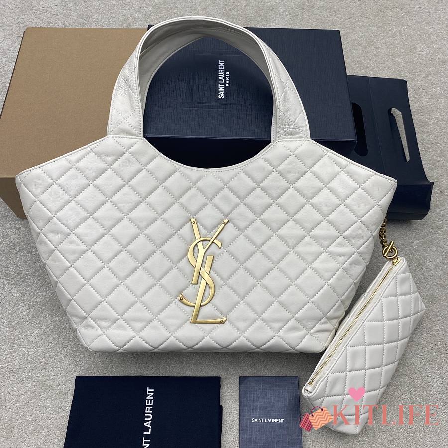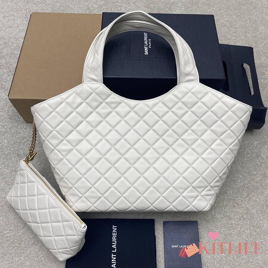Kitlife Saint Laurent Icare Medium In White Quilted Nappa Bag 858191 31/46x28x15/5cm