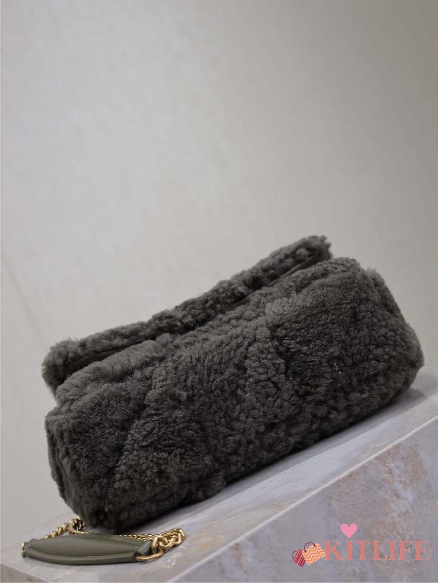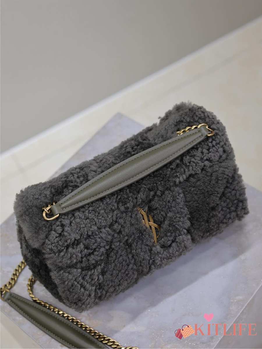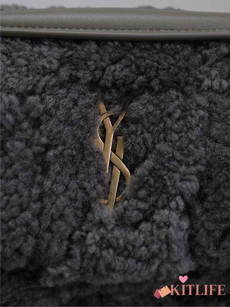 Kitlife Saint Laurent Joe Lambswool Bag Beige & Dark Brown 631052 19x13x13cm