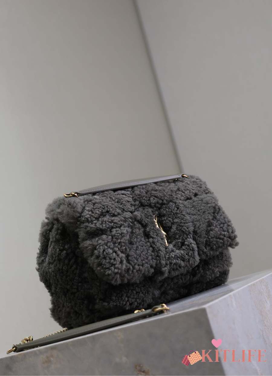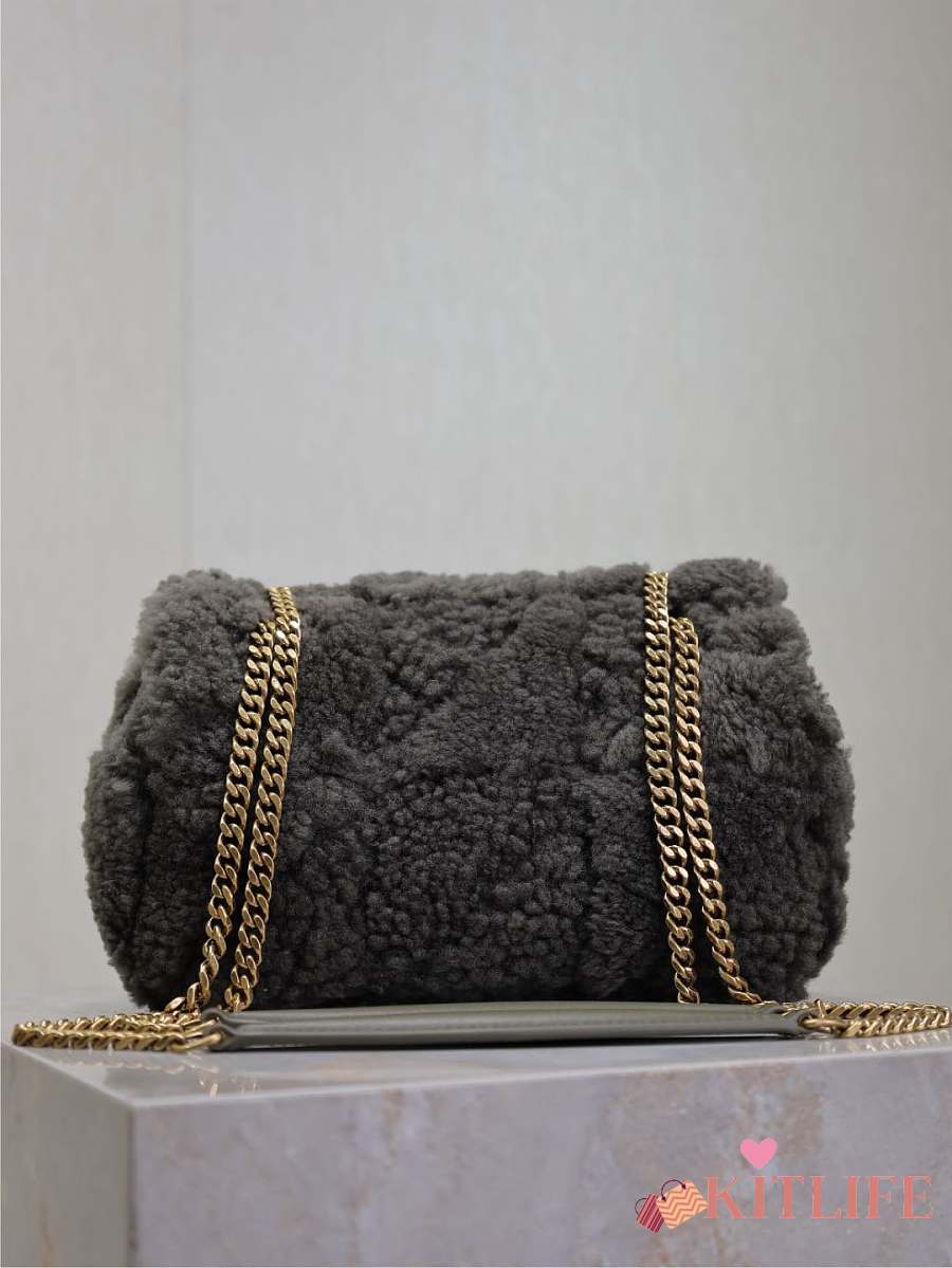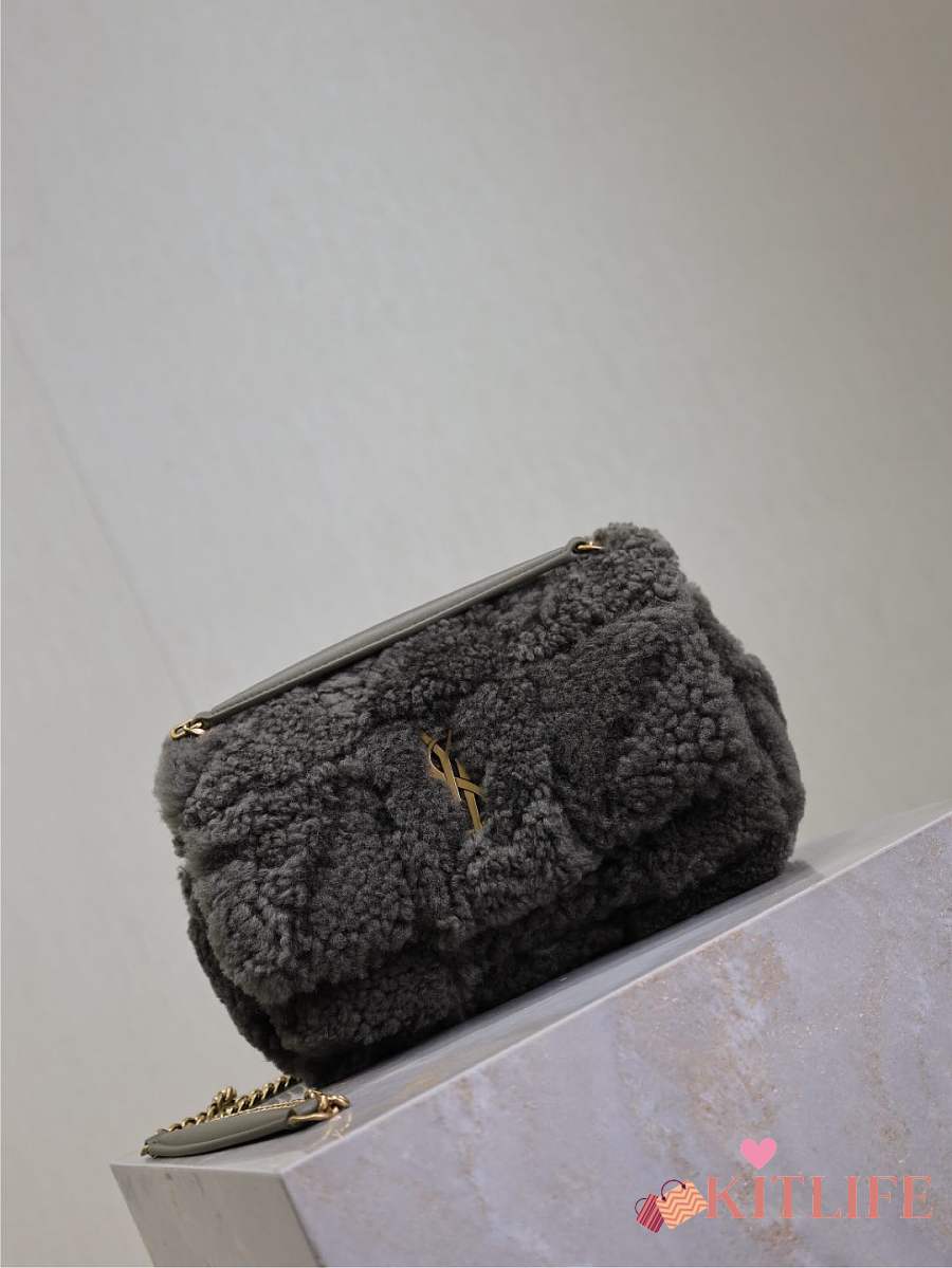 Kitlife Saint Laurent Joe Lambswool Bag Beige & Dark Brown 631052 19x13x13cm
