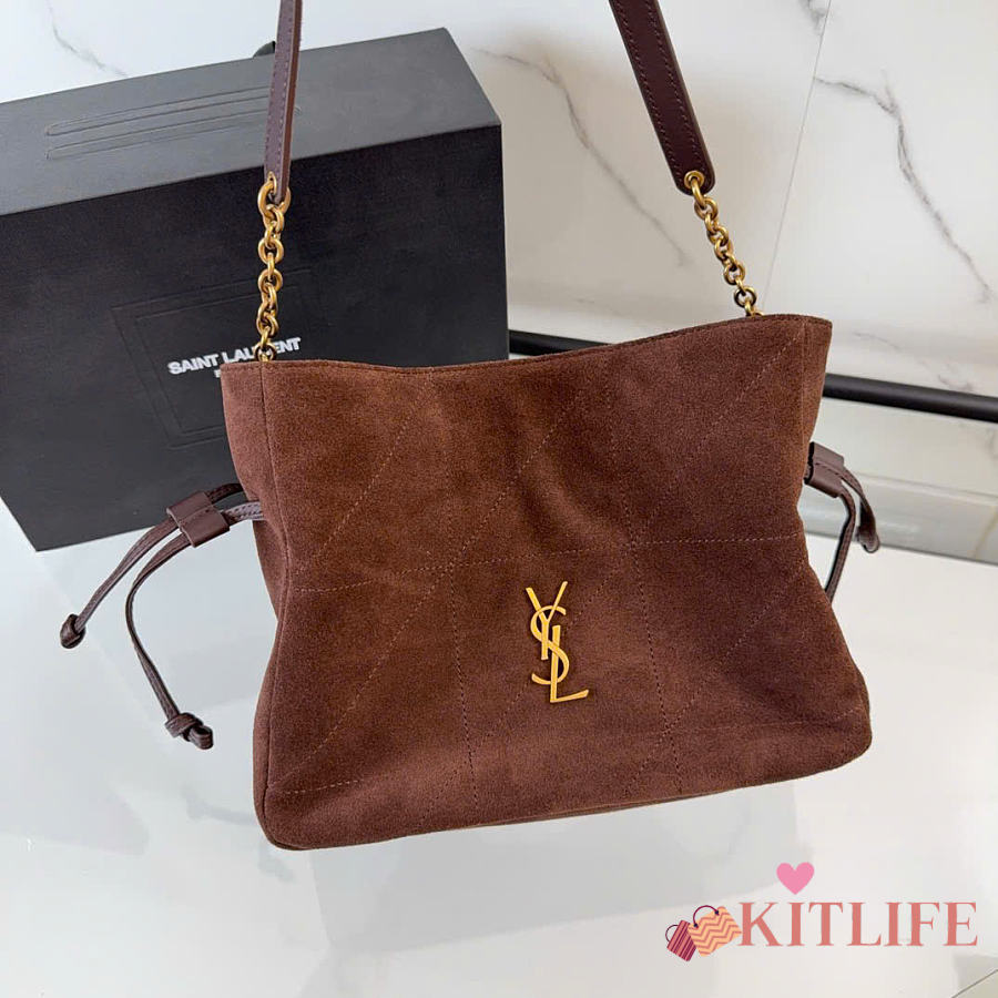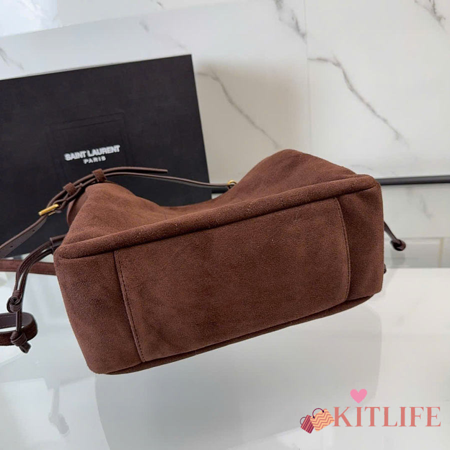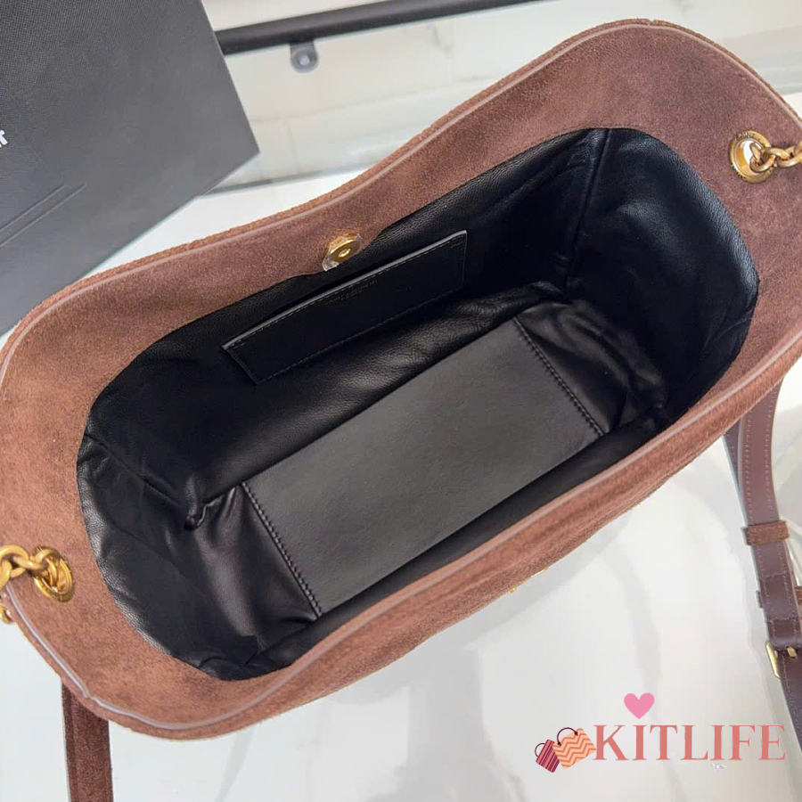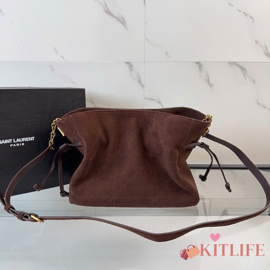 Kitlife Saint Laurent Jamie Medium Shoulder Pouch In Dark Brown Suede 862712 26×18×11cm