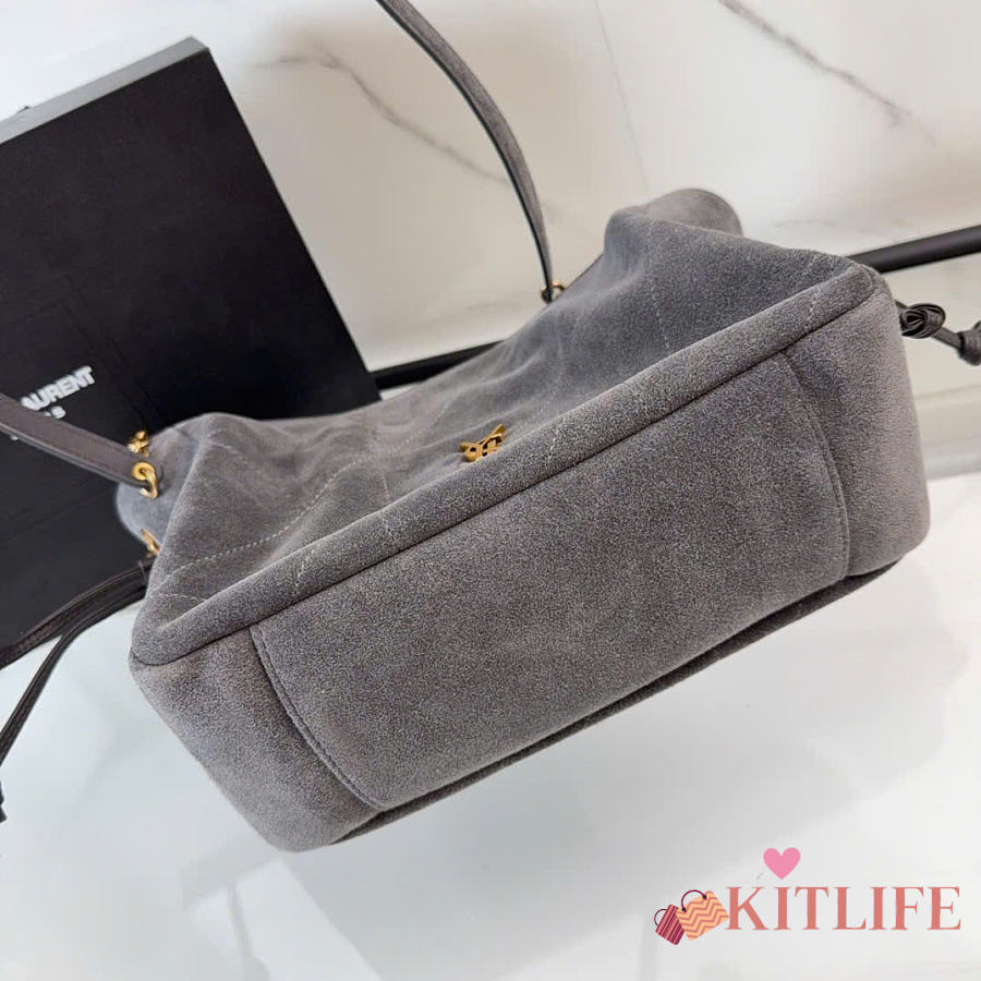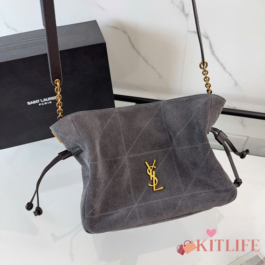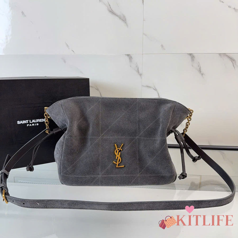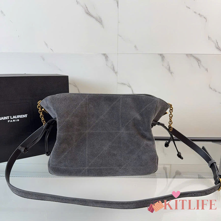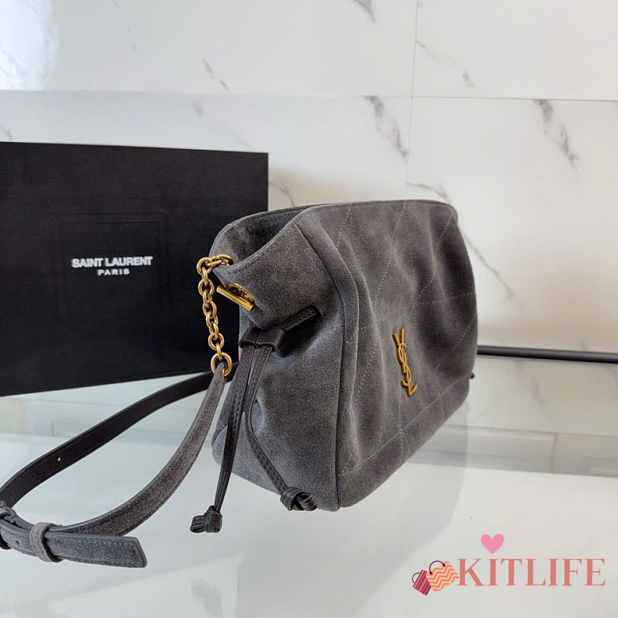 Kitlife Saint Laurent Jamie Medium Shoulder Pouch In Grey Suede 862712 26×18×11cm