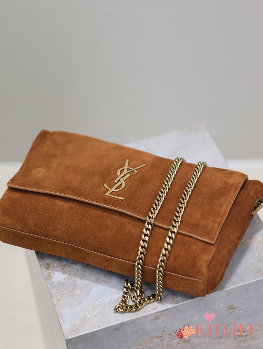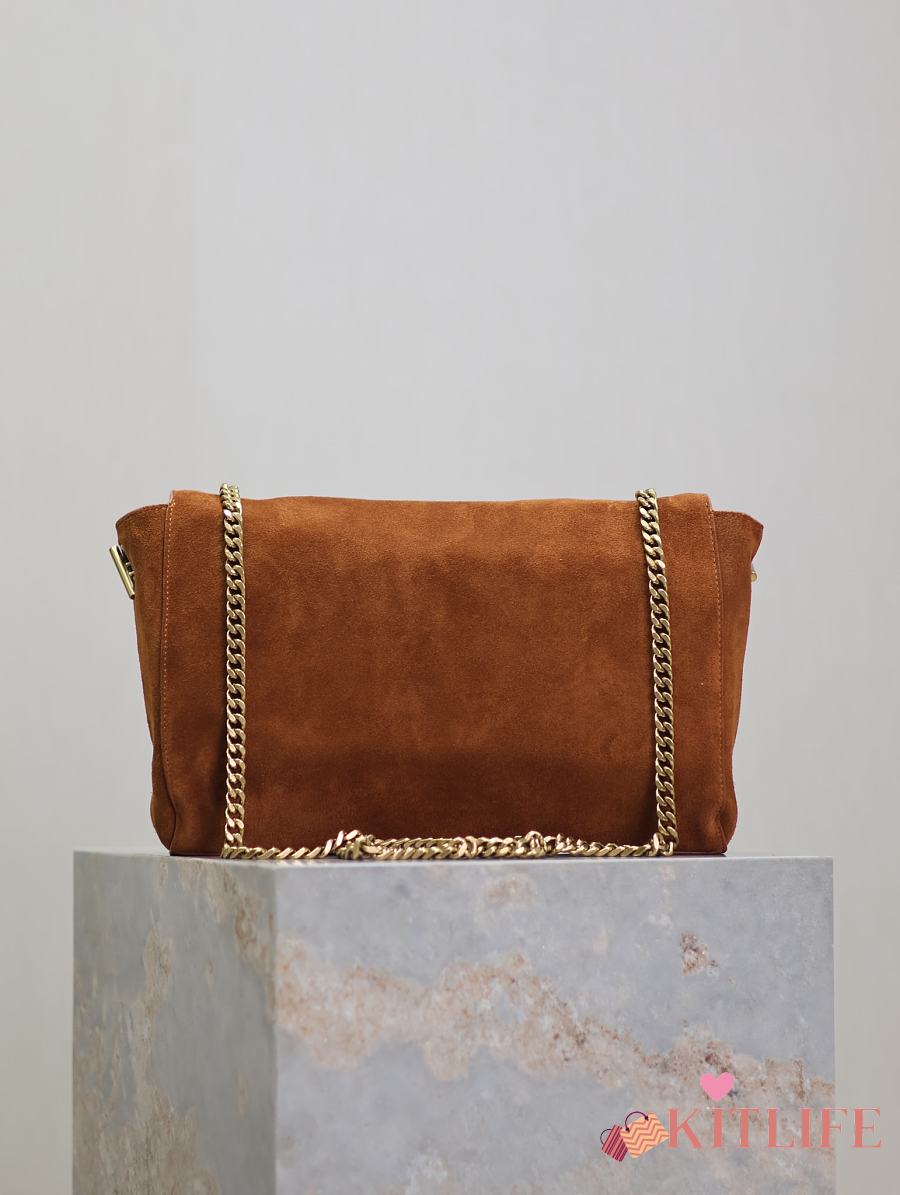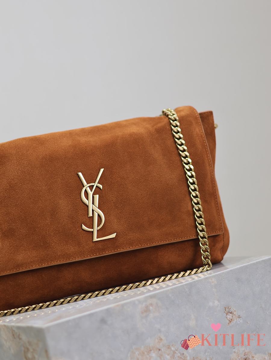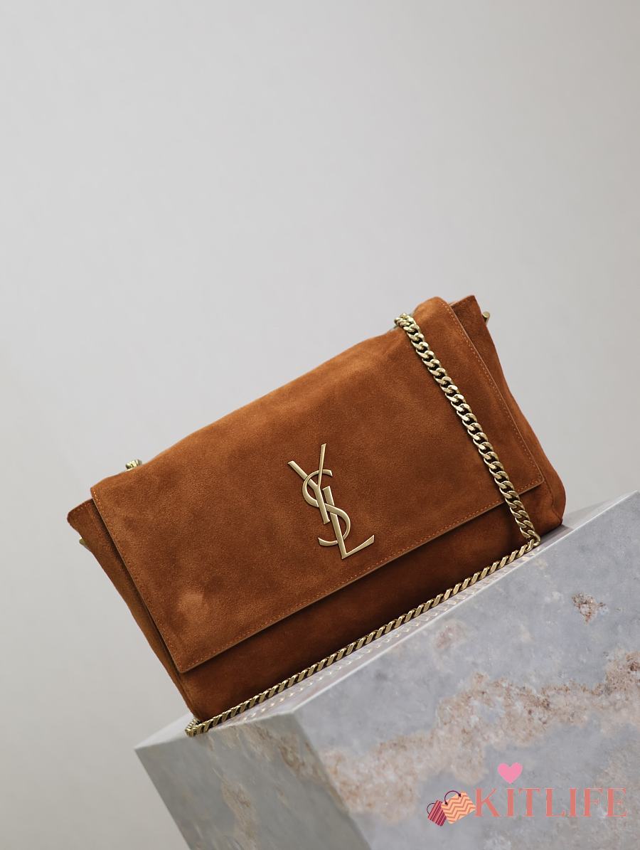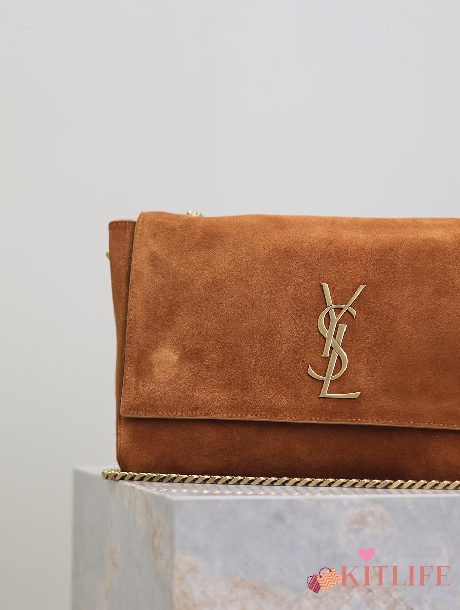Kitlife Saint Laurent Kate Reversible Dark Brown Suede & Calfskin Leather Shoulder Bag 553804 28.5x20x6cm