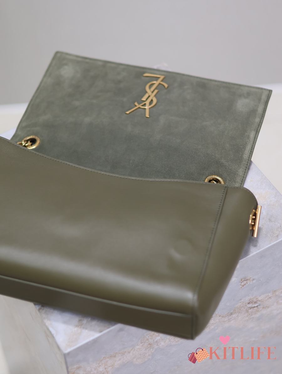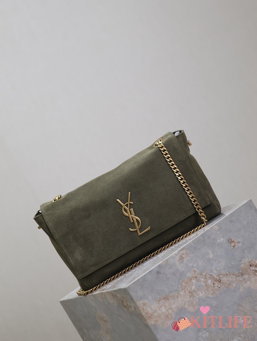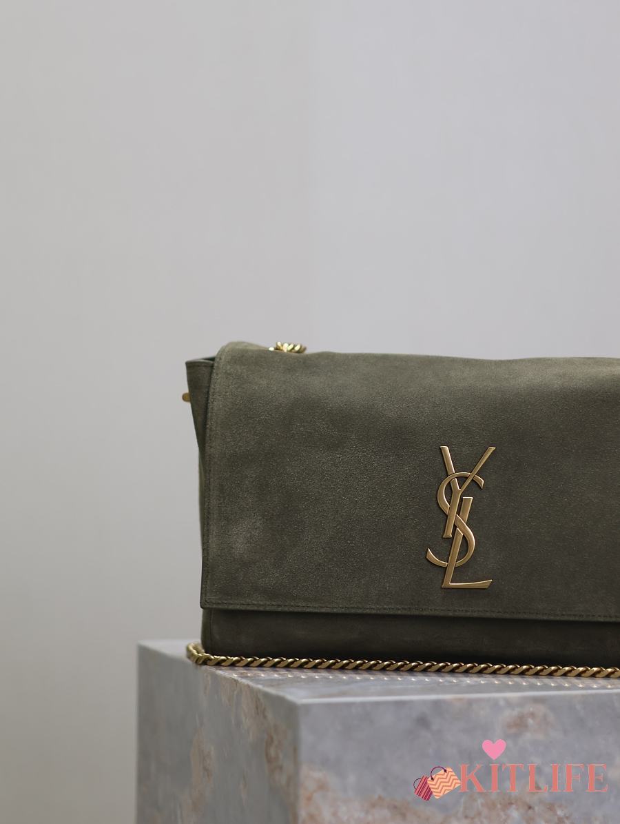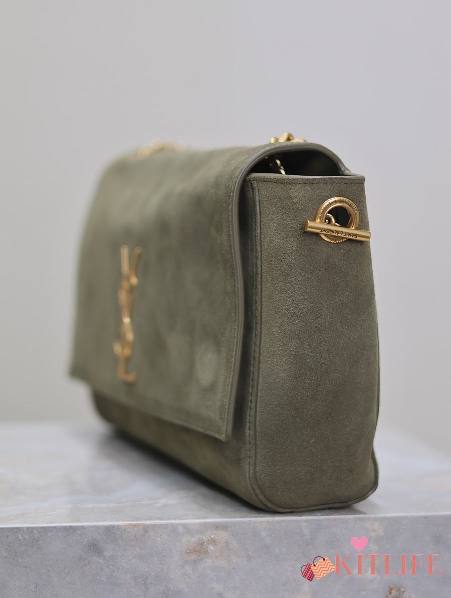 Kitlife Saint Laurent Kate Reversible Khakhi Green Suede & Calfskin Leather Shoulder Bag 553804 28.5x20x6cm