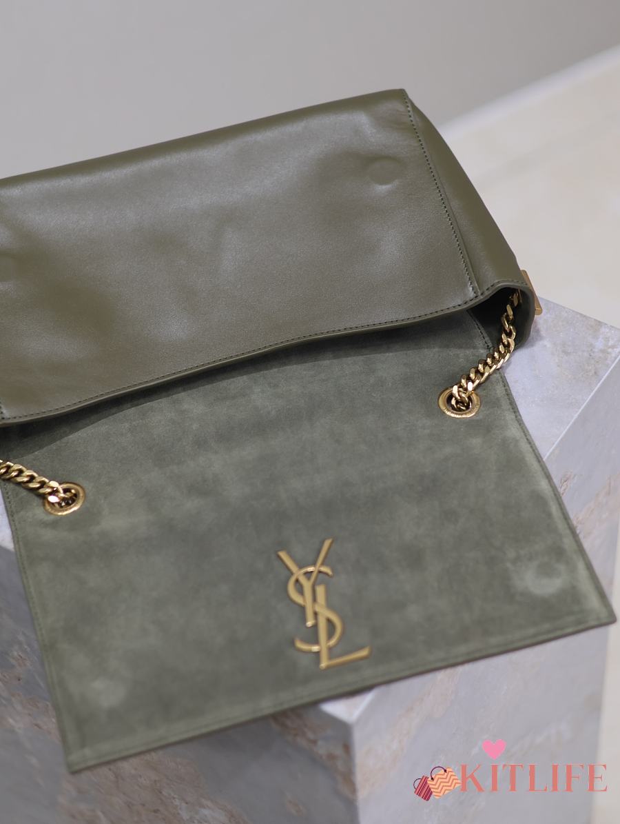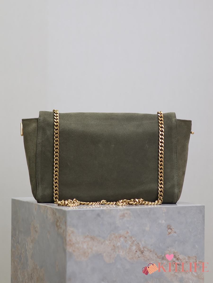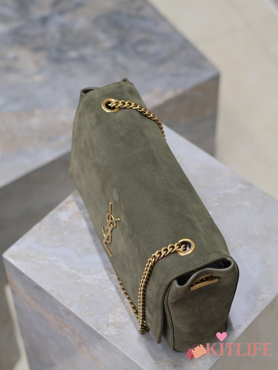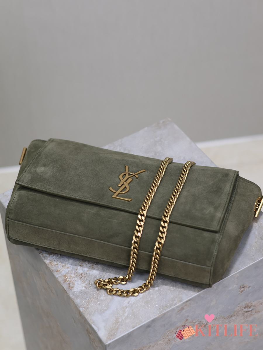 Kitlife Saint Laurent Kate Reversible Khakhi Green Suede & Calfskin Leather Shoulder Bag 553804 28.5x20x6cm