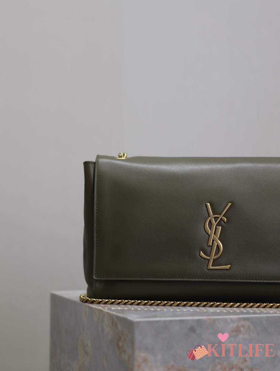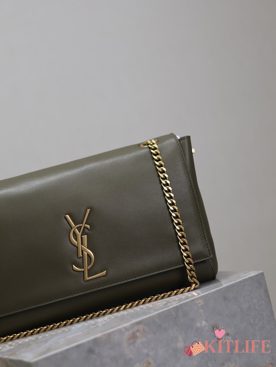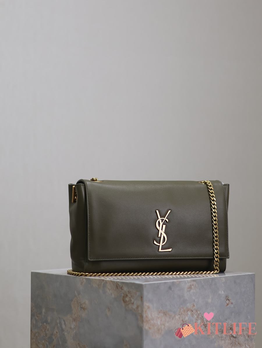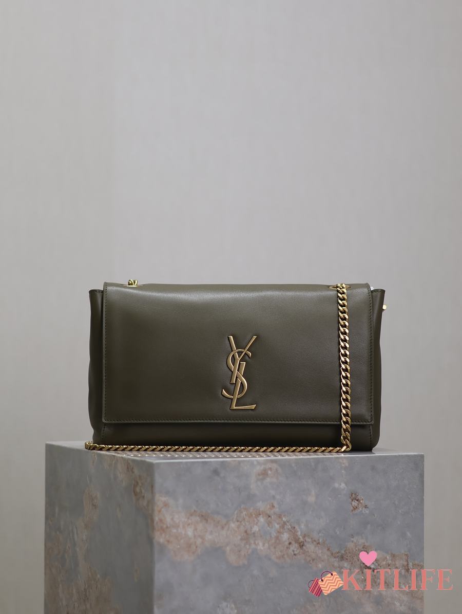 Kitlife Saint Laurent Kate Reversible Khakhi Green Suede & Calfskin Leather Shoulder Bag 553804 28.5x20x6cm
