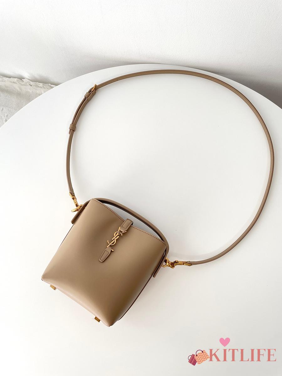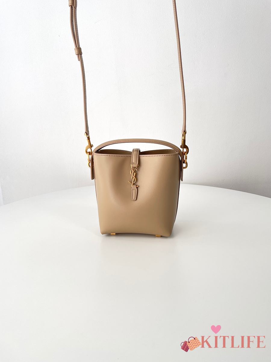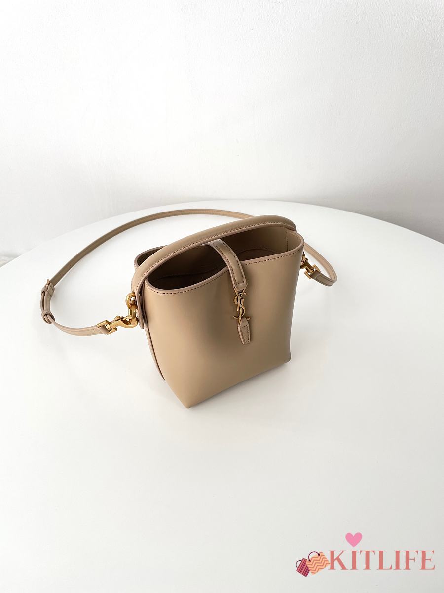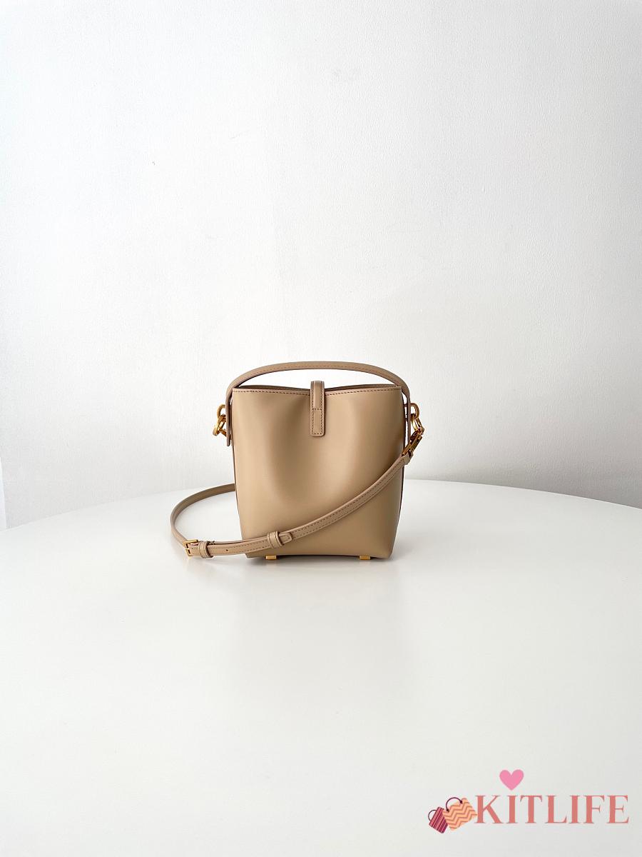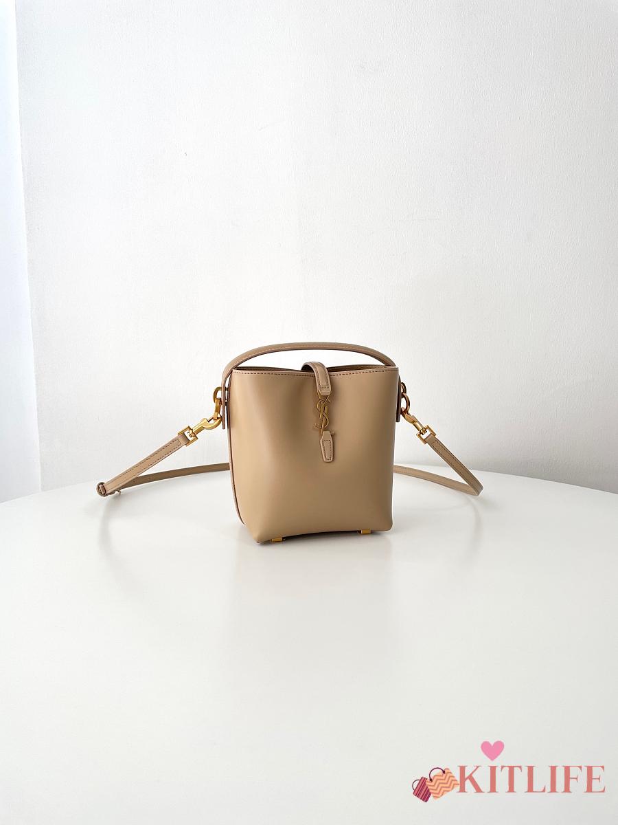 Kitlife Saint Laurent Le 37 Mini Bucket Bag in Beige Shiny Leather 765870 15x13x6cm