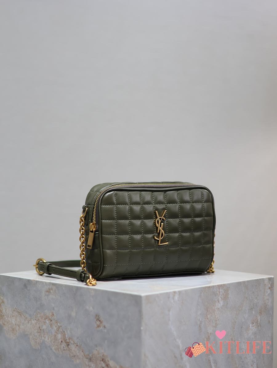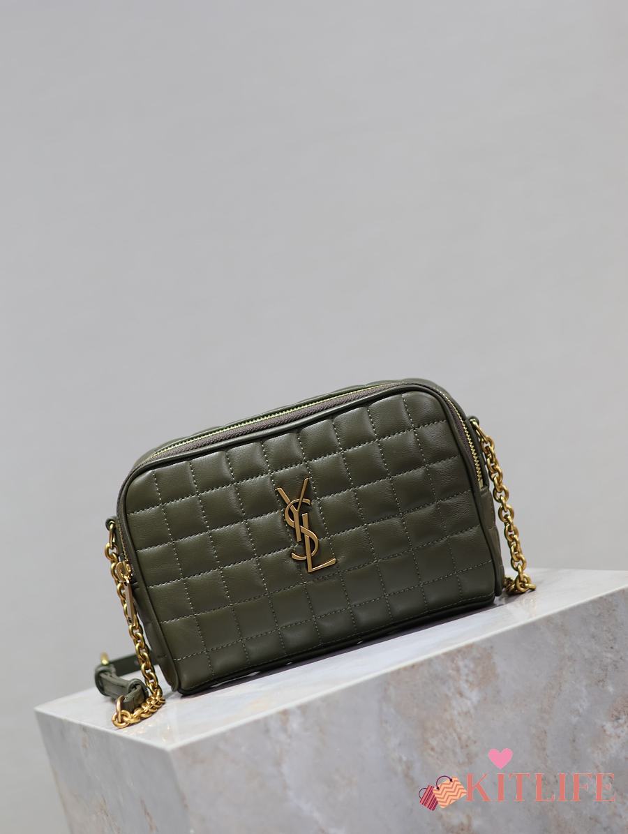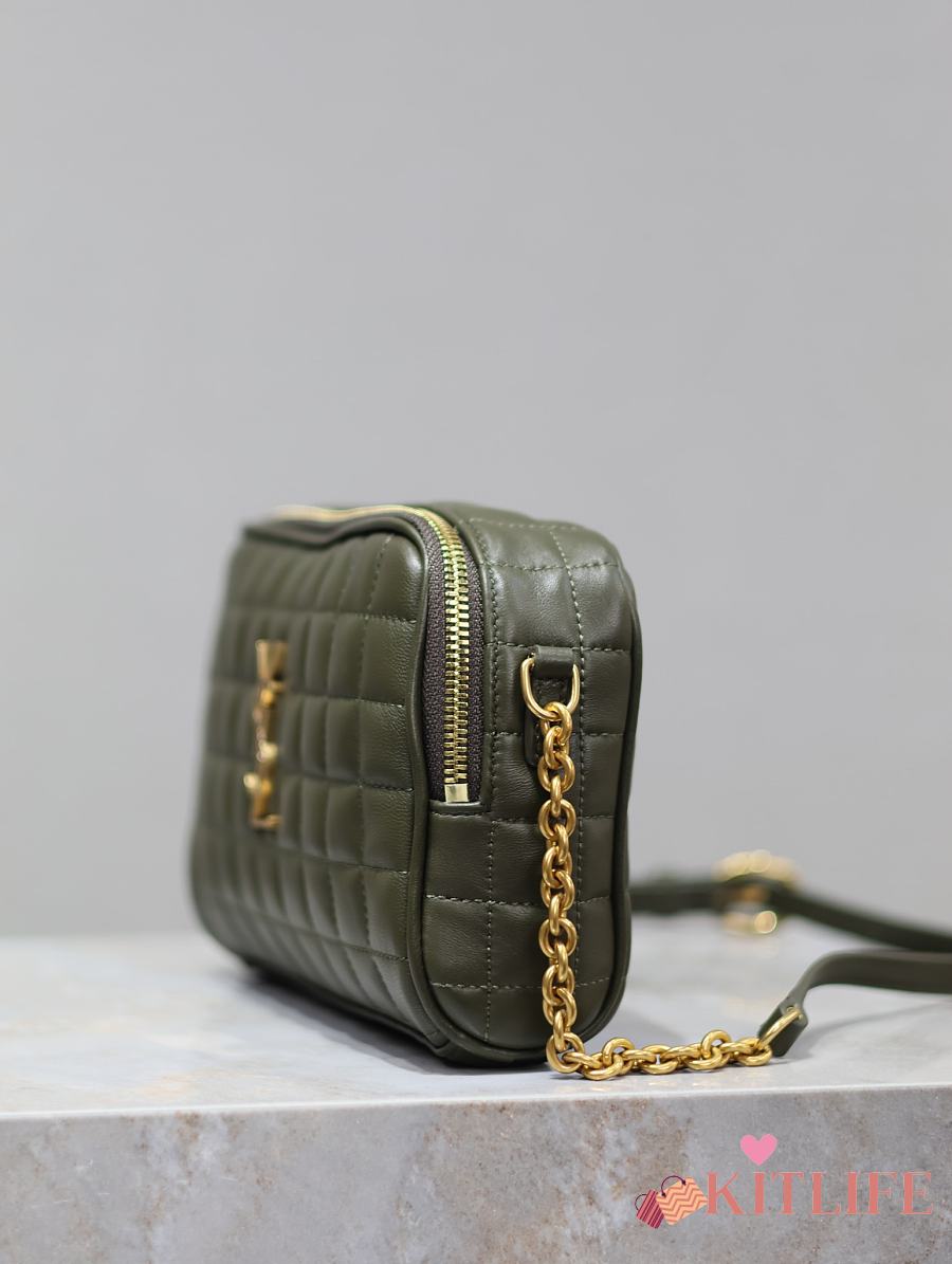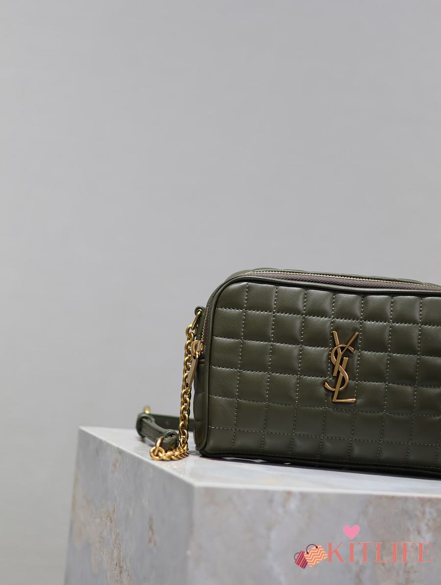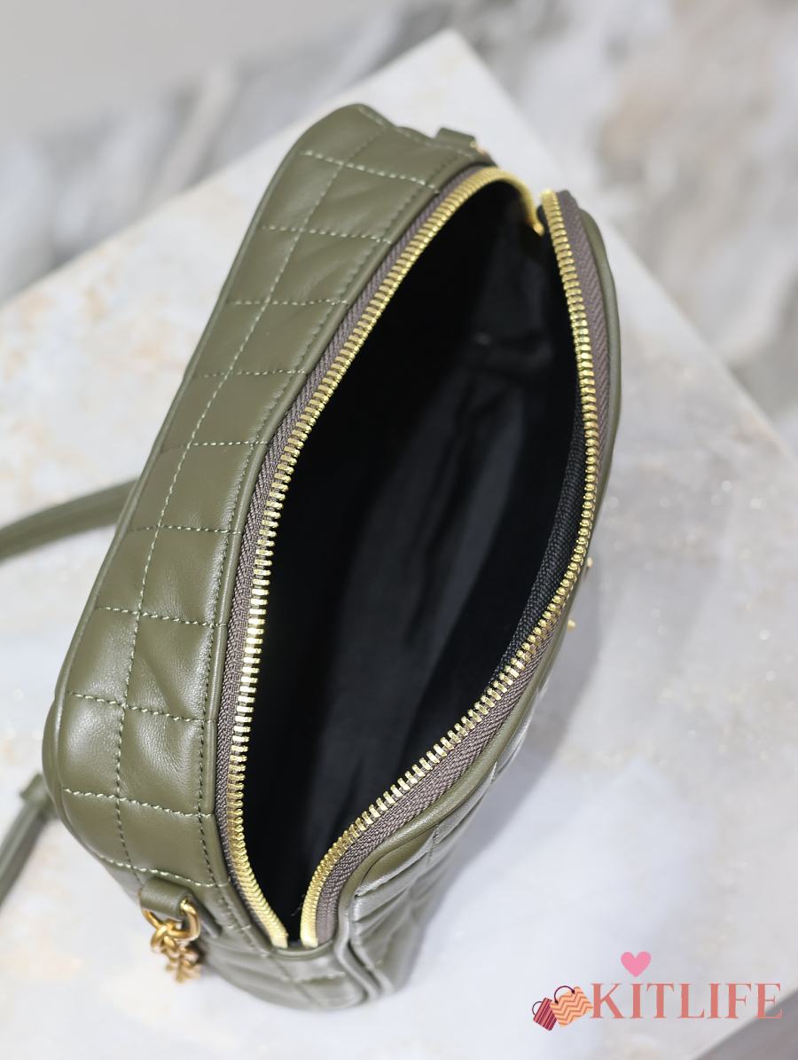 Kitlife Saint Laurent Le Cassandre Matelassé Carré Green Khaki Lambskin Camera Bag 764809 19.5×14×4cm