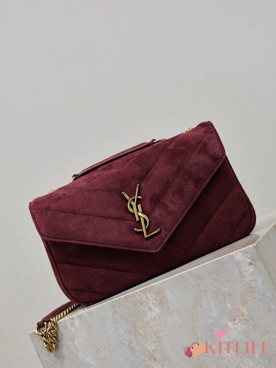Kitlife Saint Laurent Lou Lou Bag Burgundy Suede 801437 24x14x7cm