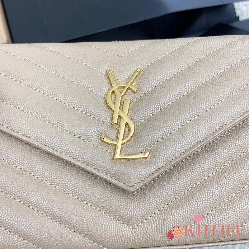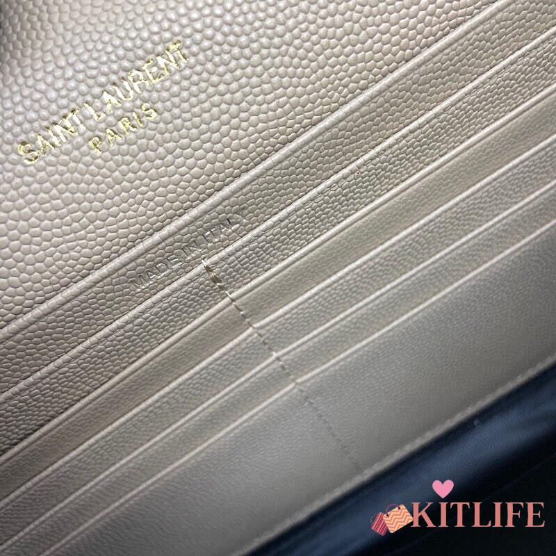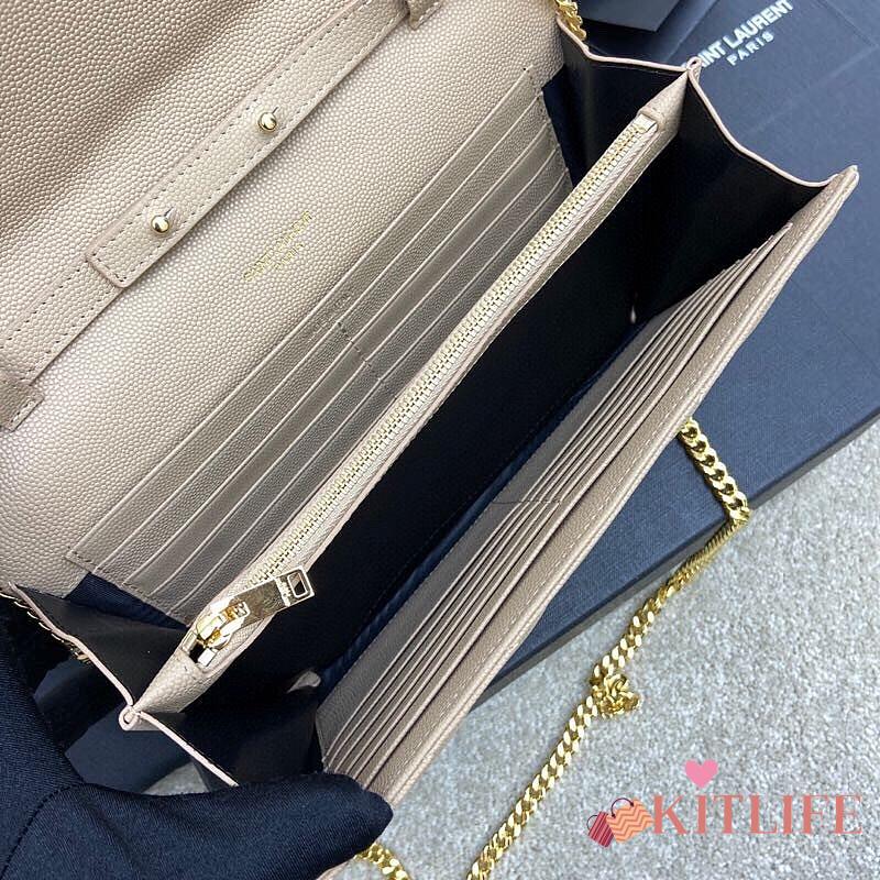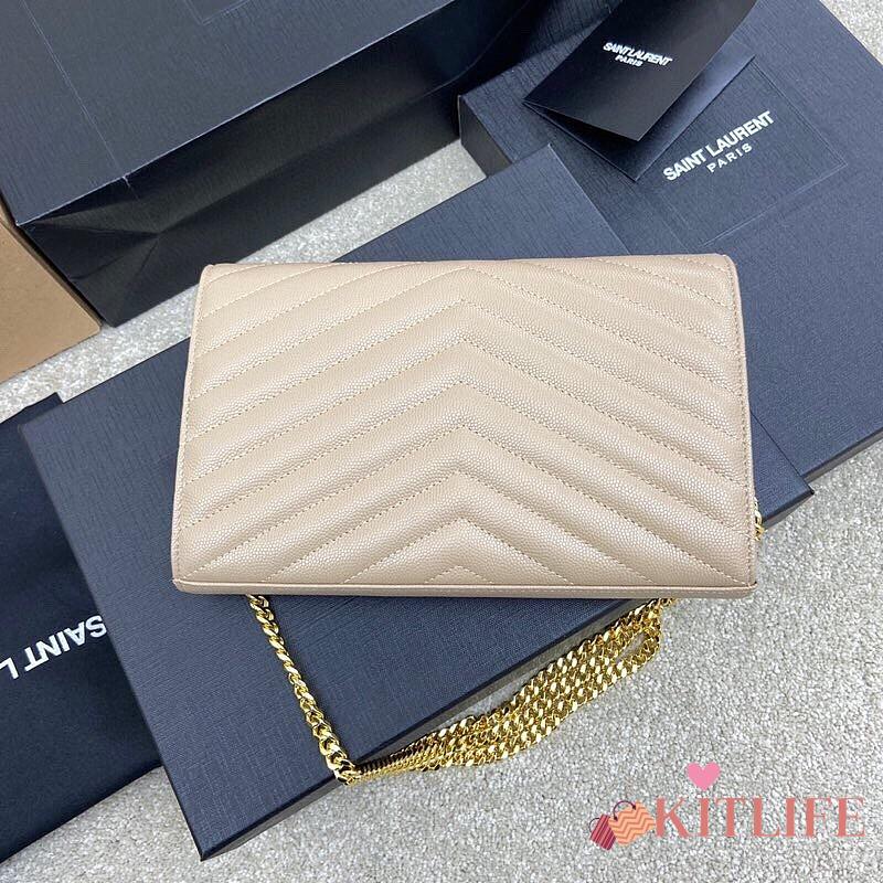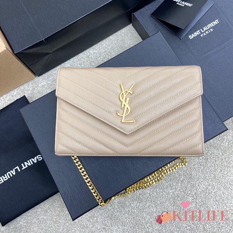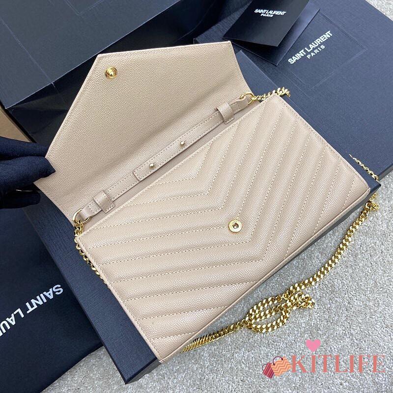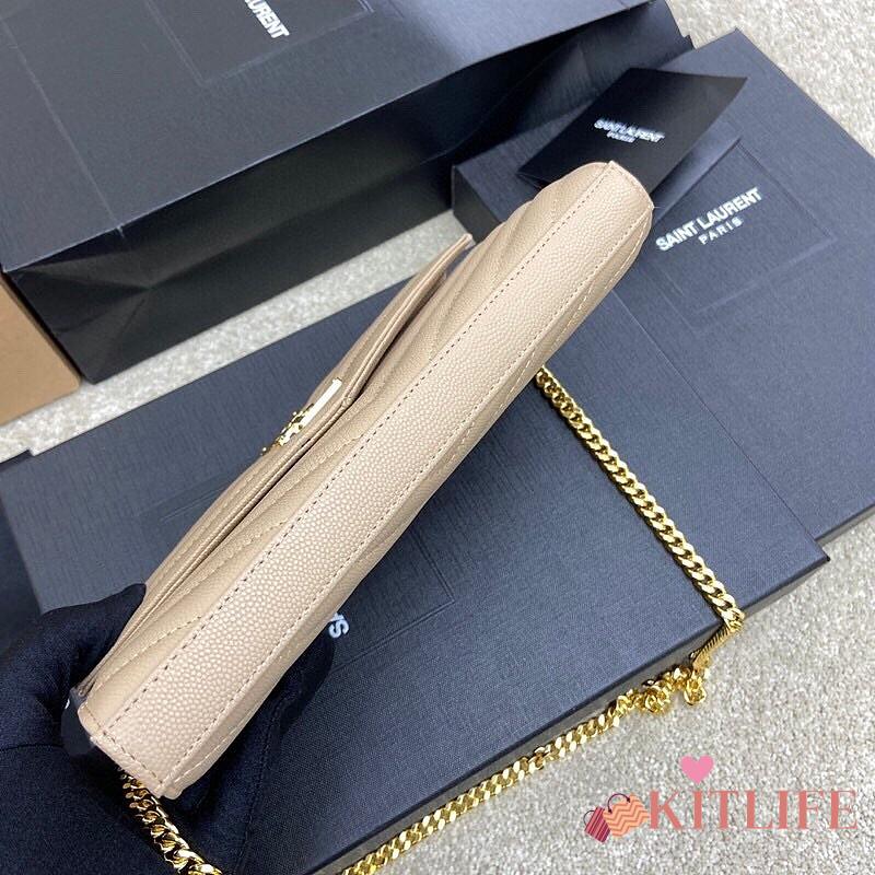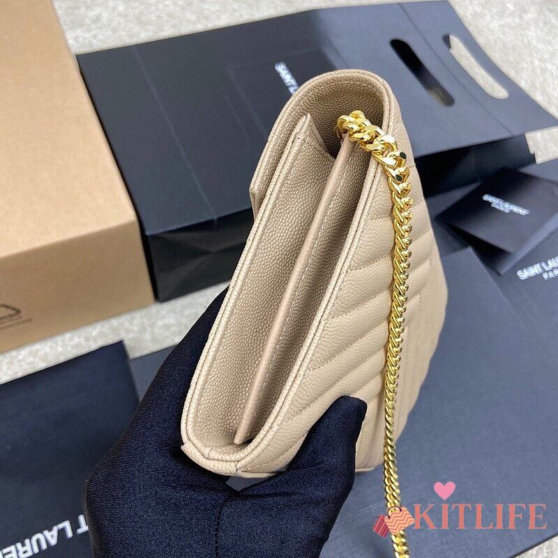 Kitlife Saint Laurent Monogram Envelope Chain Wallet Beige With Gold Hardware 377828 22.5x14x4cm