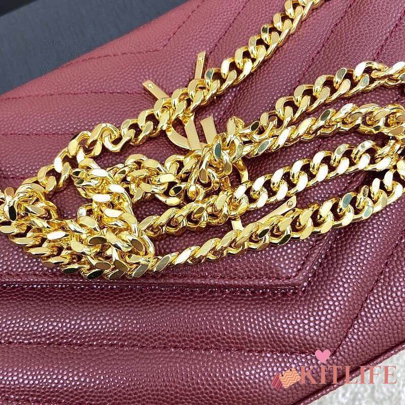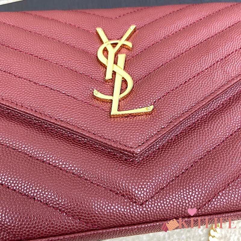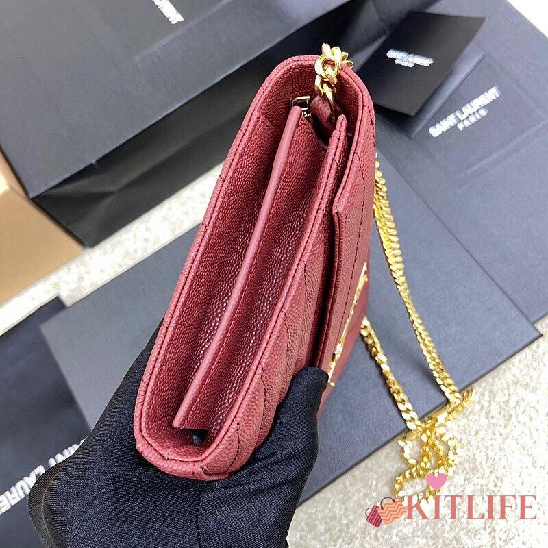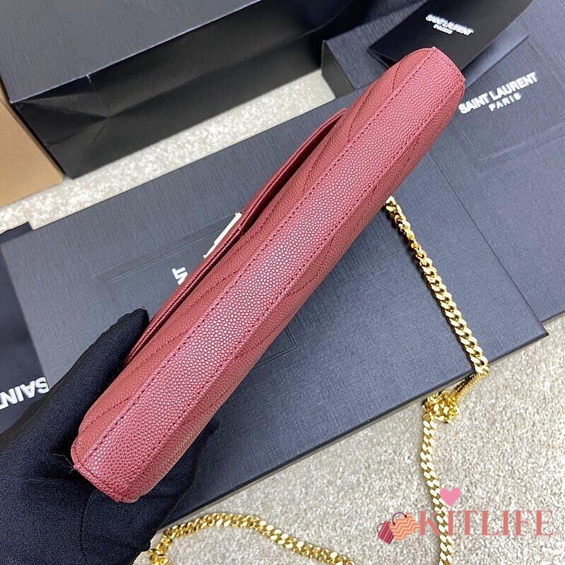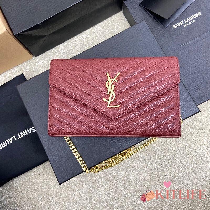 Kitlife Saint Laurent Monogram Envelope Chain Wallet Burgundy With Gold Hardware 377828 22.5x14x4cm