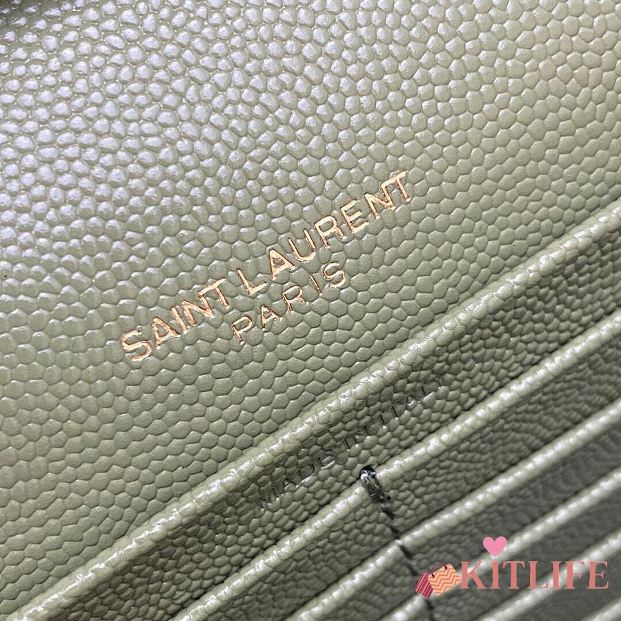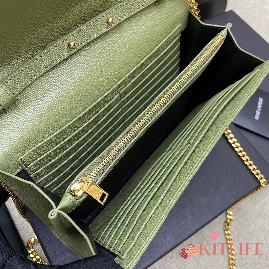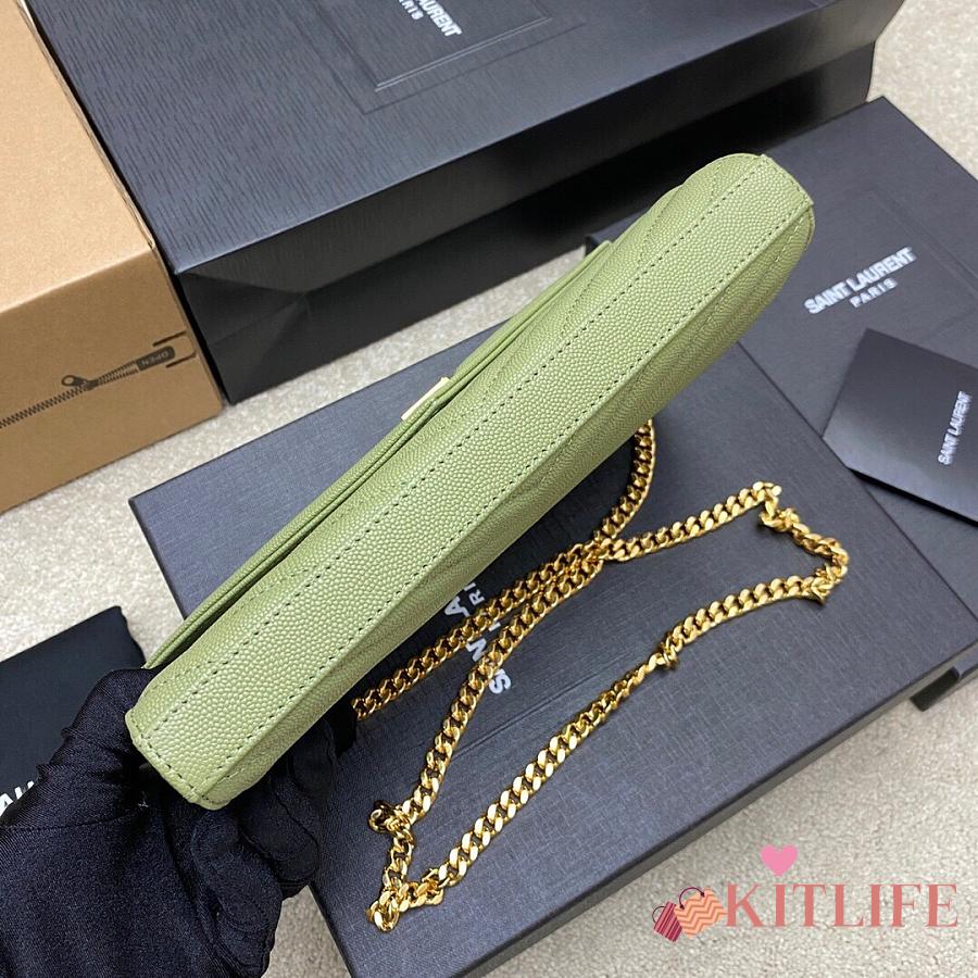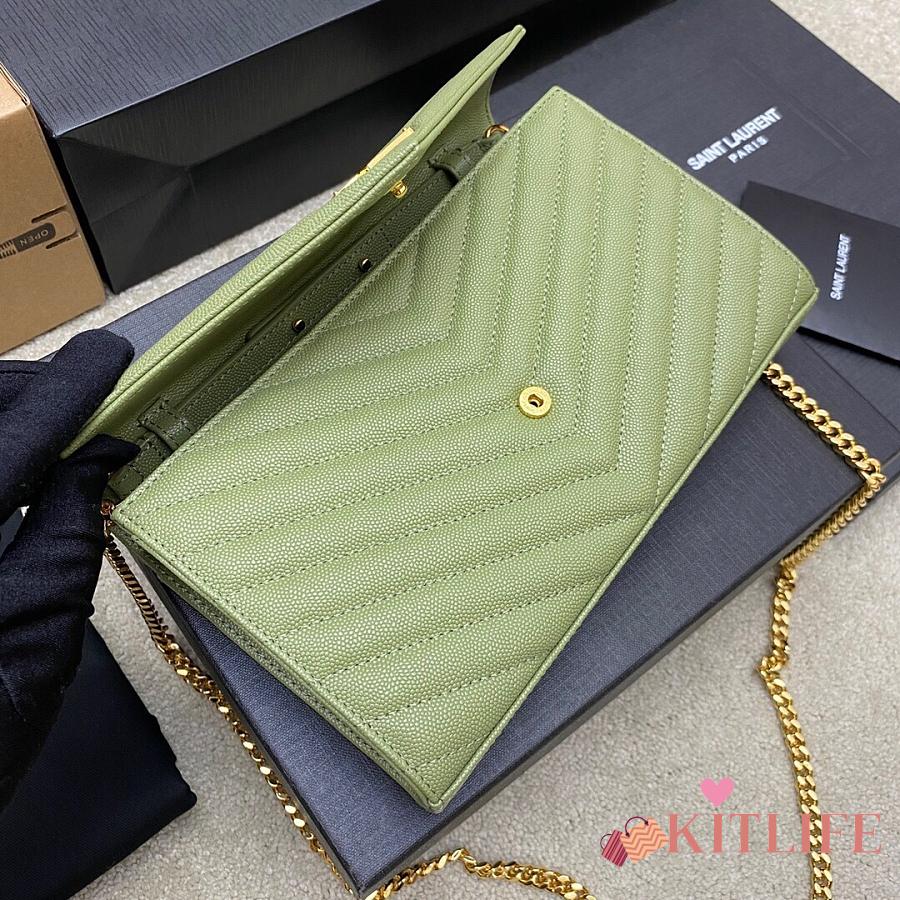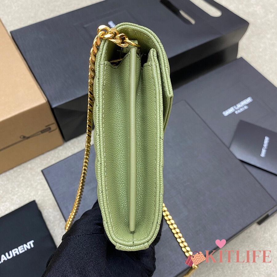 Kitlife Saint Laurent Monogram Envelope Chain Wallet Green With Gold Hardware 377828 22.5x14x4cm