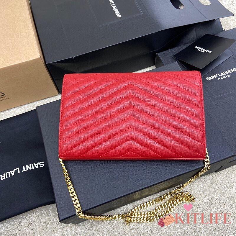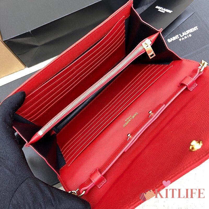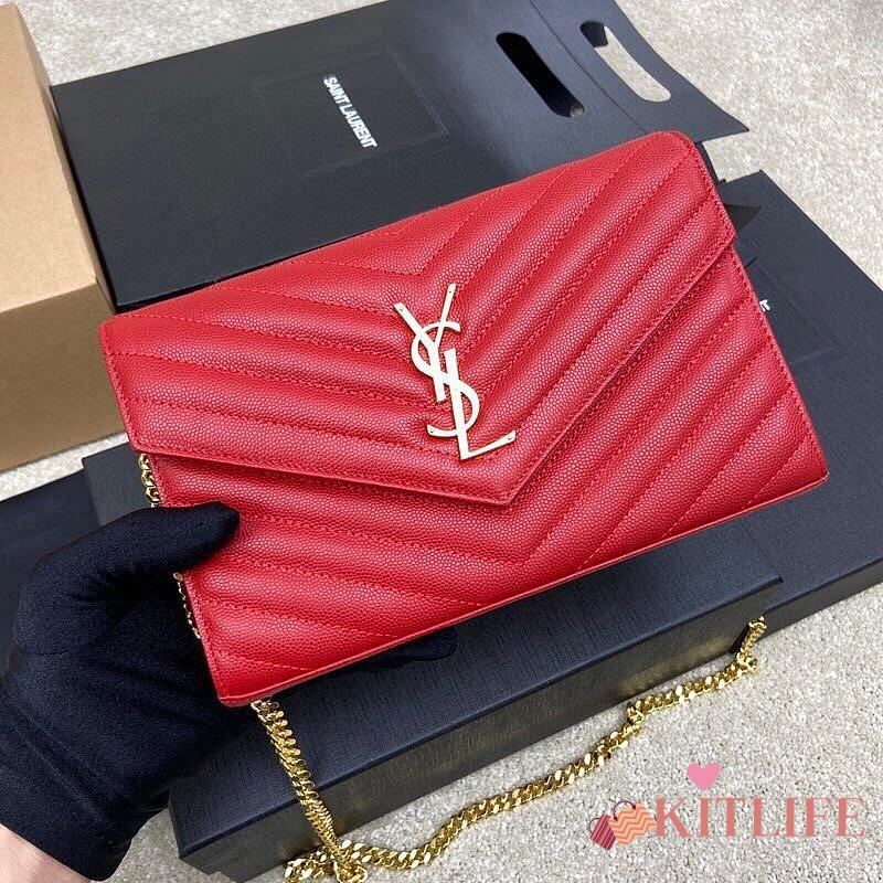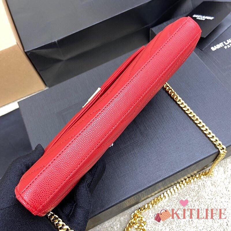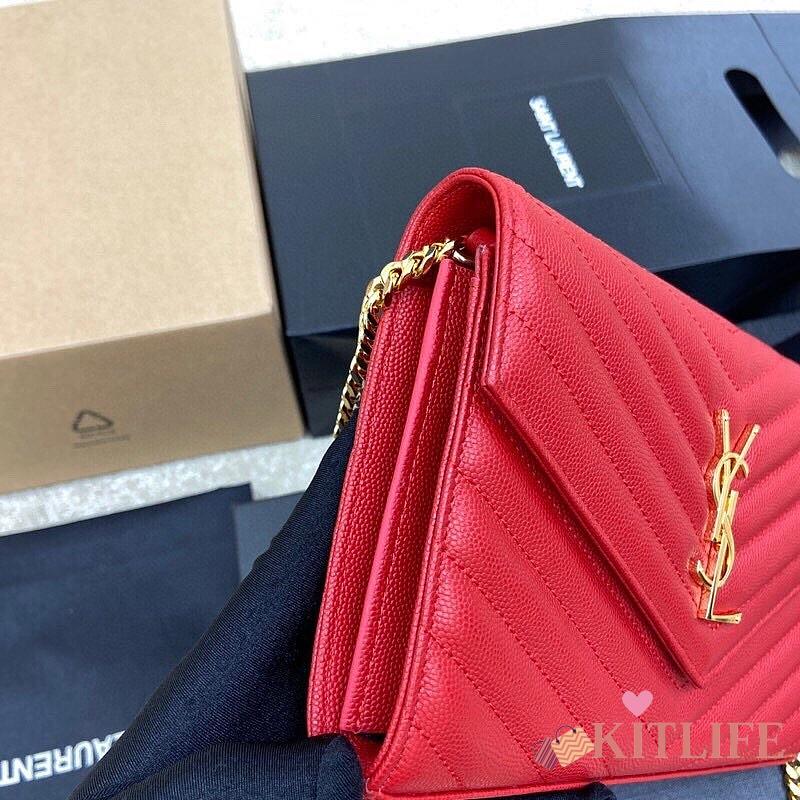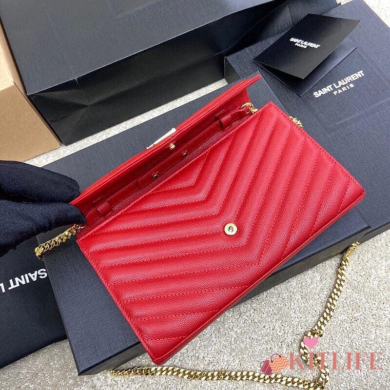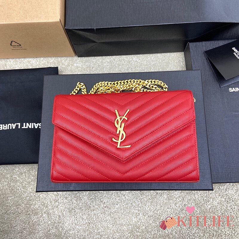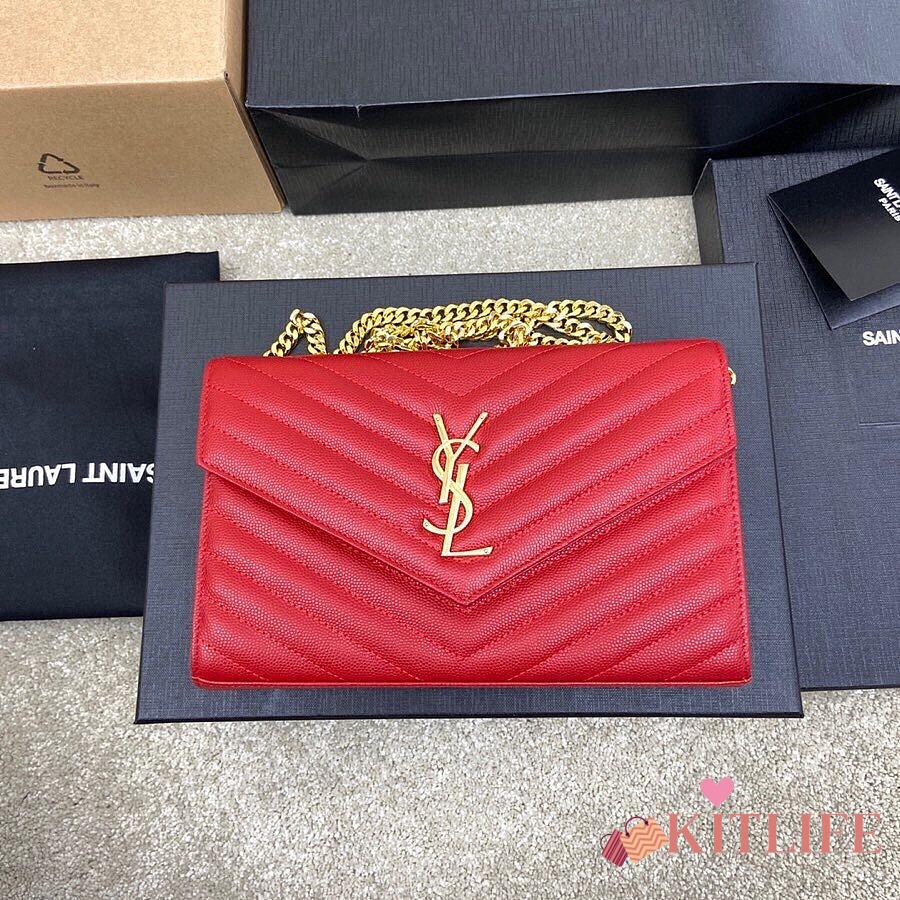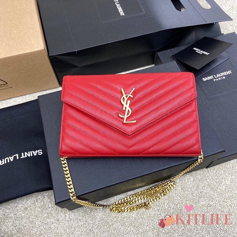 Kitlife Saint Laurent Monogram Envelope Chain Wallet Red With Gold Hardware 377828 22.5x14x4cm