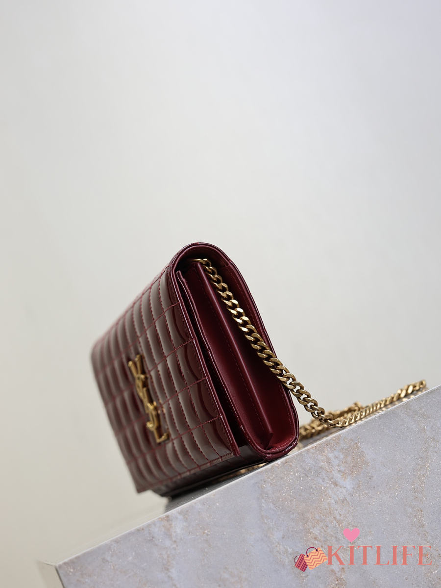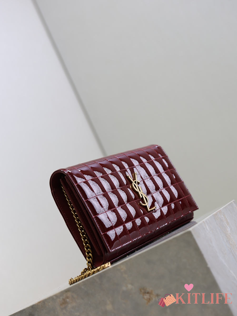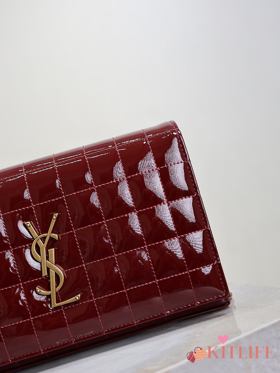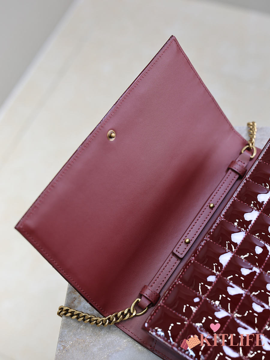 Kitlife Saint Laurent Quilted Red Patent Leather Monogram Cassandre Chain Bag 743364 23x14x3cm