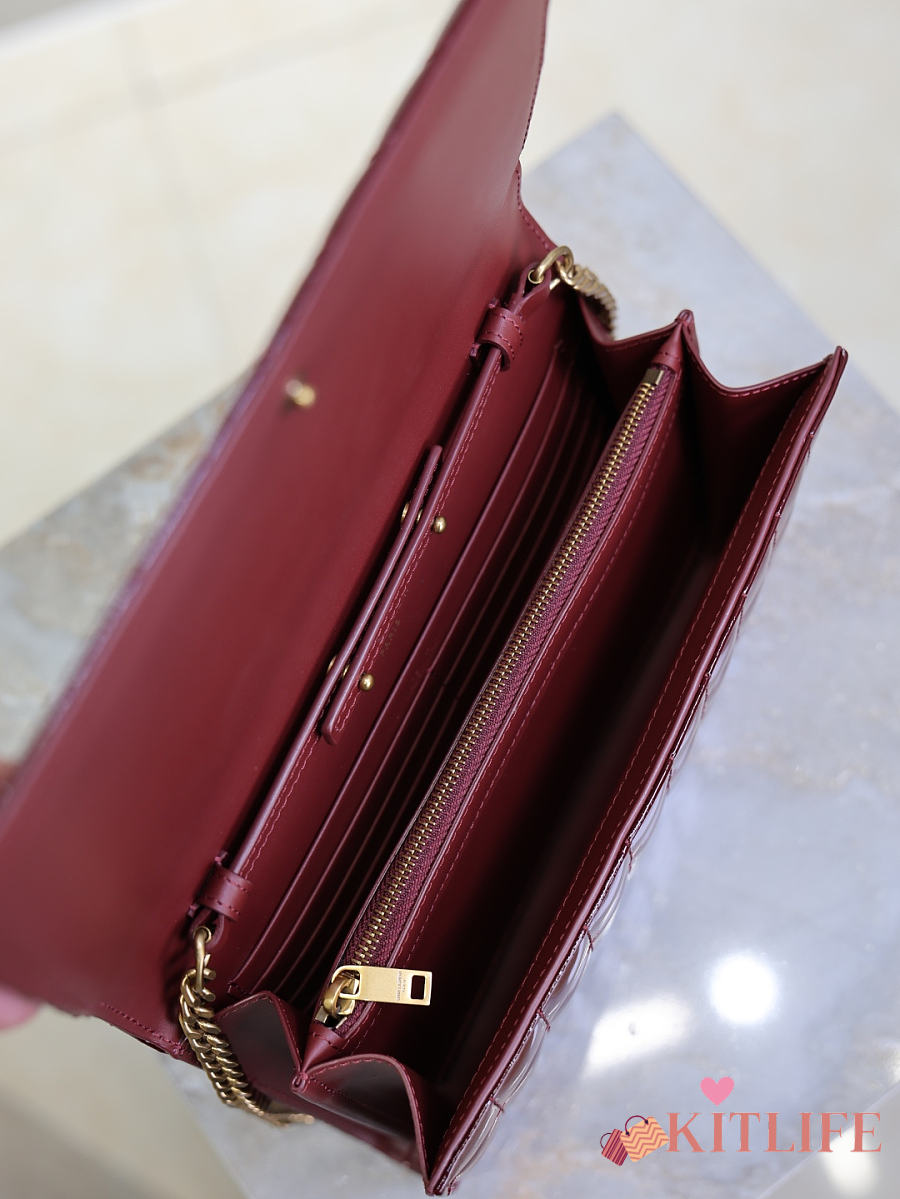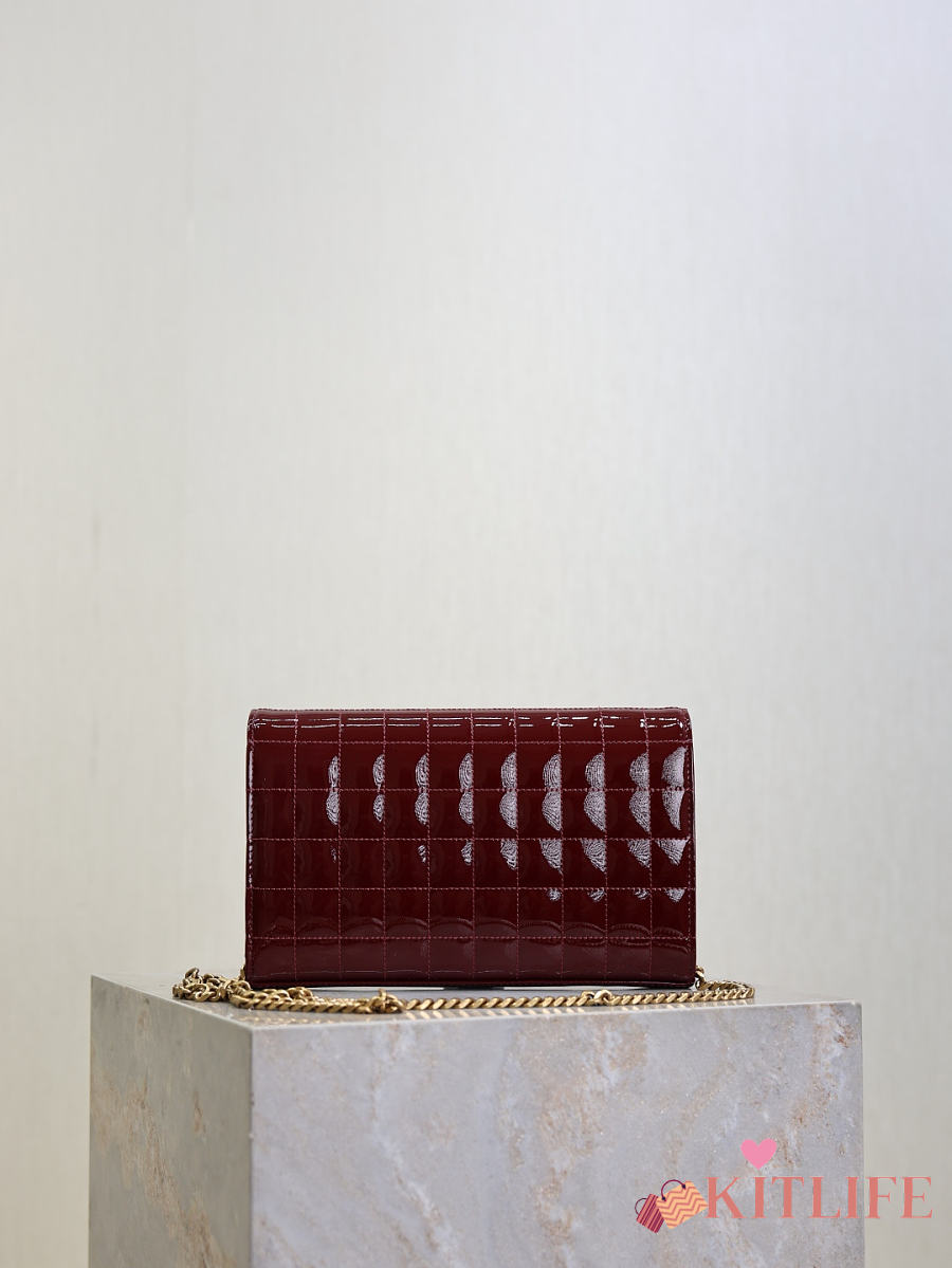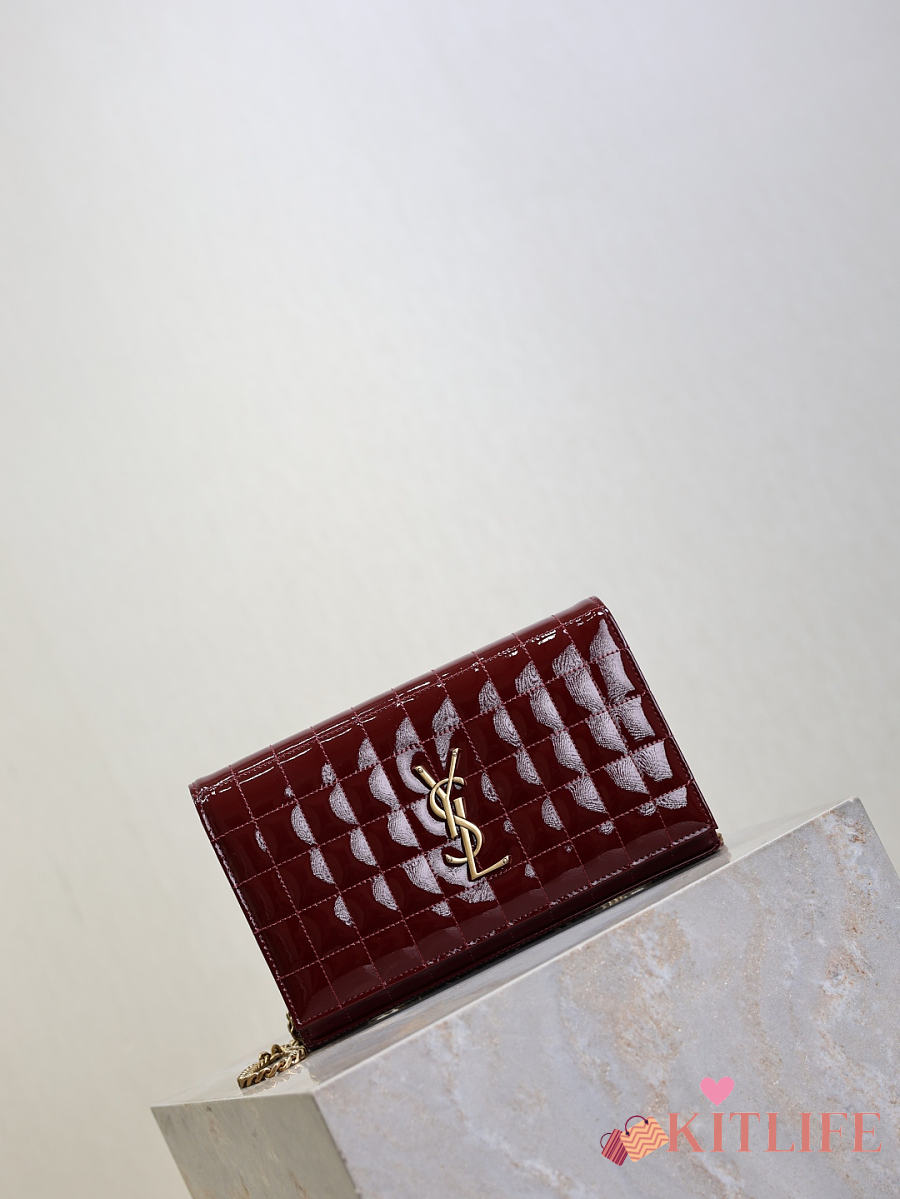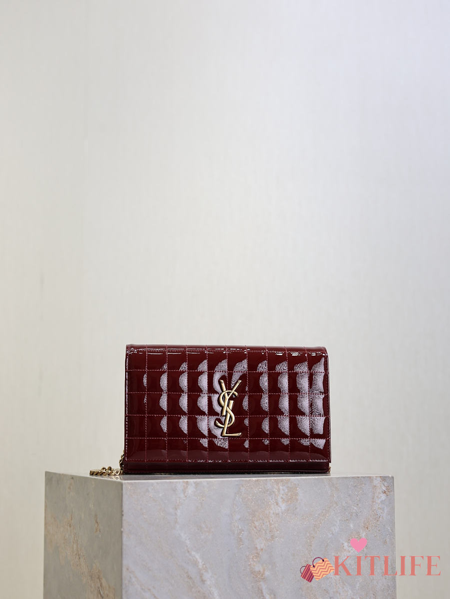 Kitlife Saint Laurent Quilted Red Patent Leather Monogram Cassandre Chain Bag 743364 23x14x3cm