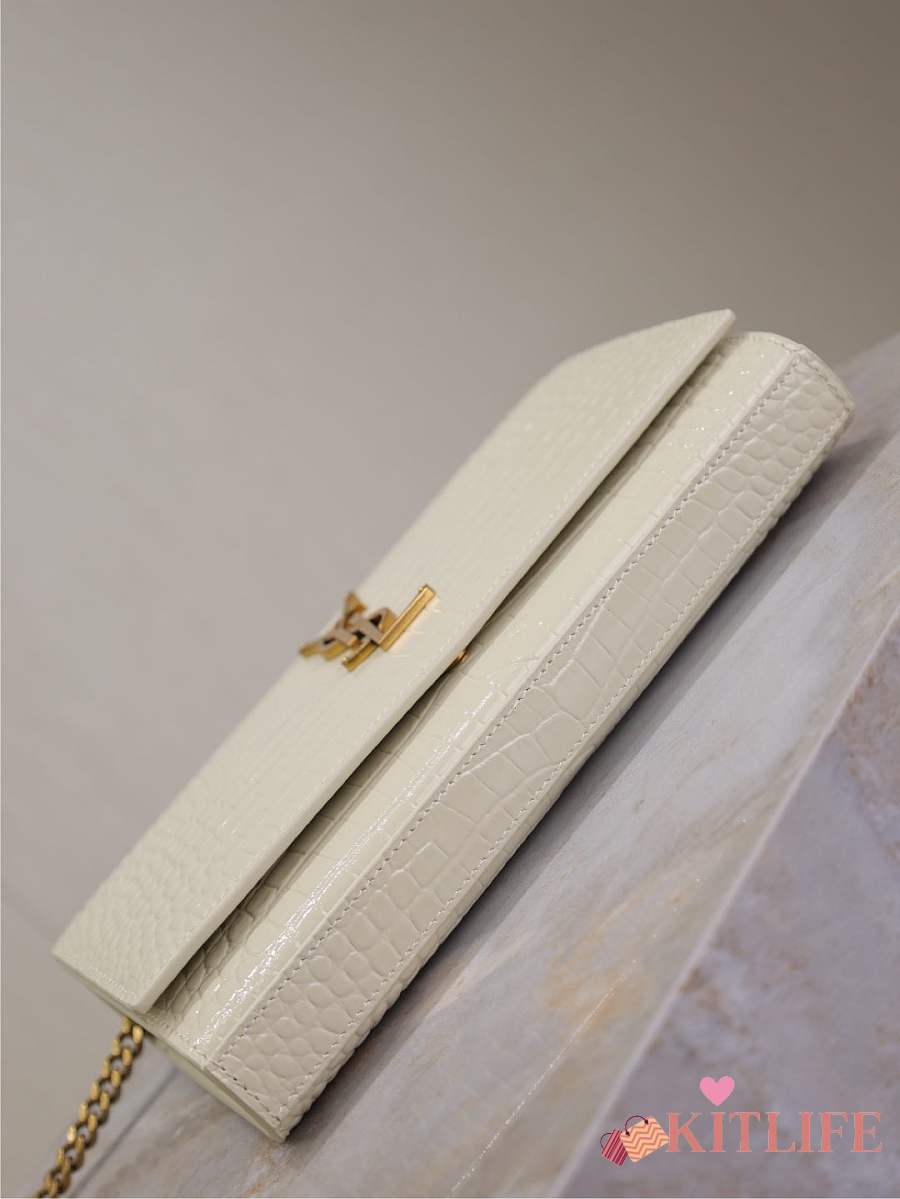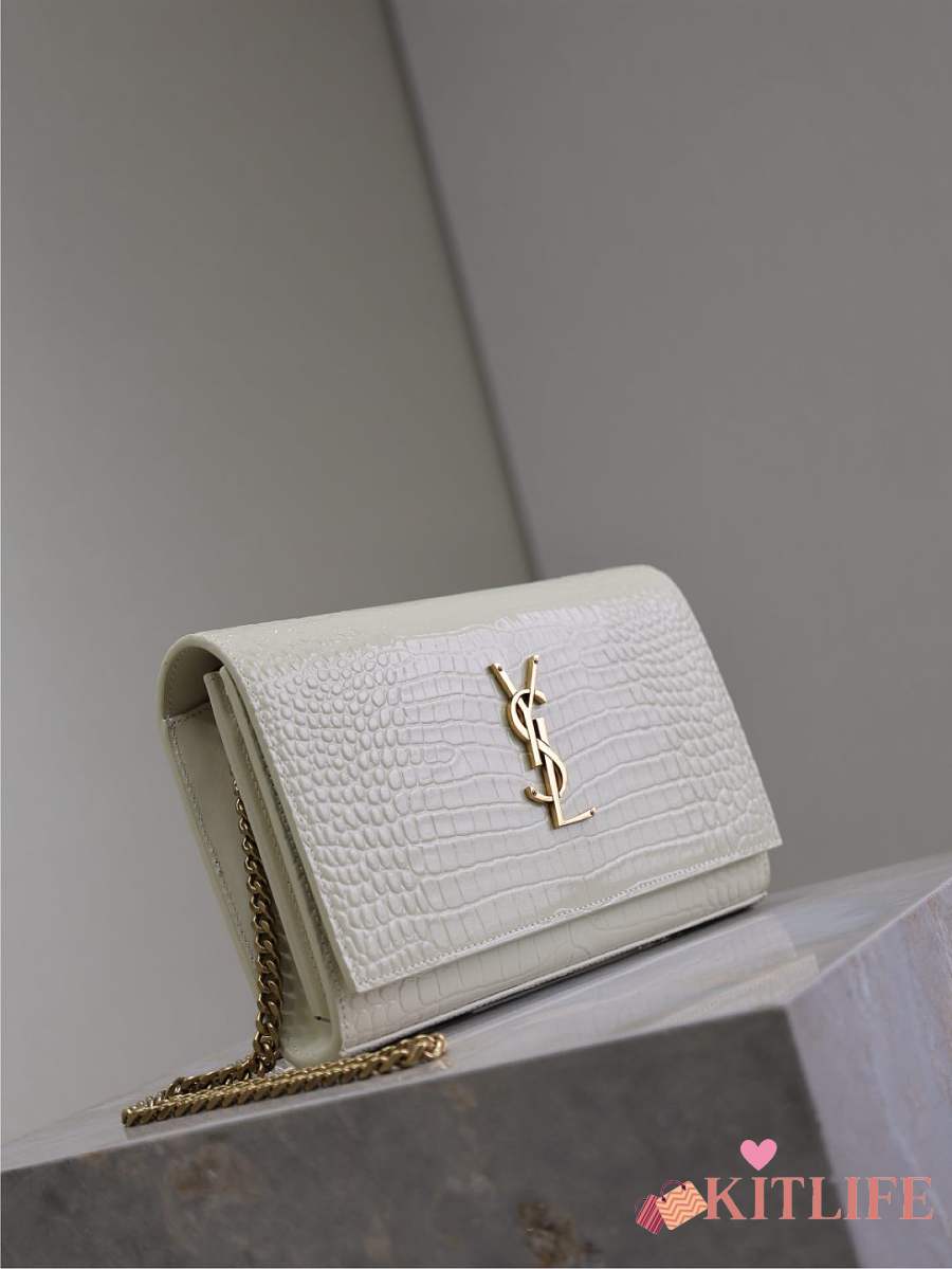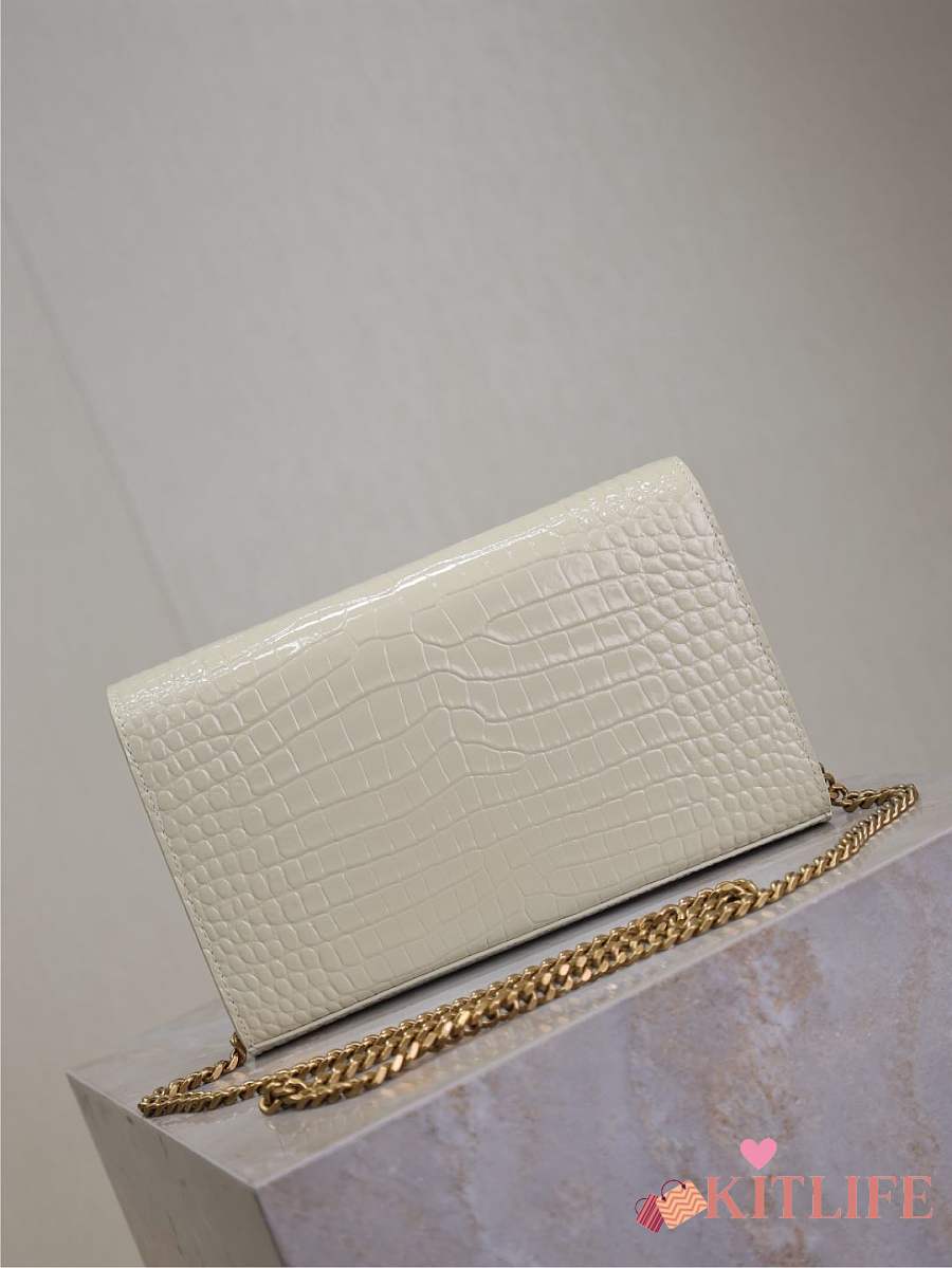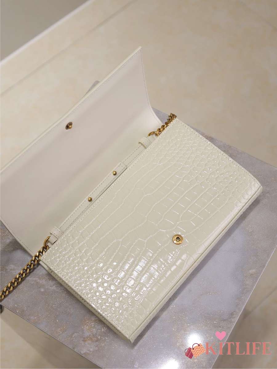Kitlife Saint Laurent Quilted White Crocodile-embossed Leather Cassandre Chain Bag 743364 23x14x3cm