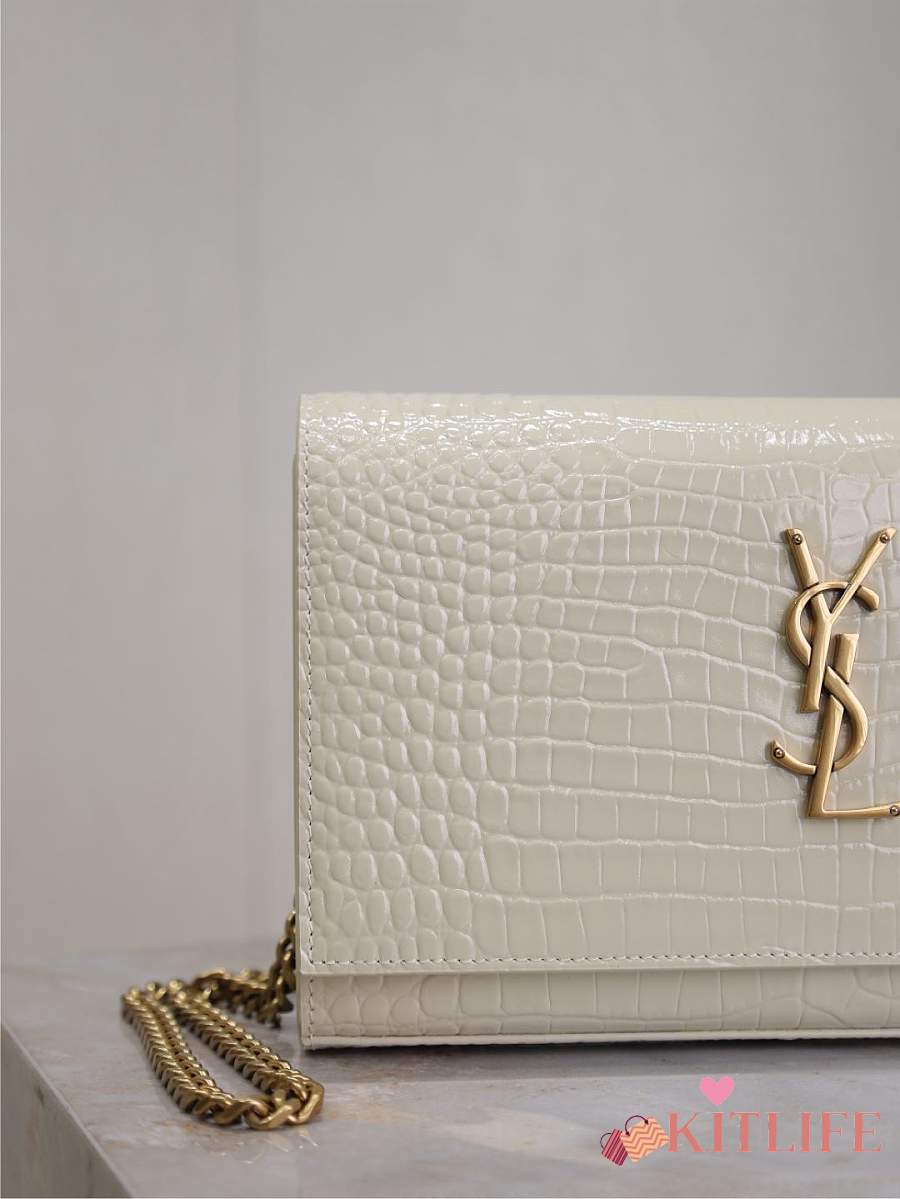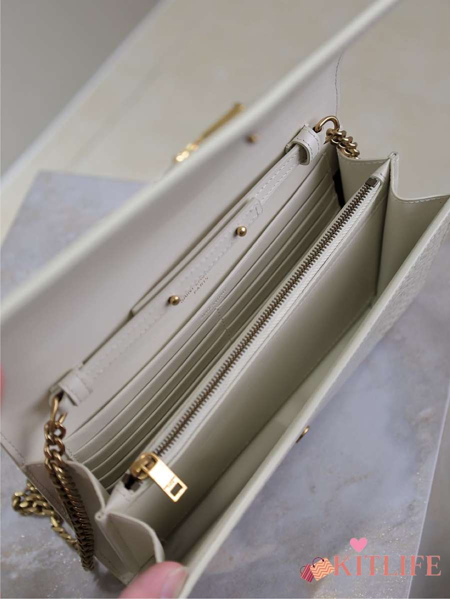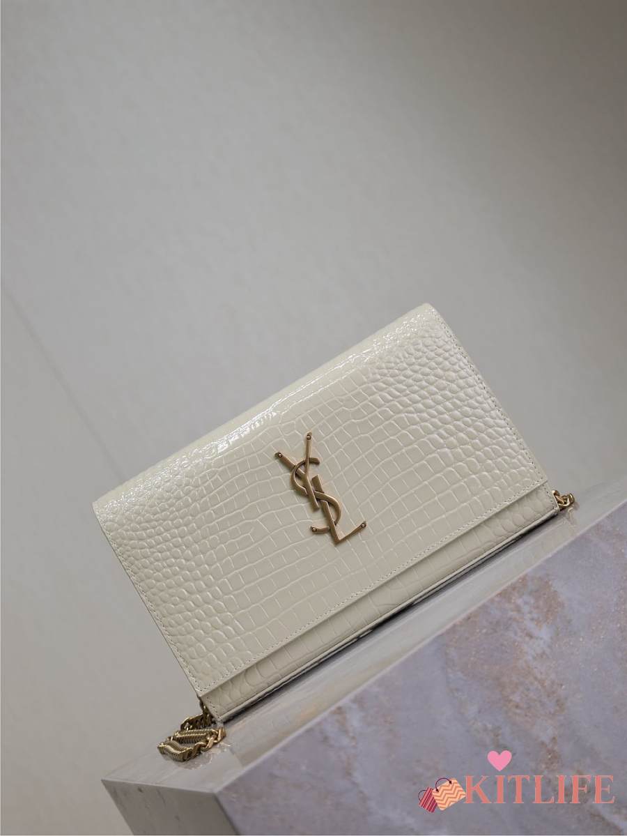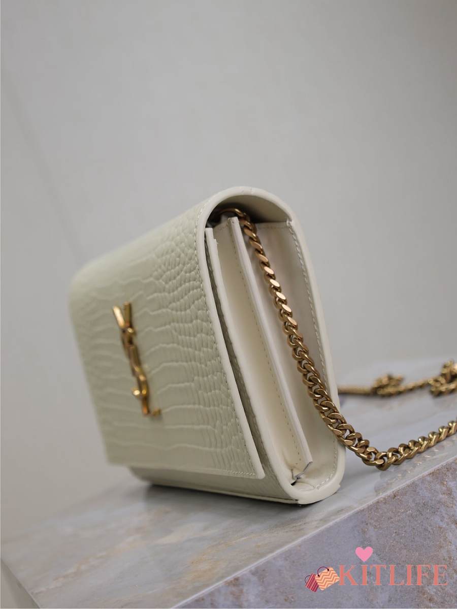 Kitlife Saint Laurent Quilted White Crocodile-embossed Leather Cassandre Chain Bag 743364 23x14x3cm