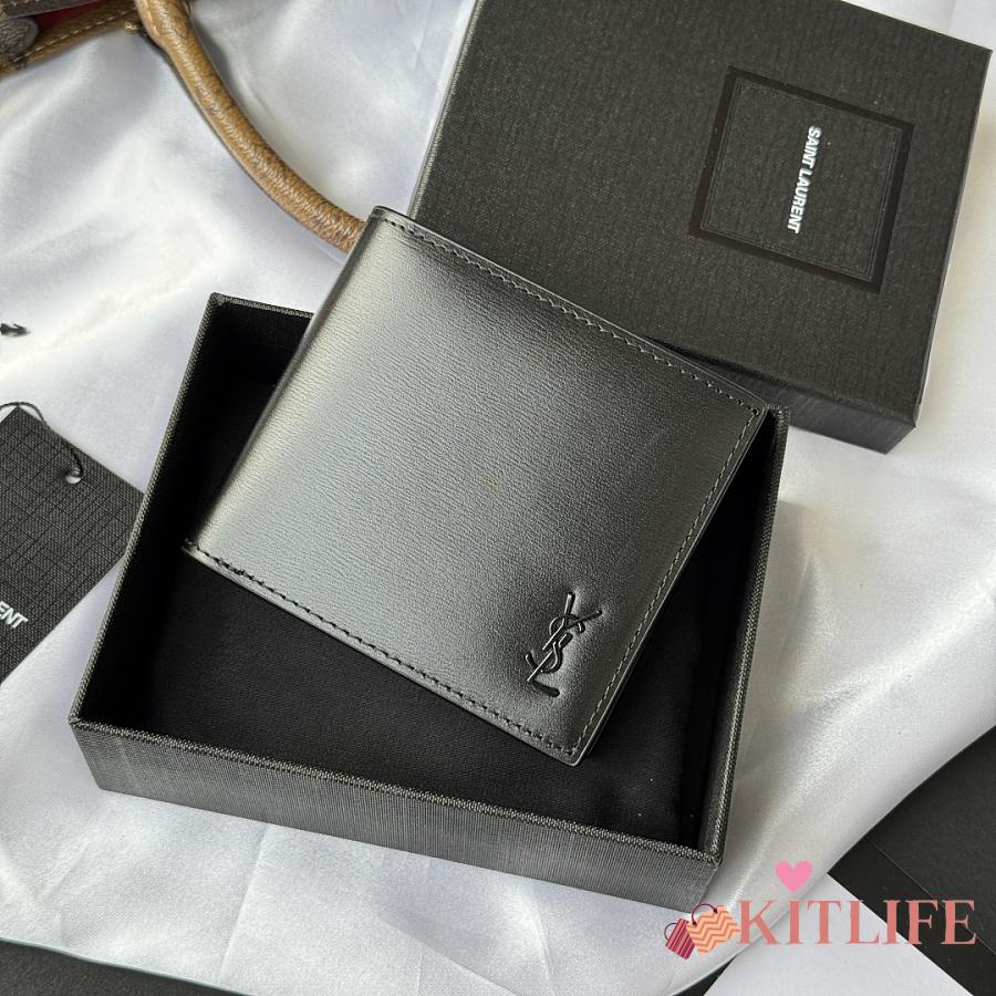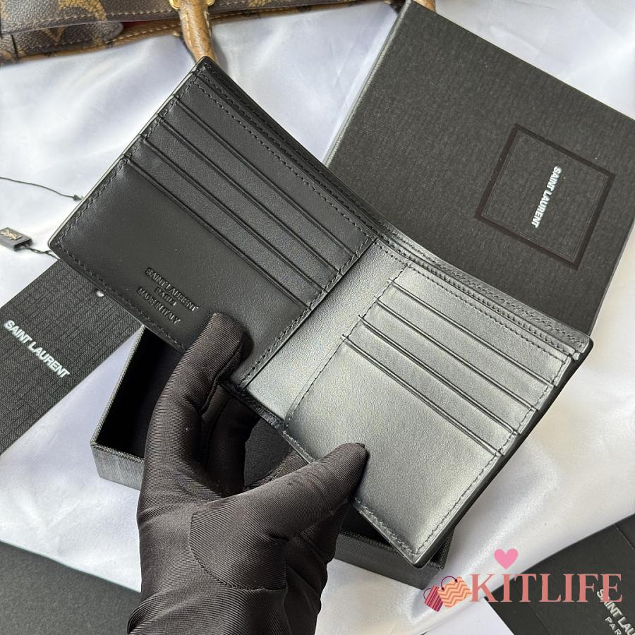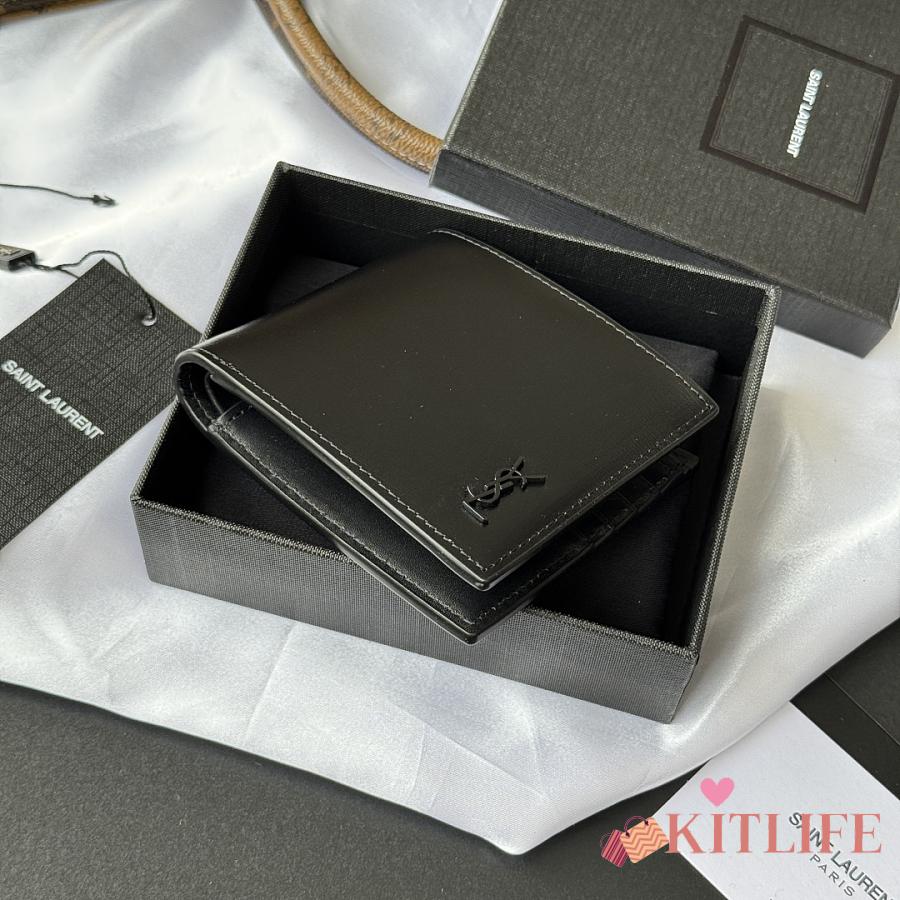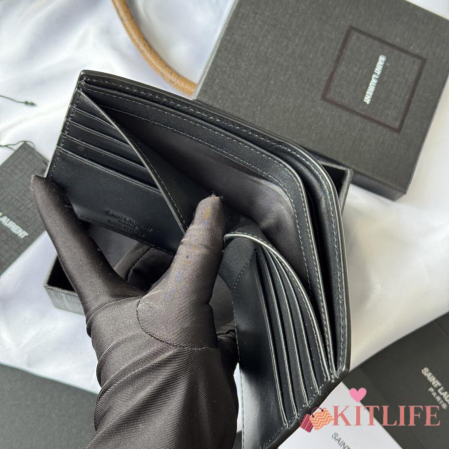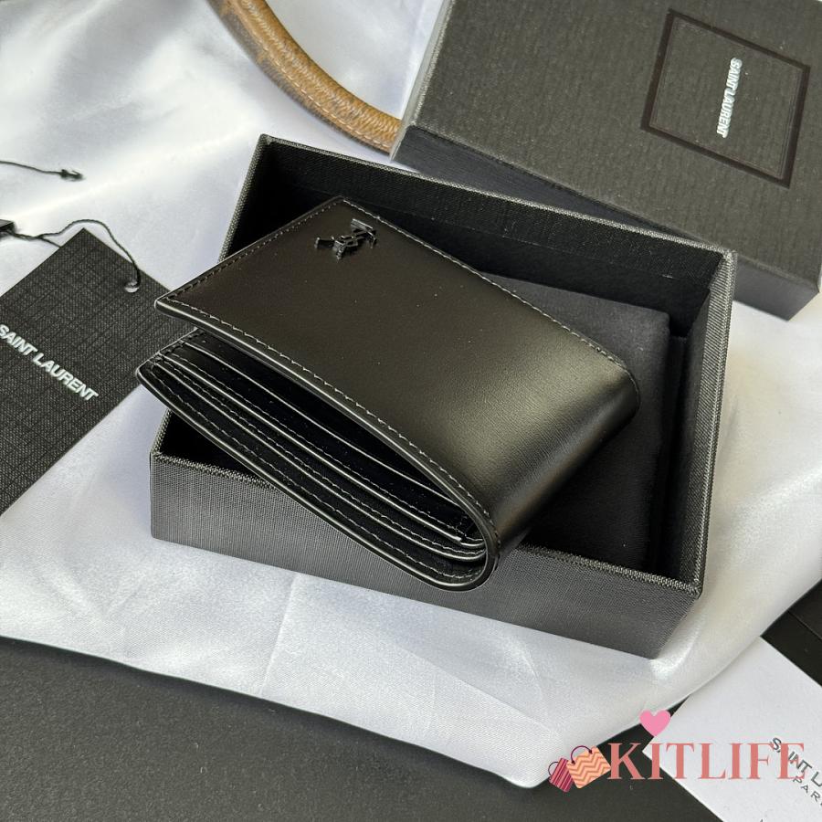 Kitlife Saint Laurent Tiny Cassandre Wallet In Black Shiny Leather Black Hardware 607727 11x9.5x2.5cm