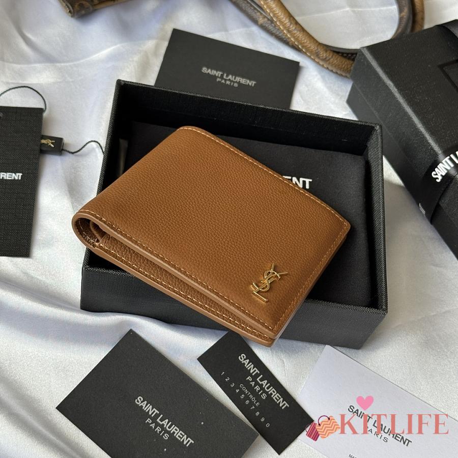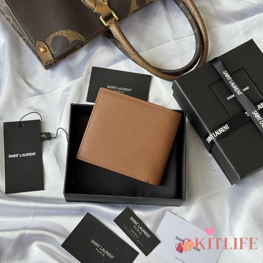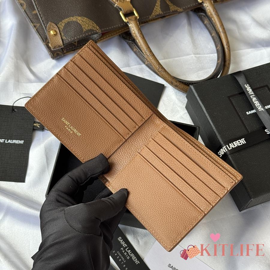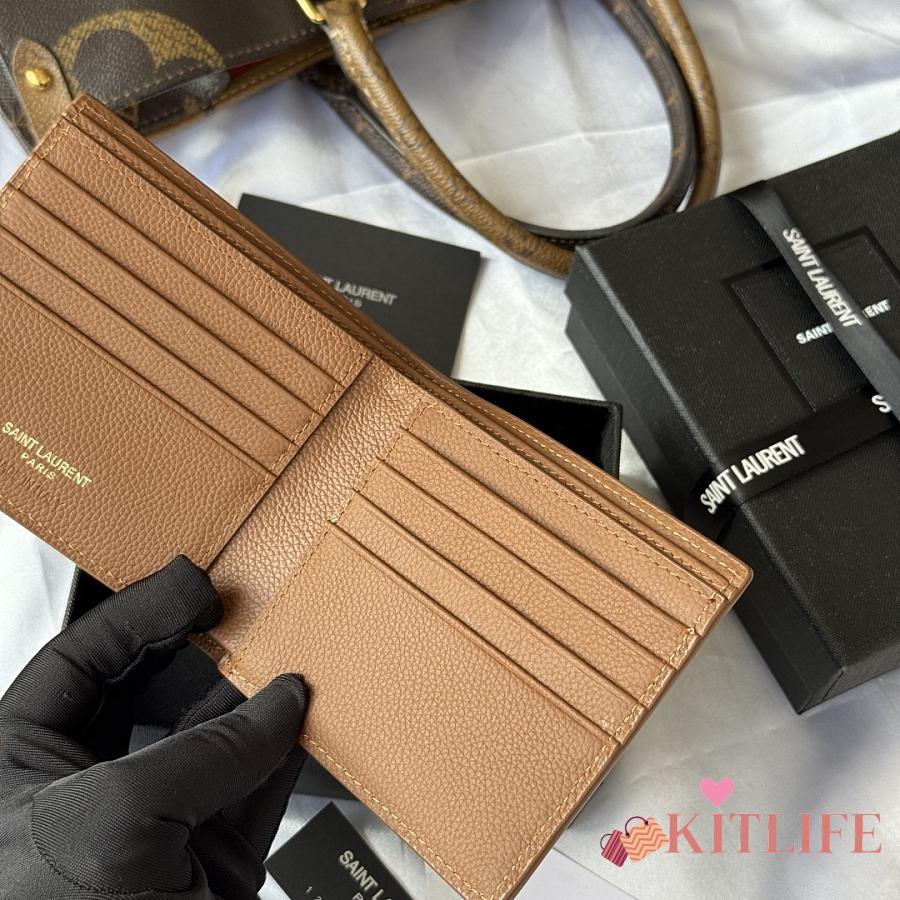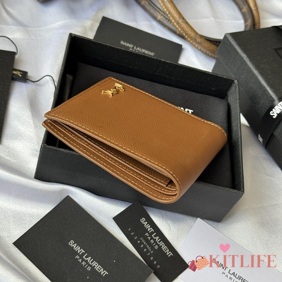 Kitlife Saint Laurent Tiny Cassandre Wallet In Brown Grained Leather Gold Hardware 607727 11x9.5x2.5cm
