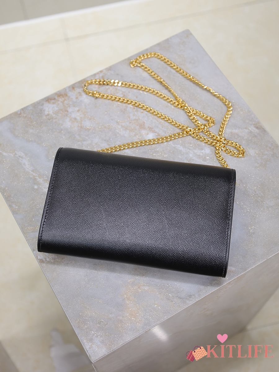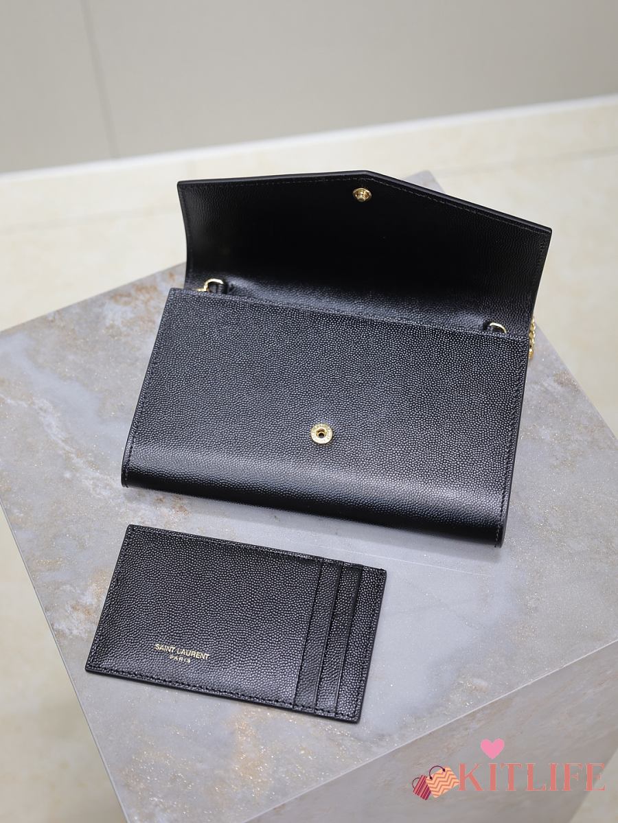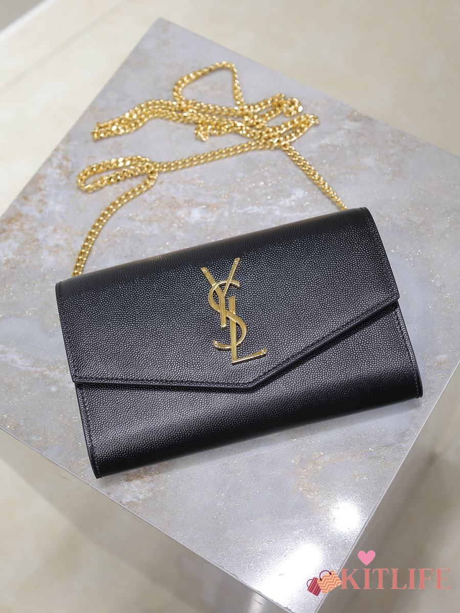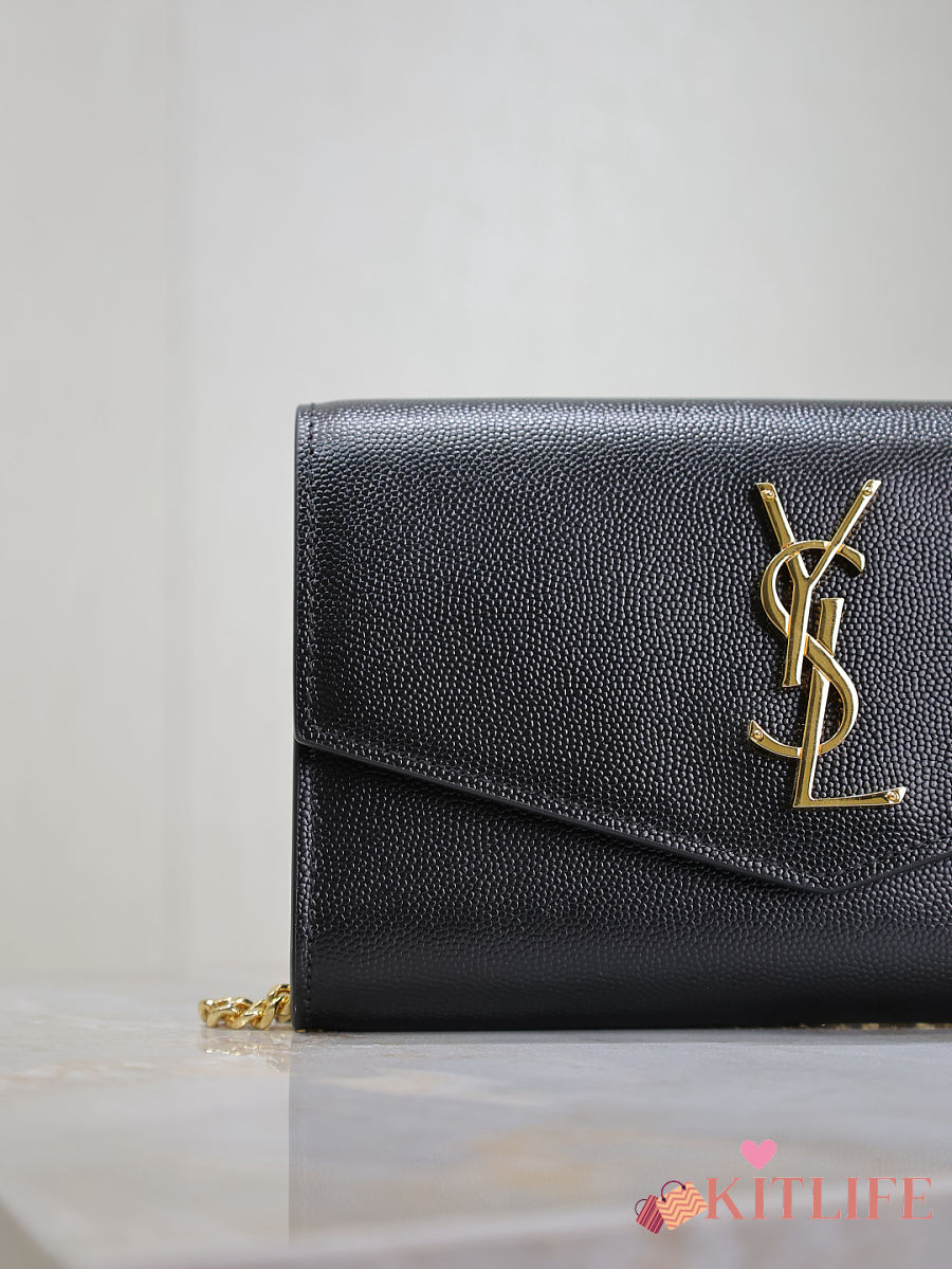 Kitlife Saint Laurent Uptown Chain Wallet in Black Grained Leather Gold Buckle 607788 19x12x4cm