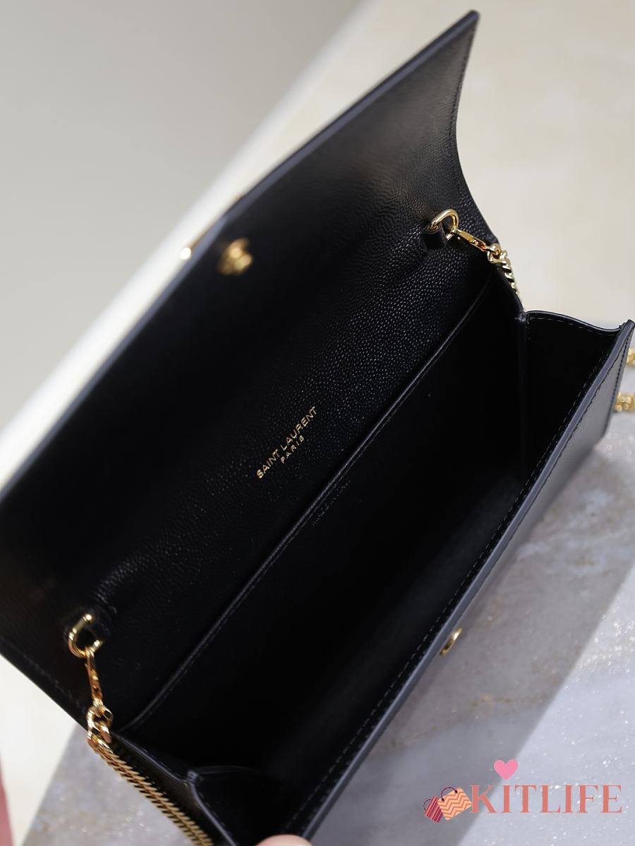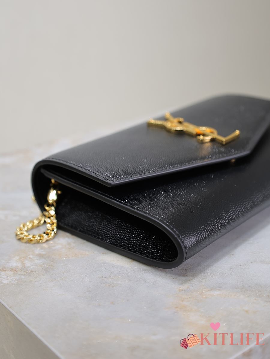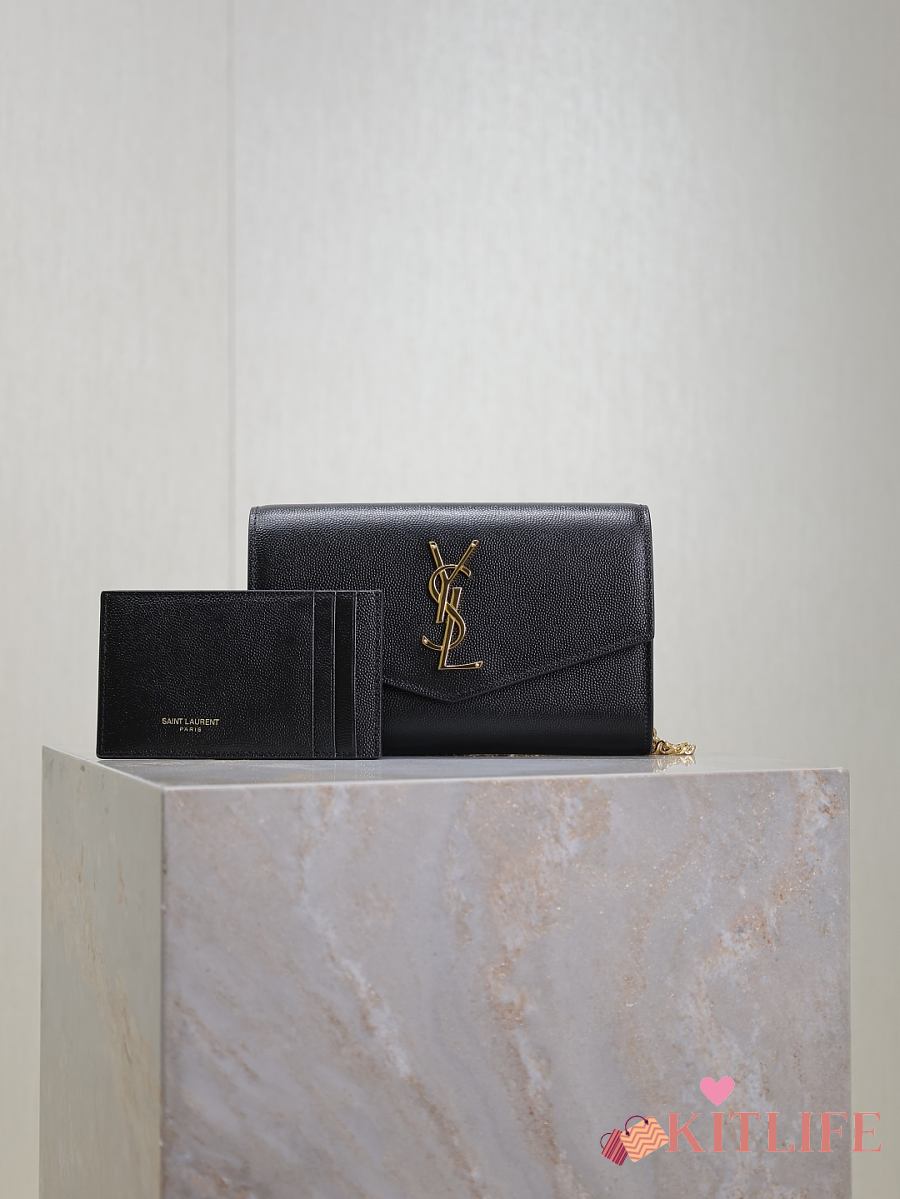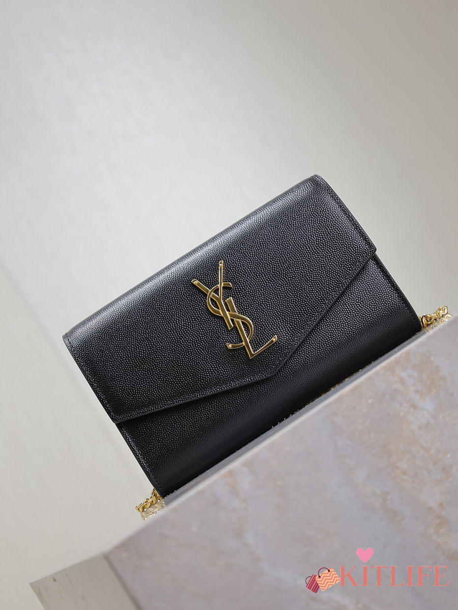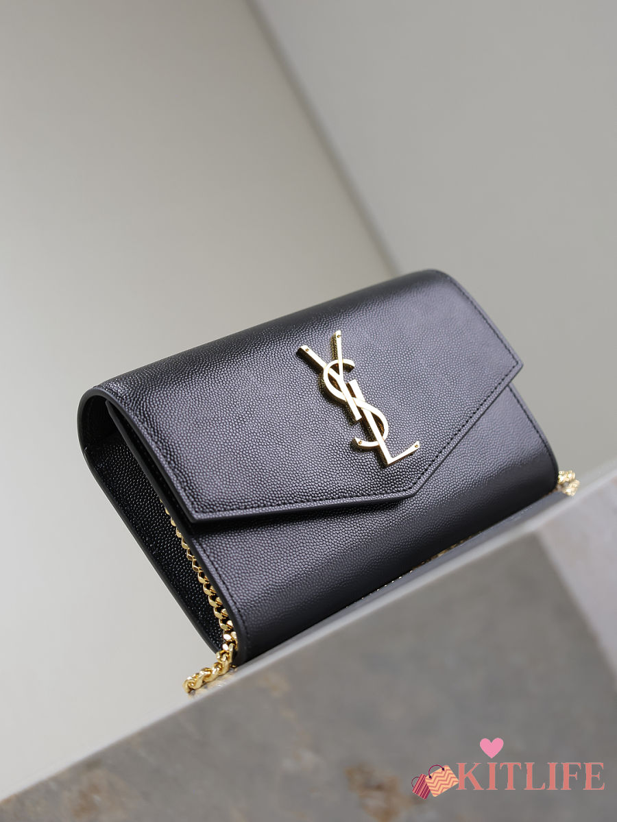 Kitlife Saint Laurent Uptown Chain Wallet in Black Grained Leather Gold Buckle 607788 19x12x4cm