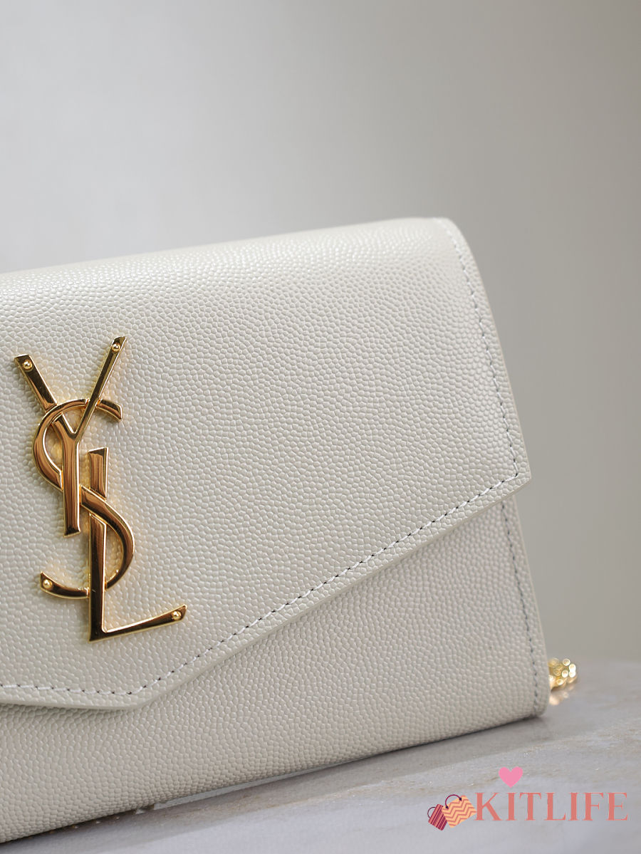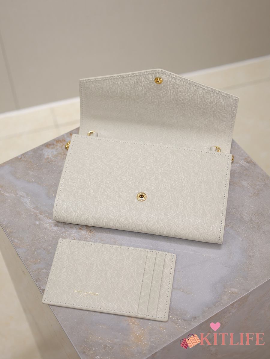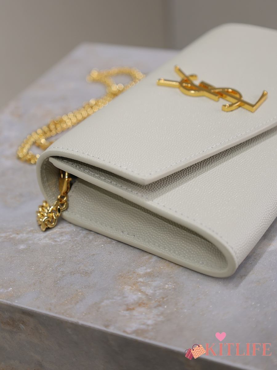 Kitlife Saint Laurent Uptown Chain Wallet in White Grained Leather 607788 19x12x4cm